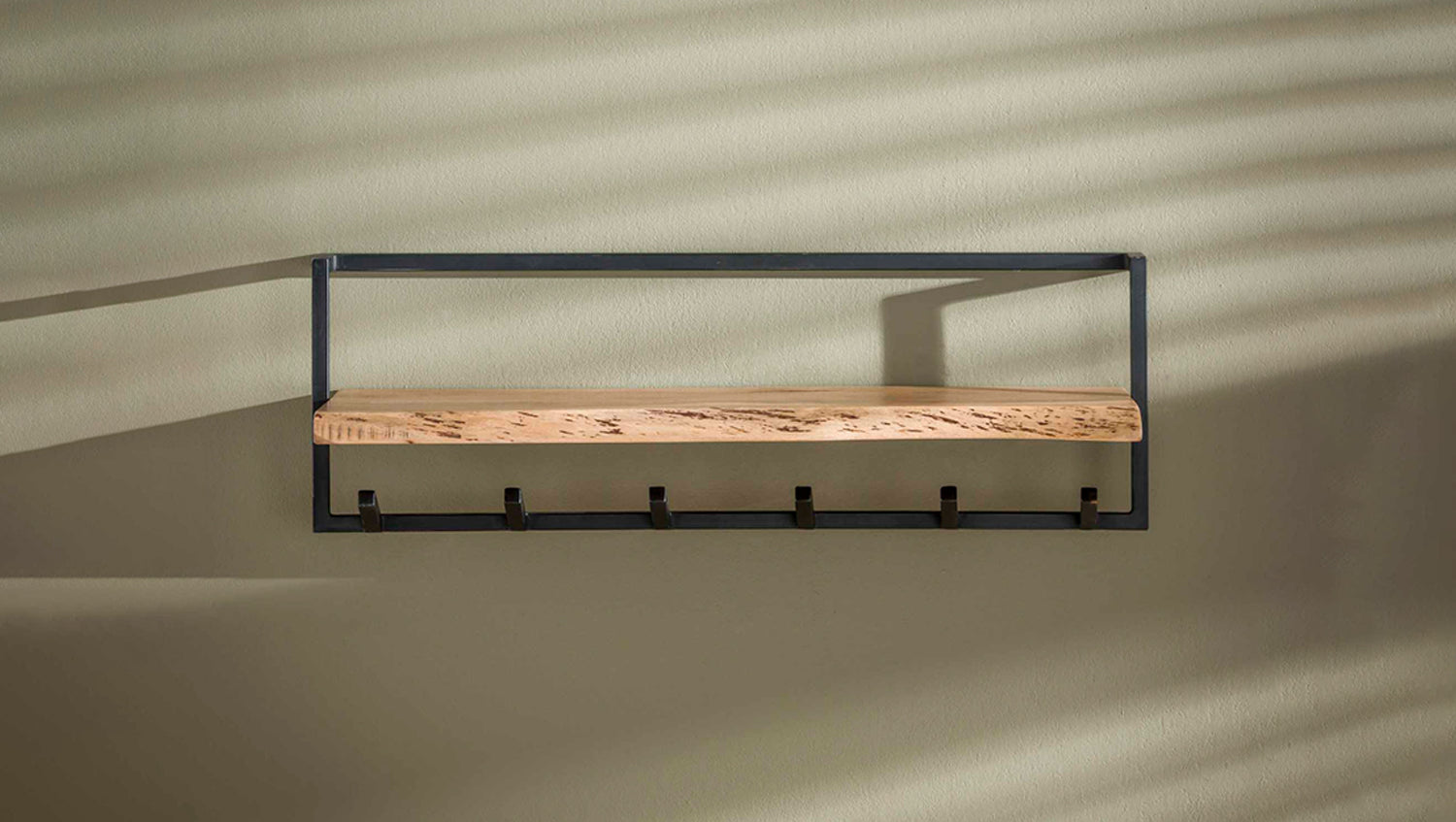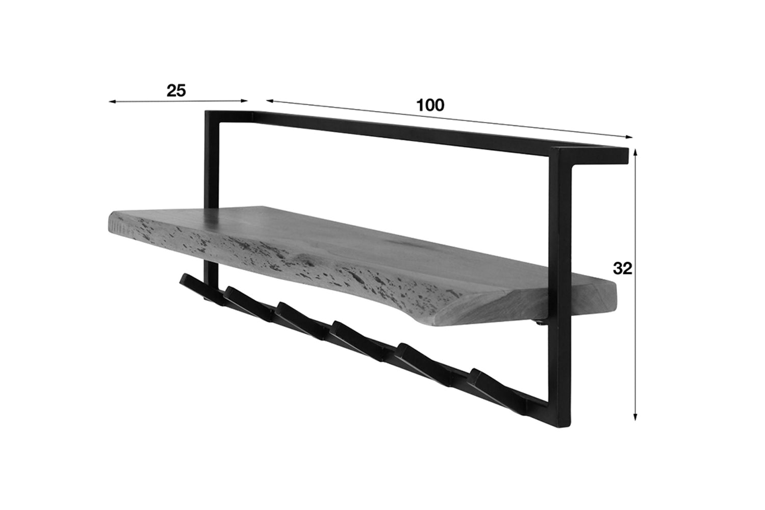 Die Wandgarderobe NEREA von KAWOLA kombiniert hochwertige Materialien mit durchdachter Funktionalität. Die Hutablage aus massivem Akazienholz beeindruckt mit feiner Maserung und natürlichen Ästen, die ihr einen einzigartigen Charakter verleihen. Nach traditionellen Methoden verarbeitet, sorgt sie für eine stilvolle Optik an der Wand. An der Hutablage sind 6 schwarz geschliffene Metallhaken befestigt. Dank der zwei Befestigungsösen lässt sich die 100 cm breite, 32 cm hohe und 25 cm tiefe Garderobe einfach montieren. NEREA eignet sich perfekt für Flur, Diele sowie Eingangsbereich!