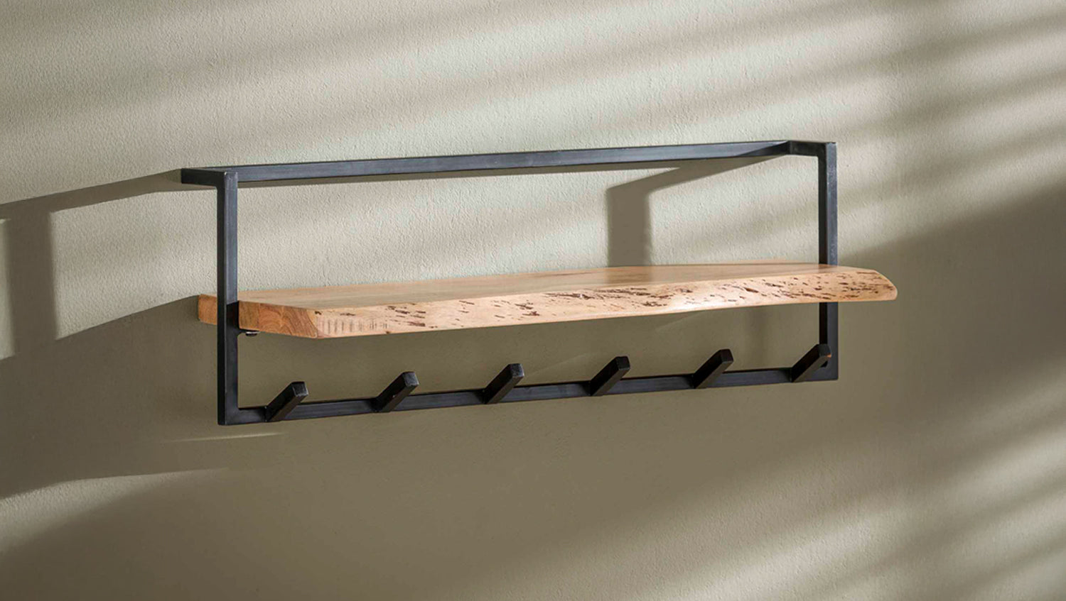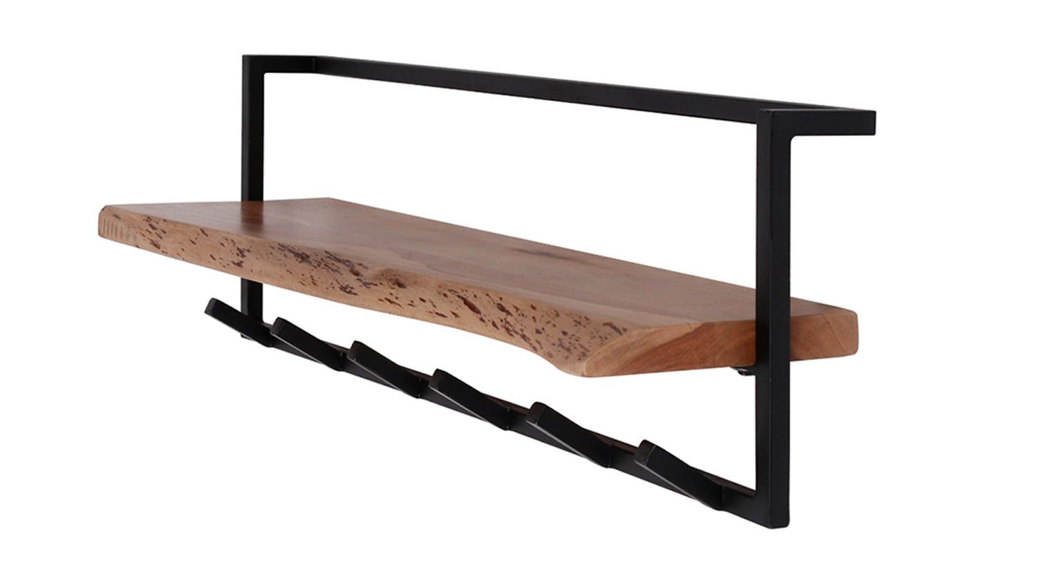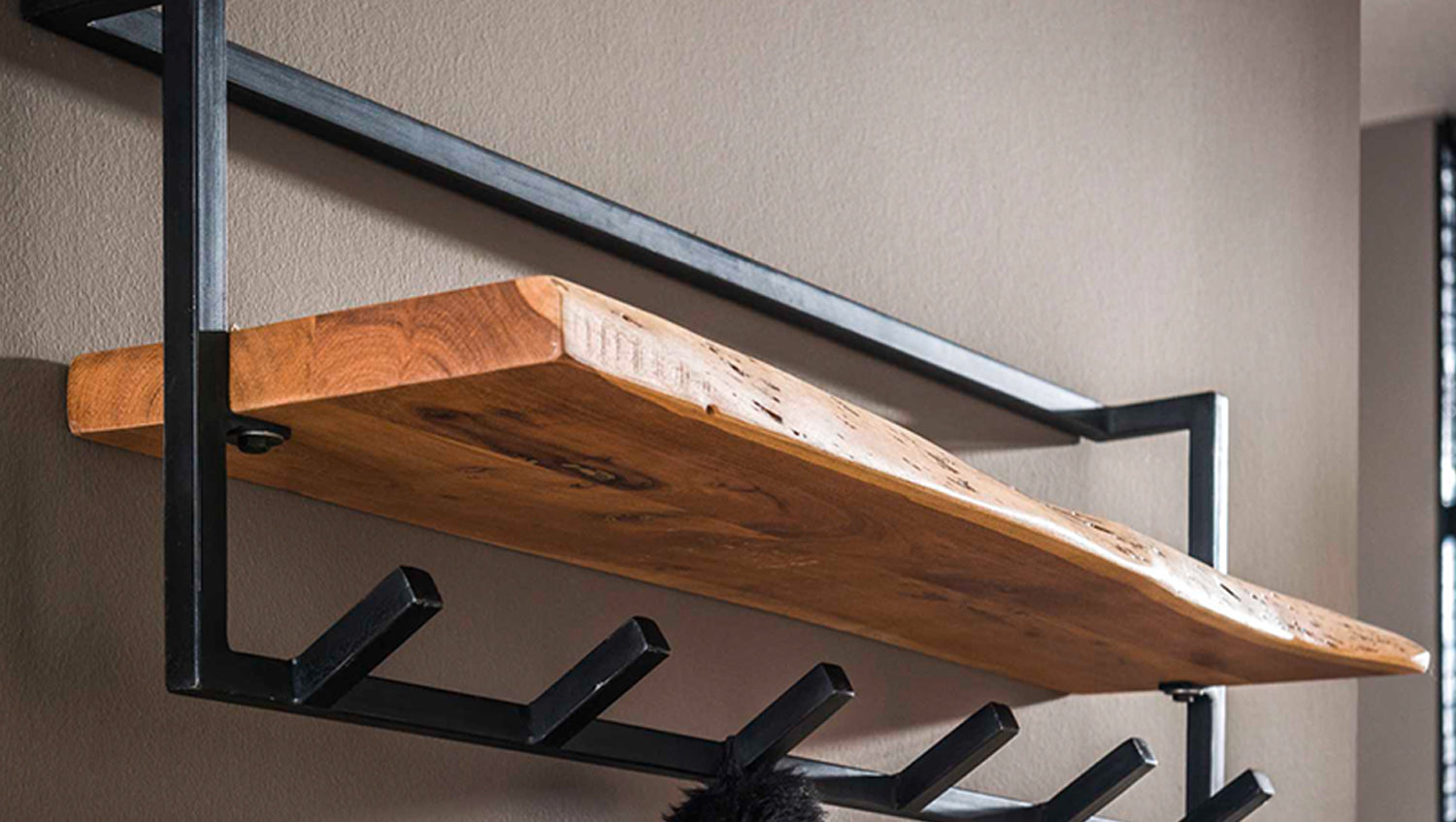 KAWOLA Garderobe NEREA Akazie Metall Hutablage mit Baumkante 6 Haken schwarz