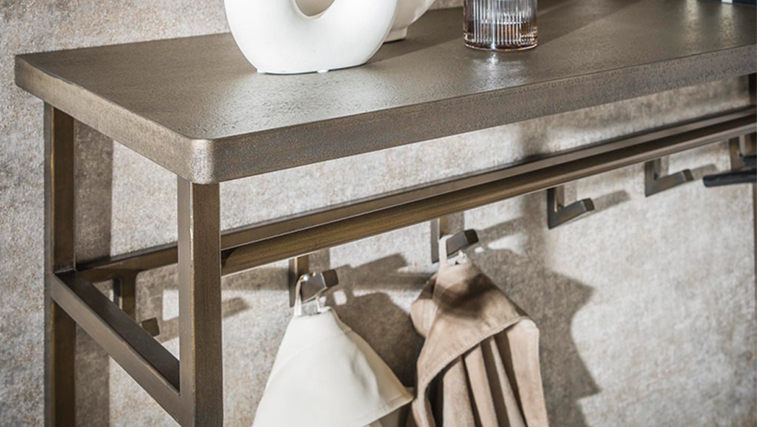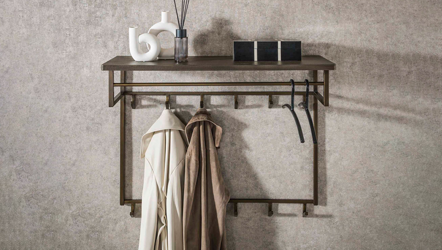 Die Wandgarderobe AUREA von KAWOLA beeindruckt mit ihrem handwerklichen Ferro-Finish, das eine markante 3D-Textur erzeugt und jedem Raum eine edle Note verleiht. Ausgestattet mit einer praktischen Hutablage, wird das außergewöhnliche Design zusätzlich durch 12 Haken und eine Stange im antiken Messing-Finish ergänzt, die Funktionalität mit zeitloser Eleganz verbinden. Perfekt für Jacken, Taschen und Accessoires - AUREA ist nicht nur praktisch, sondern auch ein echter Blickfang. Mit einer Breite von 100 cm, einer Höhe von 80 cm und einer Tiefe von 33 cm passt sie ideal in Flur, Diele oder Schlafzimmer. Verleihen Sie Ihrem Zuhause eine stilvolle und moderne Note!