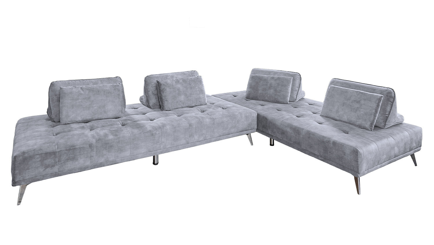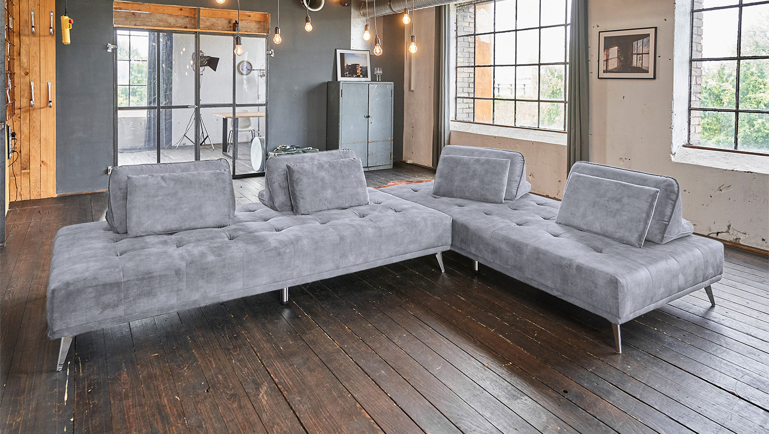 Elegante Absteppungen in der Sitzfläche, angenehmer Stoffbezug und filigrane Füße aus Metall - das alles zeichnet das Sofa WIOLO von KAWOLA aus. Doch das Möbelstück ist nicht nur optisch reizvoll! Denn das Ecksofa WIOLO bietet verschiedene Nutzungsoptionen: Zum einen kann es als elegantes Ecksofa genutzt werden. Der Clou hierbei ist: Die Rückenkissen können nach Wunsch individuell verteilt und verschoben werden. So können Sie die für Sie komfortabelste Sitz- beziehungsweise Liegeposition einnehmen. Zum anderen kann das Sofa durch das Entfernen der Rückenpolster und das Zusammenschieben der Module auch als großes (L/B: 240x220cm) Schlafsofa oder, getrennt, als zwei kleinere (L/B: 240x110cm) Liegeflächen genutzt werden.