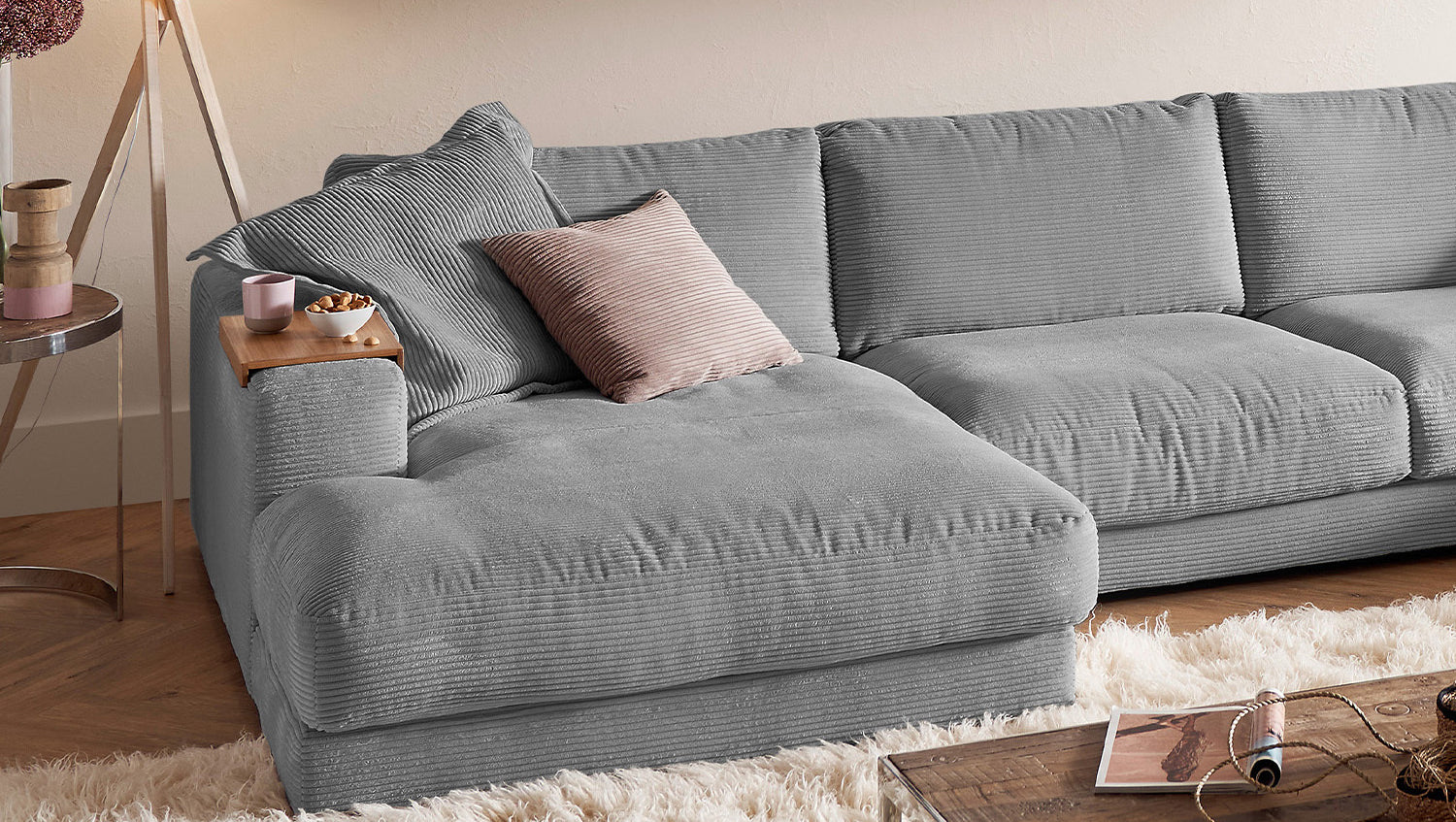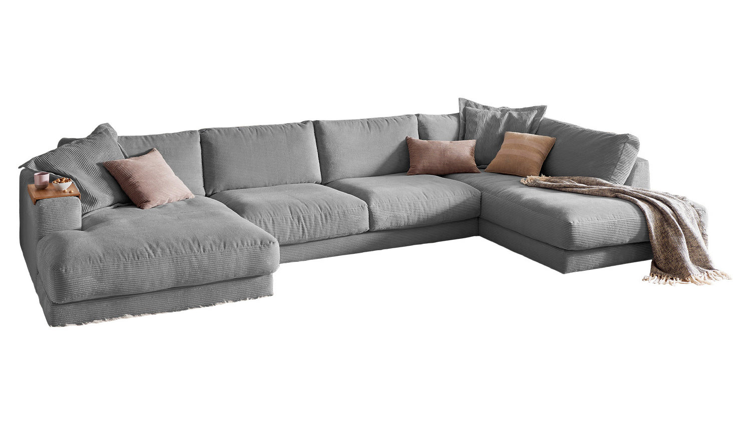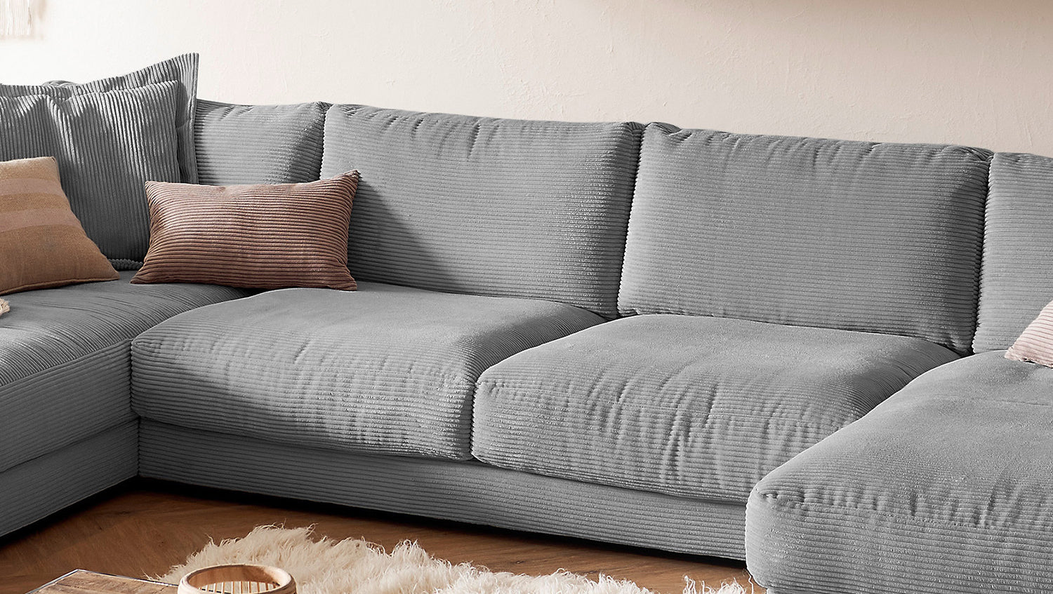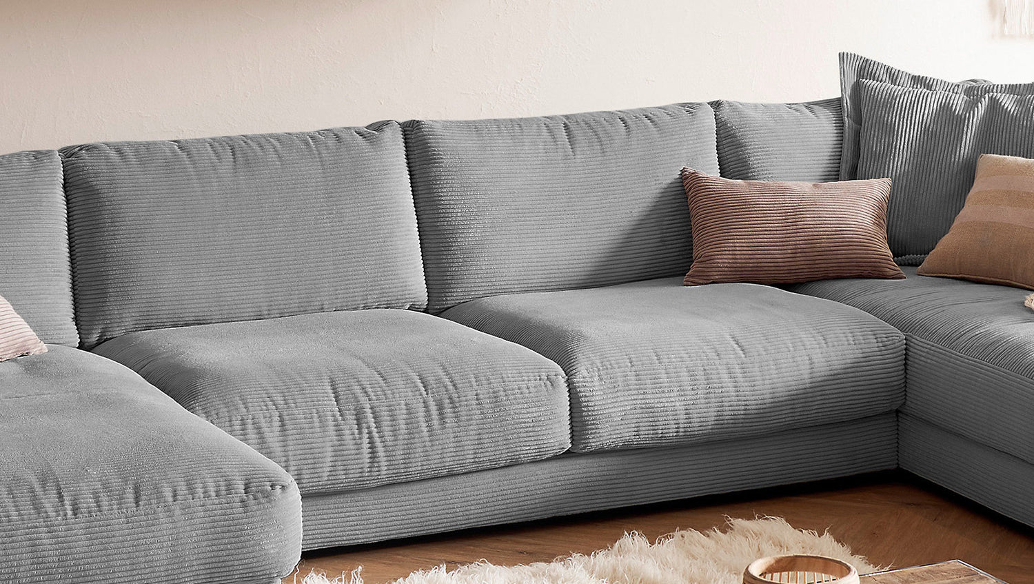 KAWOLA Sofa MADELINE Wohnlandschaft U-Form Cord grau