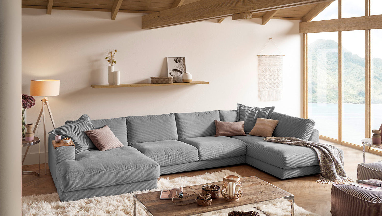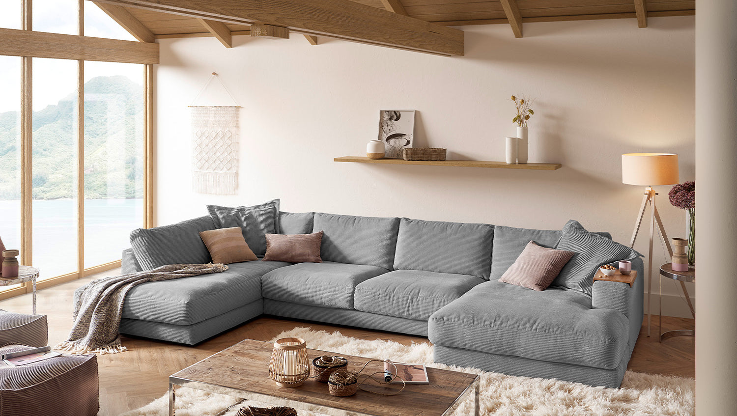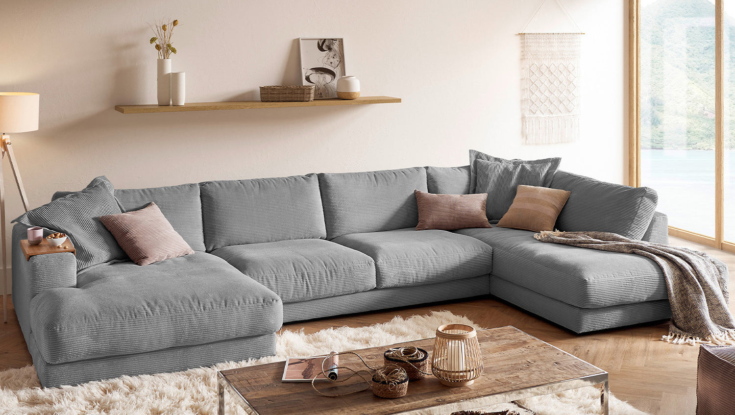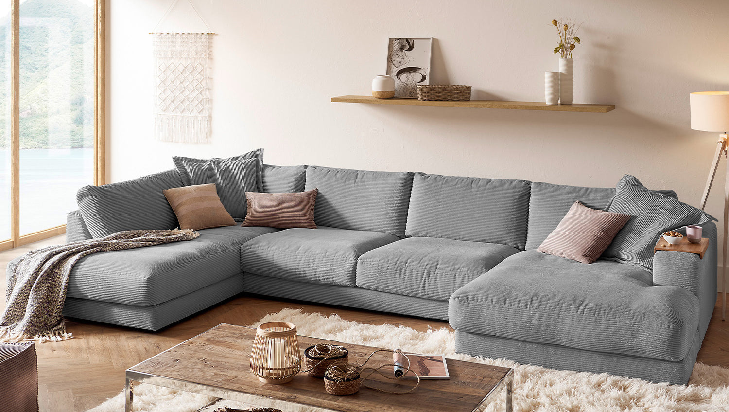 Die KAWOLA Wohnlandschaft MADELINE in U-Form besticht durch ihren hervorragenden Sitzkomfort, der durch die äußerst legere Polsterung zustande kommt und zum Verweilen und Entspannen einlädt. Seine moderne und urbane Form verleihen dem Sofa sein unverwechselbares Aussehen und bieten ausreichend Platz, um gemütliche Abende zu verbringen. Mit seinem zeitlosen Design fügt es sich nahtlos in jede Umgebung ein und macht auch frei im Raum stehend eine gute Figur. Wenn Sie Ihrem Wohnzimmer einen außergewöhnlichen Anstrich verleihen wollen, ist das Sofa MADELINE definitiv das Richtige für Sie!