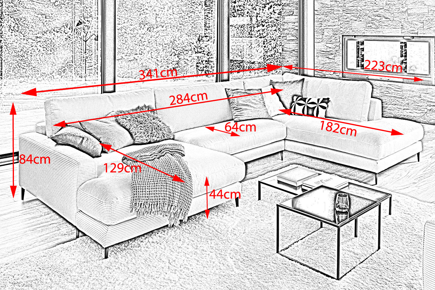 Die KAWOLA Wohnlandschaft CARA in U-Form verbindet klassisches Design mit moderner Sachlichkeit und fügt sich nahtlos in jedes Interieur ein. Seine weichen Formen und der Bezug aus angesagtem Cord-Stoff verleihen dem Sofa eine zeitlose Eleganz. Die komplexe, 3-stufige Polsterung garantiert höchsten Sitzkomfort und passt sich durch ihren legeren Aufbau der Körperform an. Darüber hinaus ist das Sofa mit hochwertigen Kammerkissen ausgestattet. Um ein Stauchen des Füllmaterials zu verhindern, sollten diese Rückenkissen nach Gebrauch aufgeschüttelt werden. Egal zu welcher Gelegenheit - auf dem Sofa CARA findet jeder ein Plätzchen zum Entspannen!