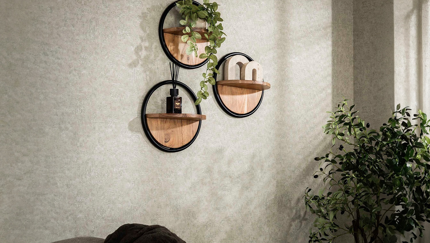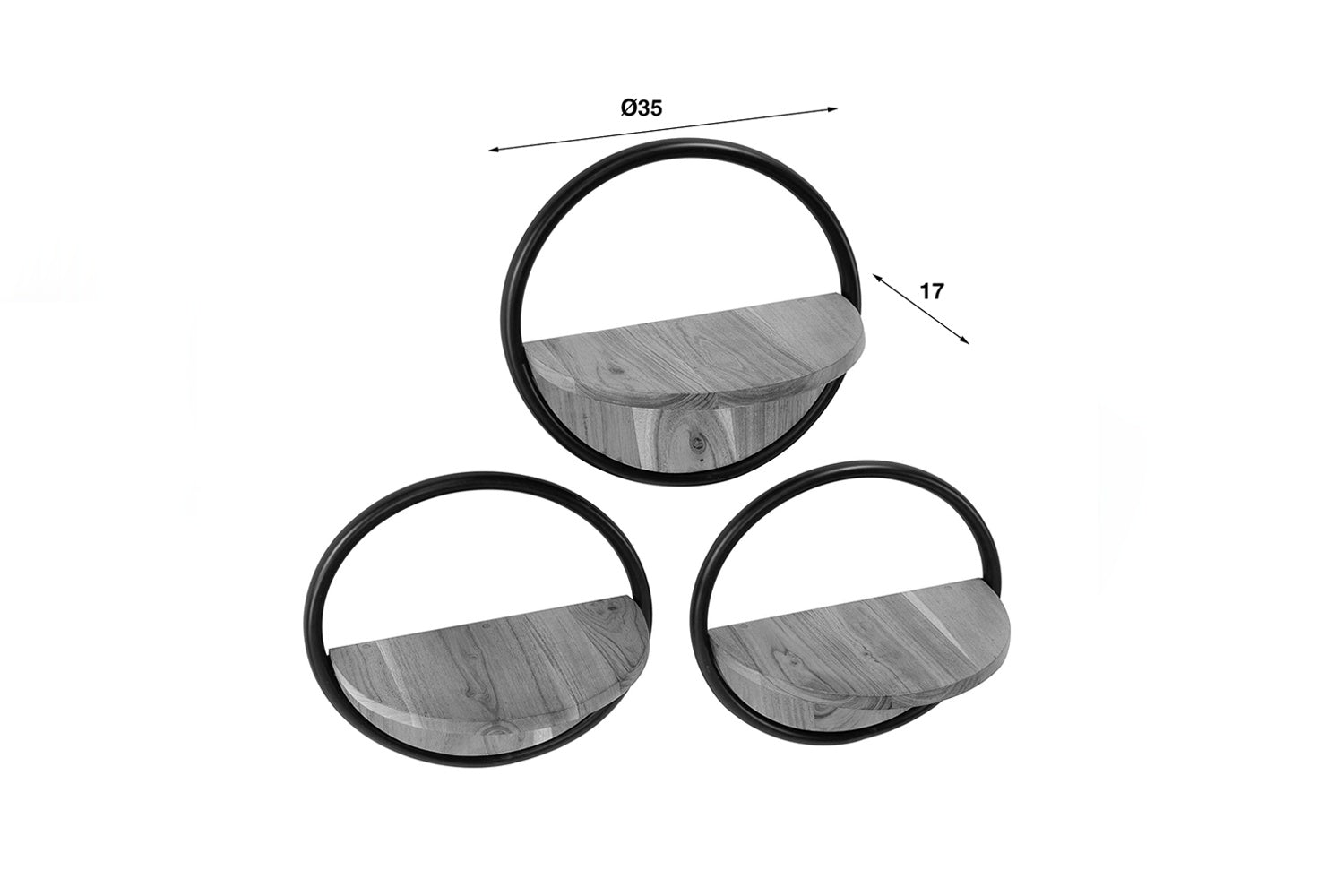 Das KAWOLA Wandregal RUWY ist ein charmantes Set aus drei runden Wandregalen, das jedem Raum eine stilvolle und natürliche Note verleiht. Jedes Regal besteht aus matt transparent lackiertem Akazienholz und ist mit einem stabilen Metallrahmen kombiniert. Die Wandregale werden einfach mit Ösenhaken an der Wand befestigt, was eine flexible und kreative Anordnung ermöglicht.