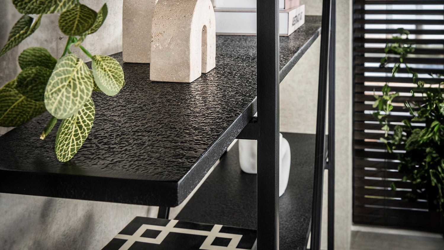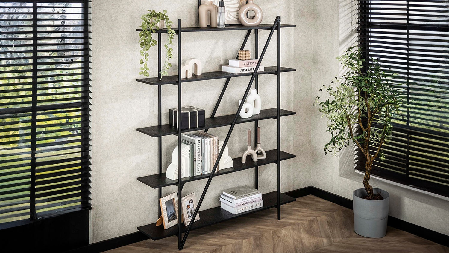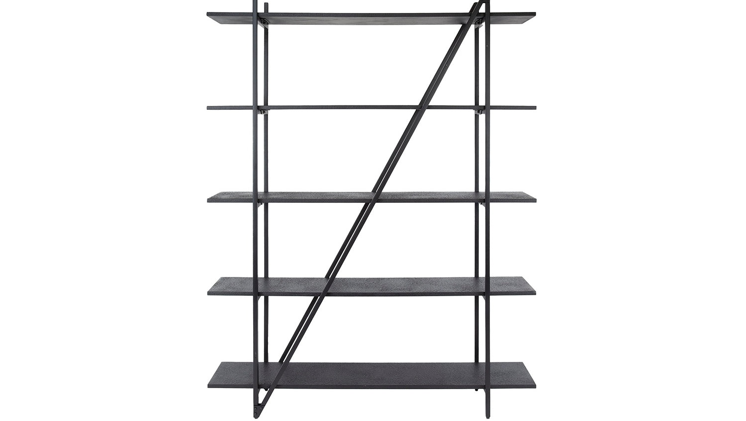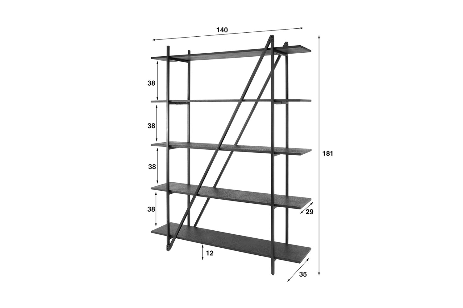 Das KAWOLA Wandregal PEARA 140 cm ist ein 5-stufiges Regal aus MDF-Holz mit dunkelgrauer Flüssigmetallbeschichtung und einem passenden dunkelgrauen Metallrahmen. Es verfügt über fünf geräumige Fächer für Bücher, Dekorationen oder andere Gegenstände. Da das Möbelstück zerlegt geliefert wird, kann es in einem kompakten Paket versandt werden.