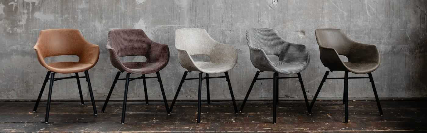 Der Stuhl ZAJA ist in verschiedenen hochwertigen Materialien erhältlich – von robustem Webstoff über angesagten Cord und weichem Velvet bis hin zu edlem Echtleder oder pflegeleichtem Kunstleder. Die große Farbauswahl bietet für jeden Einrichtungsstil das passende Design. Nutzen Sie unsere Farbübersicht oder Farbmuster-Vorschau, um Ihren Favoriten zu finden.