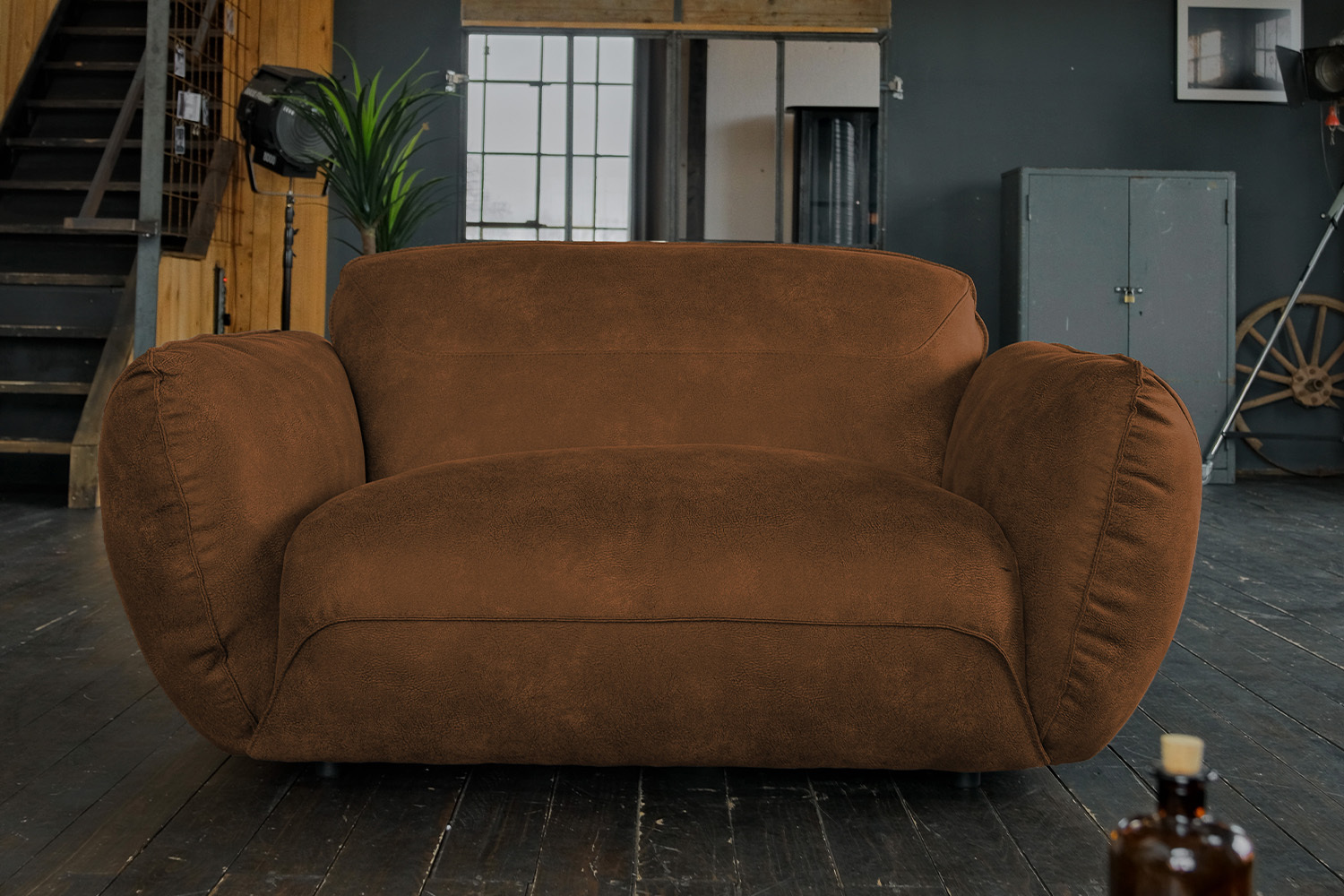 Produktinformationen "B-Ware KAWOLA Sessel DAVITO Loveseat 2-Sitzer Megasessel Lederimitat im Vintagelook mittelbraun"