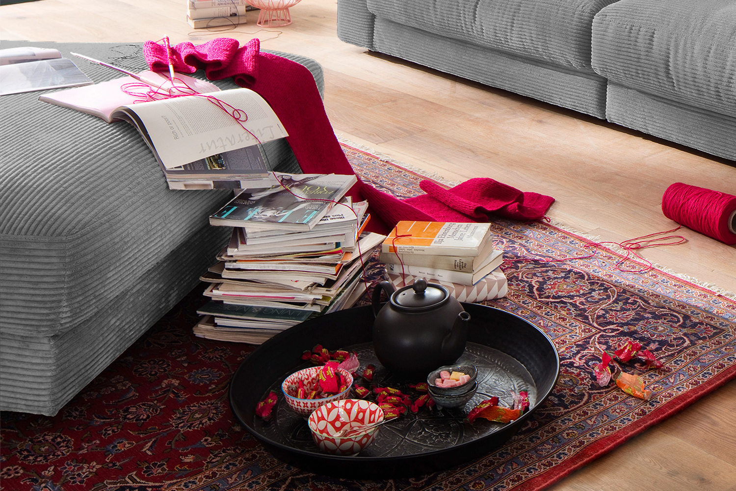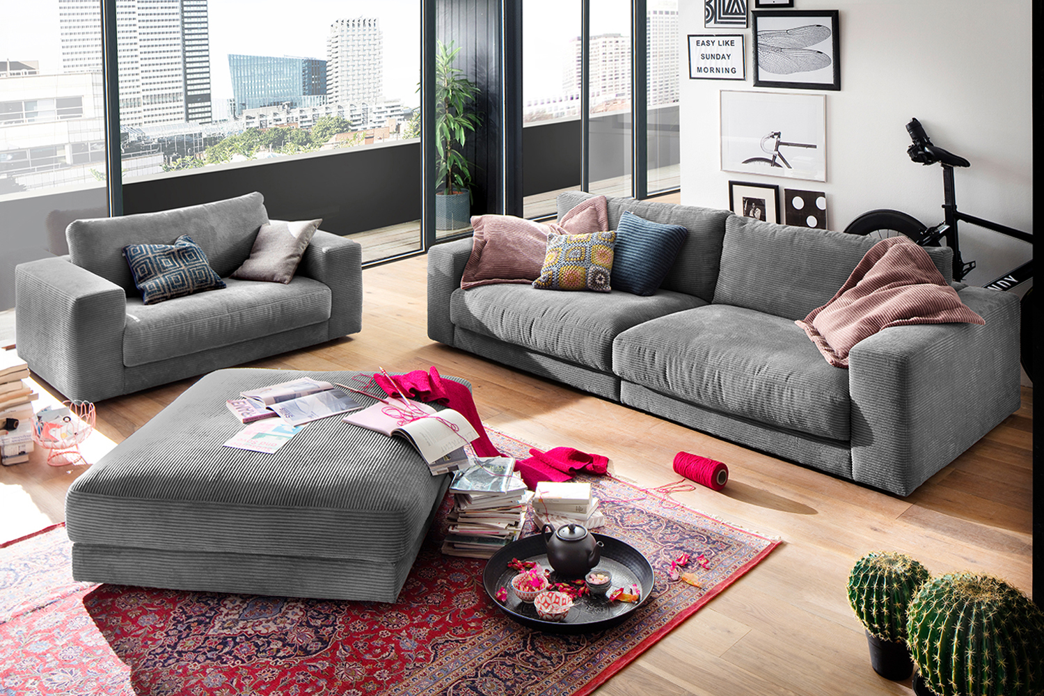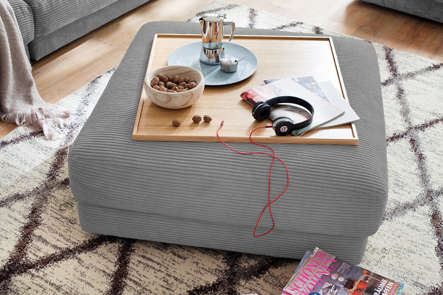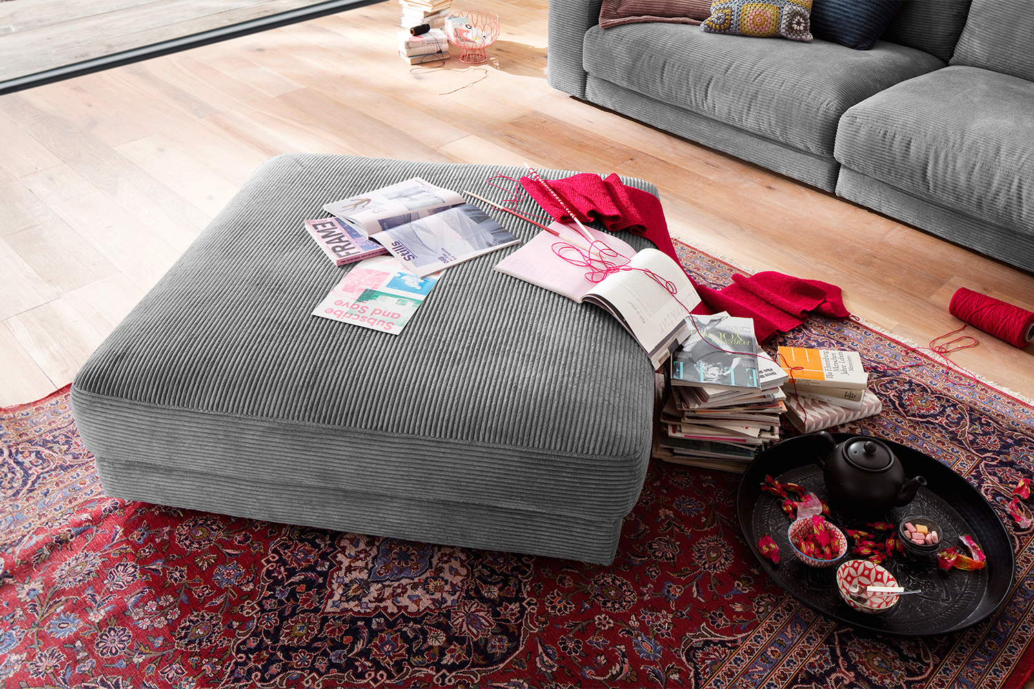 Produktinformationen "B-Ware KAWOLA MADELINE Big Hocker Cord grau"