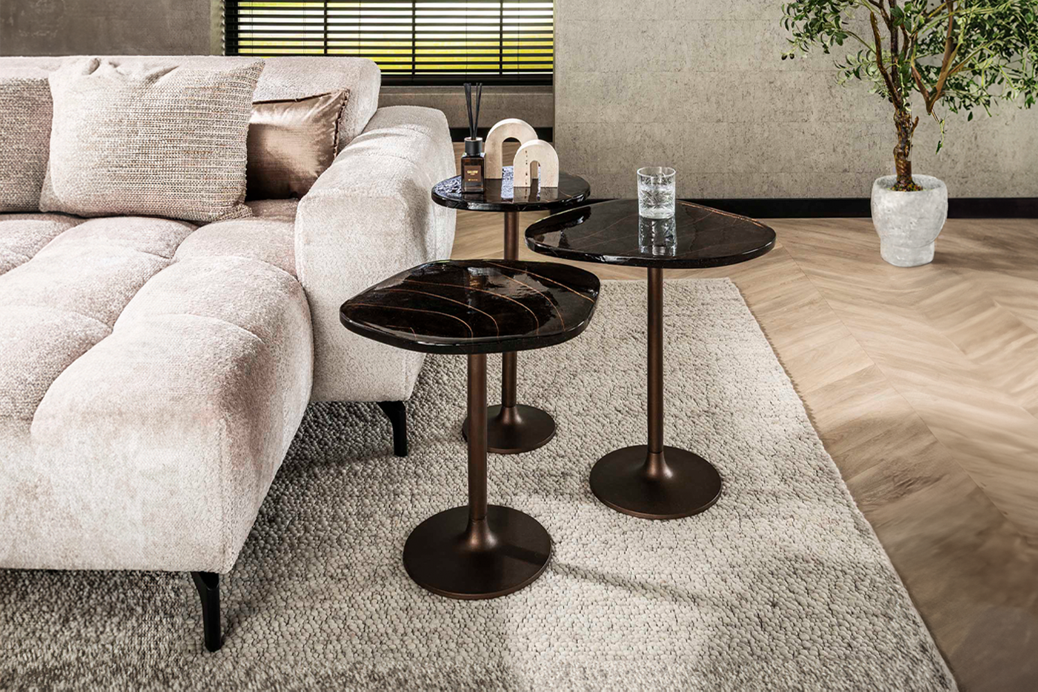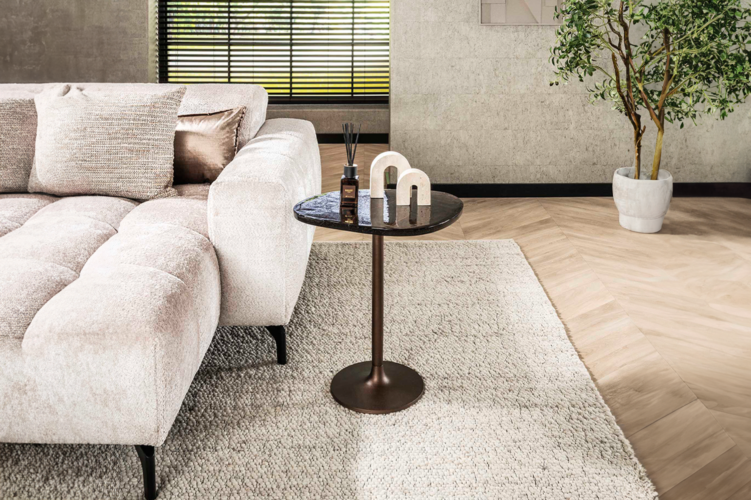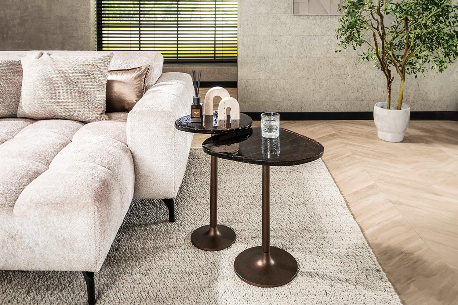 Der Beistelltisch DARI M von KAWOLA ist ein eleganter Blickfang, der jedem Raum einen Hauch von Raffinesse verleiht. Seine runde Glasplatte, aus gezogenem Glas gefertigt, begeistert mit einer dezent gewellten Oberfläche und feinen Unregelmäßigkeiten, die durch den traditionellen Herstellungsprozess entstehen. Dadurch erhält jedes Stück seinen eigenen Charakter und wirkt besonders hochwertig. Das Metallgestell in warm schimmerndem Antikkupfer verleiht dem Tisch eine edle Note und macht ihn zu einem echten Design-Highlight. DARI eignet sich hervorragend, um neben dem Sofa als praktische Ablage für Getränke oder Snacks zu dienen oder um dekorative Objekte stilvoll zu präsentieren. Durch seine schmale, unaufdringliche Form lässt er sich flexibel in verschiedene Raumkonzepte integrieren, ohne den Raum zu überladen. Ob als Akzenttisch im Wohnzimmer, in der Leseecke oder im Eingangsbereich – DARI bringt zeitlose Eleganz und einen Hauch von Luxus in Ihr Zuhause.