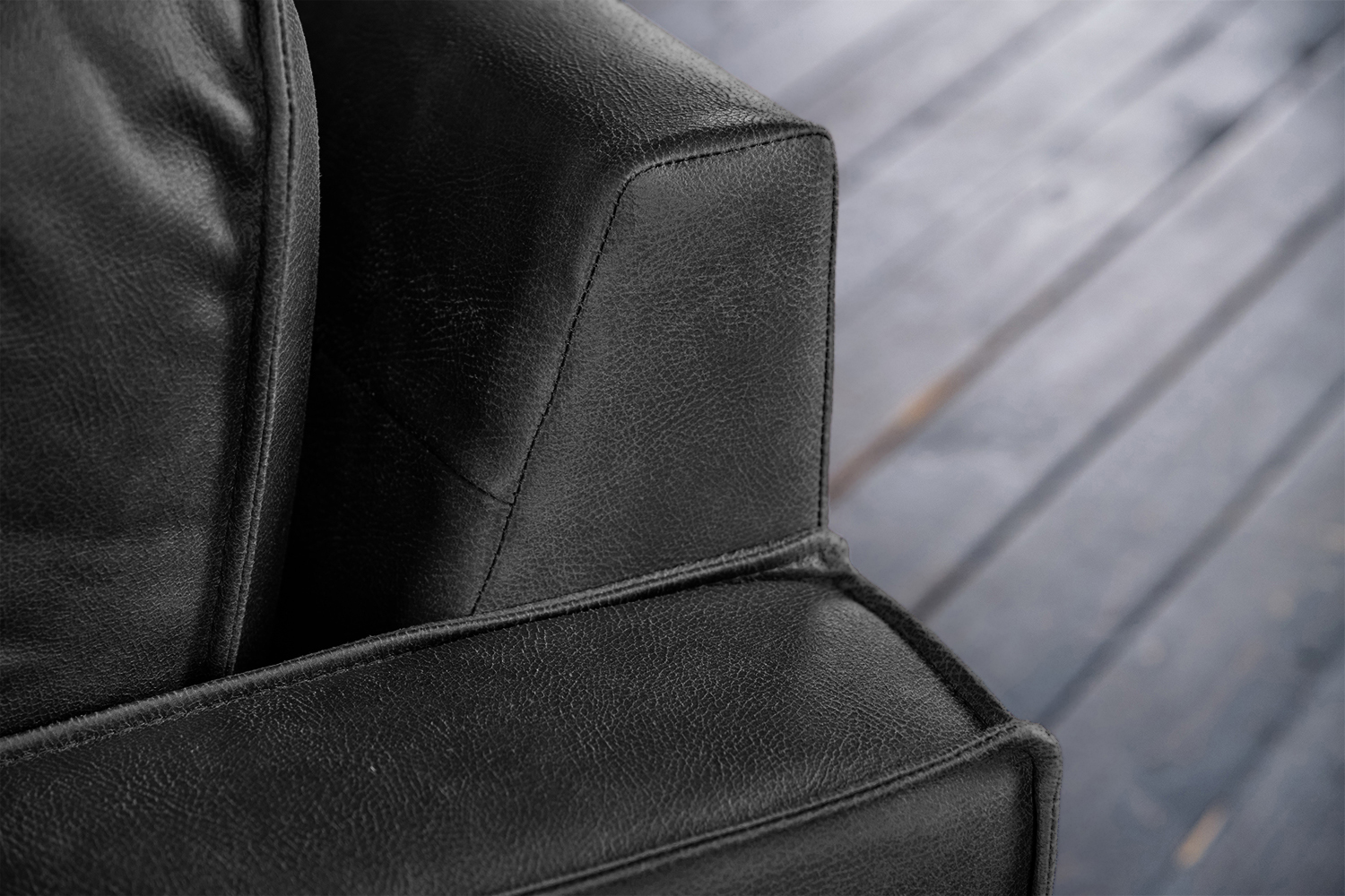 Das Sofa VILNIUS von KAWOLA bietet alle Stärken eines klassischen Ledersofas und noch einiges darüber hinaus. Der Bezug aus Lederfaserstoff ist eine innovative Alternative zu Echtleder: Er wird aus recycelten Lederfasern gefertigt, die mit natürlichen Bindemitteln und Textilfasern kombiniert werden. Das Ergebnis ist ein hochwertiges, strapazierfähiges Material mit authentischer Lederoptik und angenehm weicher Haptik. Lederfaserstoff ist pflegeleicht, formstabil und gleichzeitig atmungsaktiv.