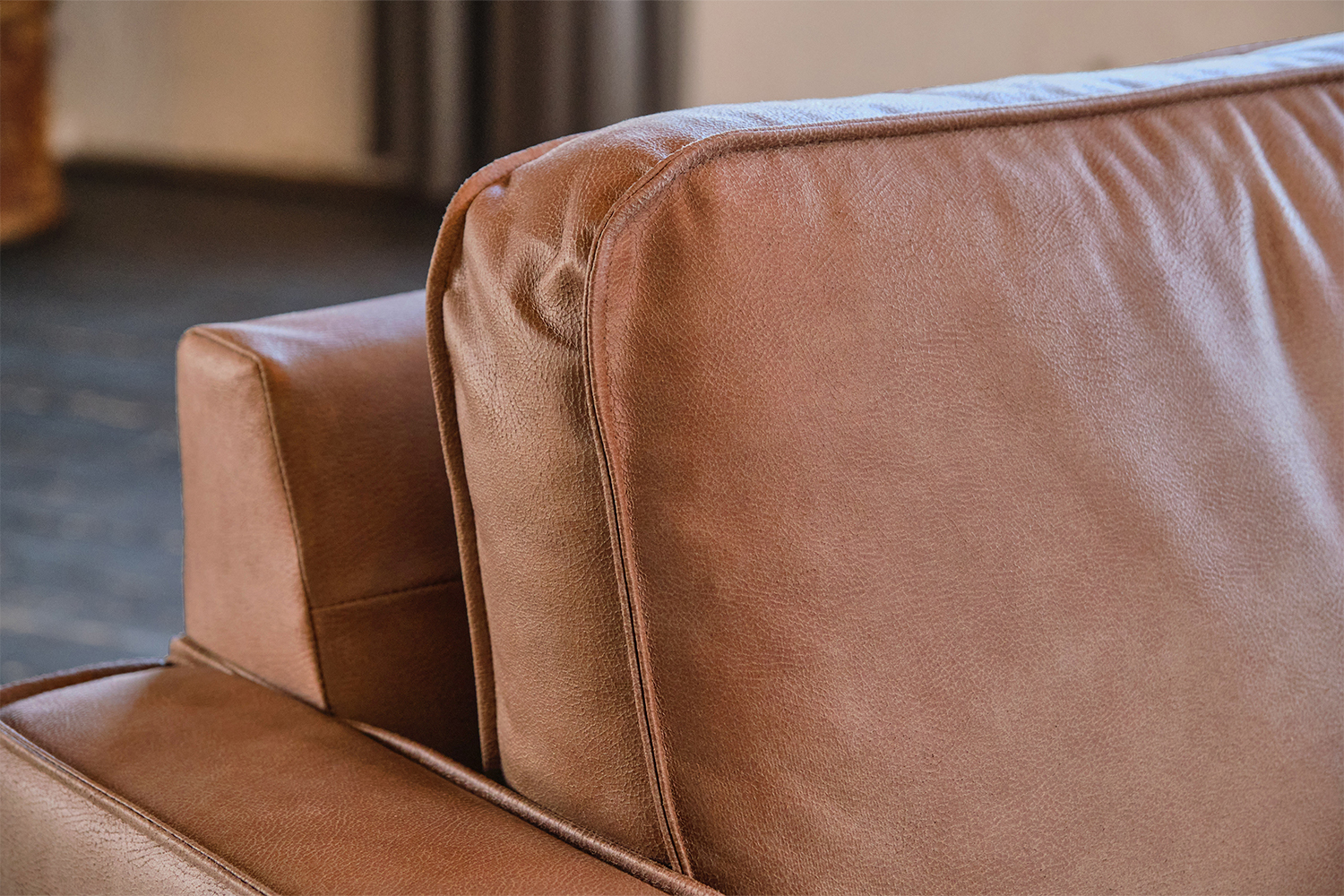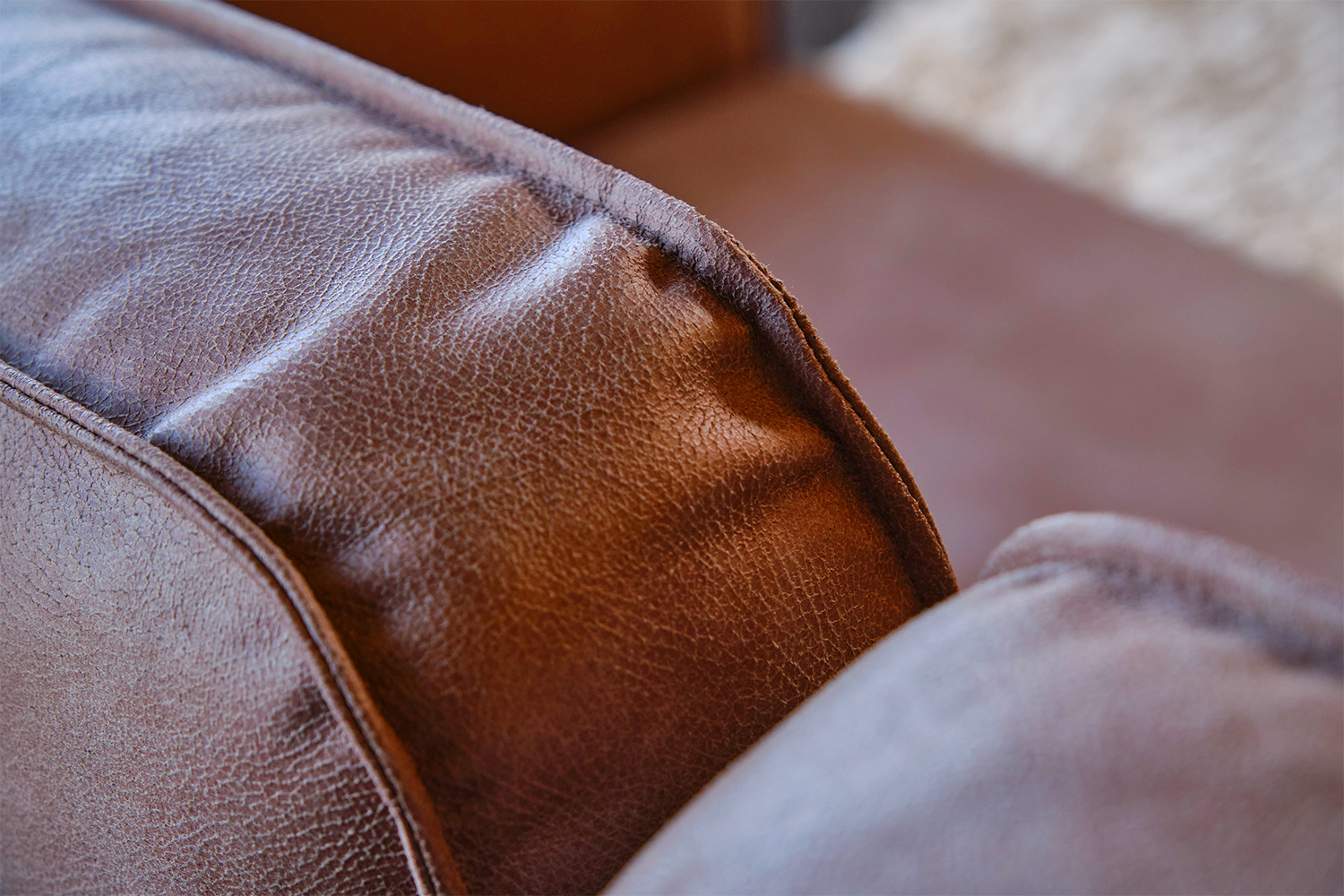 Das Sofa VILNIUS von KAWOLA bietet alle Stärken eines klassischen Ledersofas und noch einiges darüber hinaus. Der Bezug aus Lederfaserstoff ist eine innovative Alternative zu Echtleder: Er wird aus recycelten Lederfasern gefertigt, die mit natürlichen Bindemitteln und Textilfasern kombiniert werden. Das Ergebnis ist ein hochwertiges, strapazierfähiges Material mit authentischer Lederoptik und angenehm weicher Haptik. Lederfaserstoff ist pflegeleicht, formstabil und gleichzeitig atmungsaktiv.