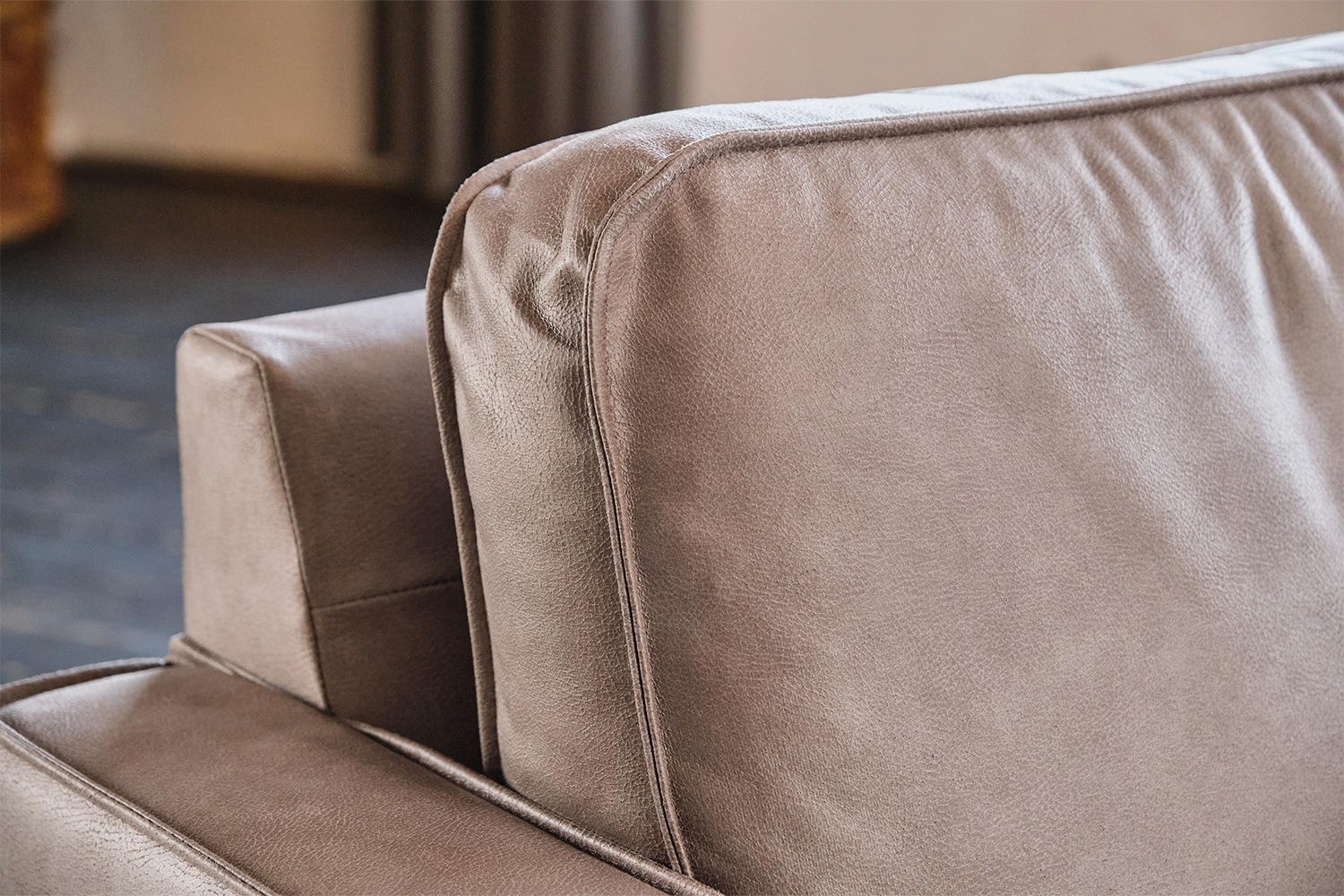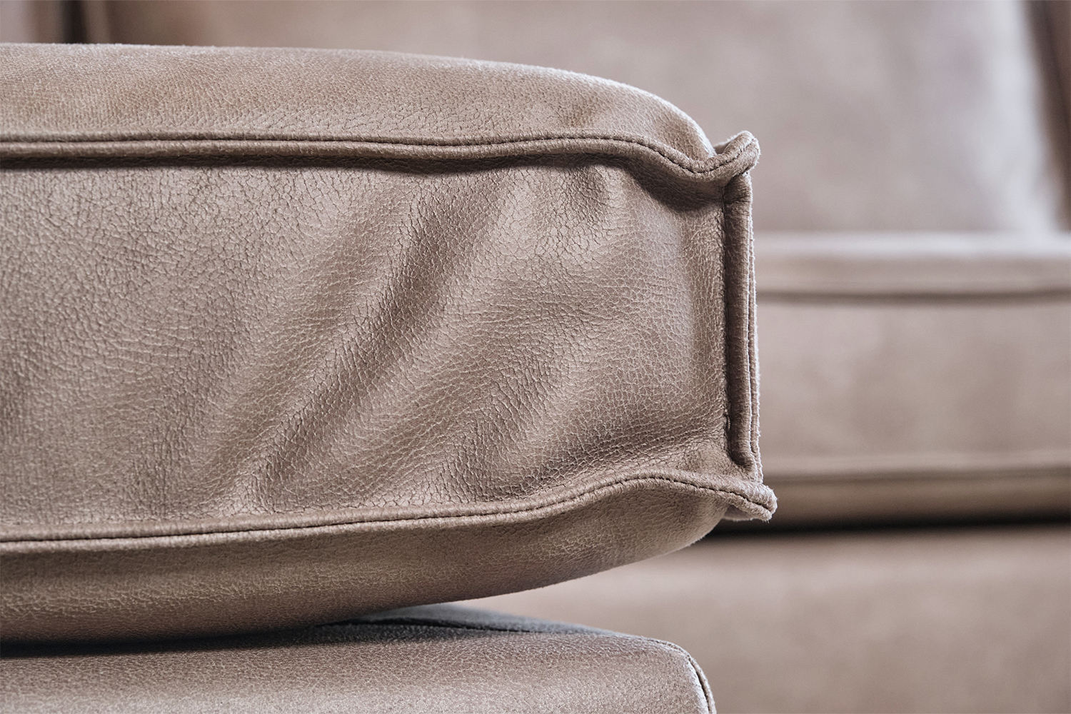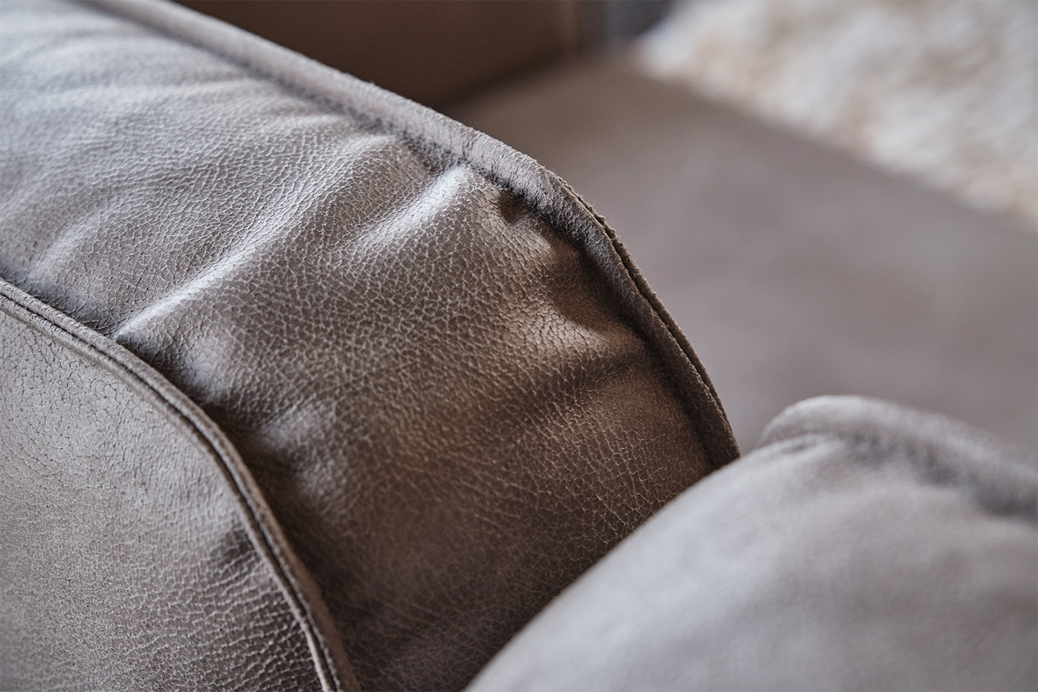 Das Sofa VILNIUS von KAWOLA bietet alle Stärken eines klassischen Ledersofas und noch einiges darüber hinaus. Der Bezug aus Lederfaserstoff ist eine innovative Alternative zu Echtleder: Er wird aus recycelten Lederfasern gefertigt, die mit natürlichen Bindemitteln und Textilfasern kombiniert werden. Das Ergebnis ist ein hochwertiges, strapazierfähiges Material mit authentischer Lederoptik und angenehm weicher Haptik. Lederfaserstoff ist pflegeleicht, formstabil und gleichzeitig atmungsaktiv.