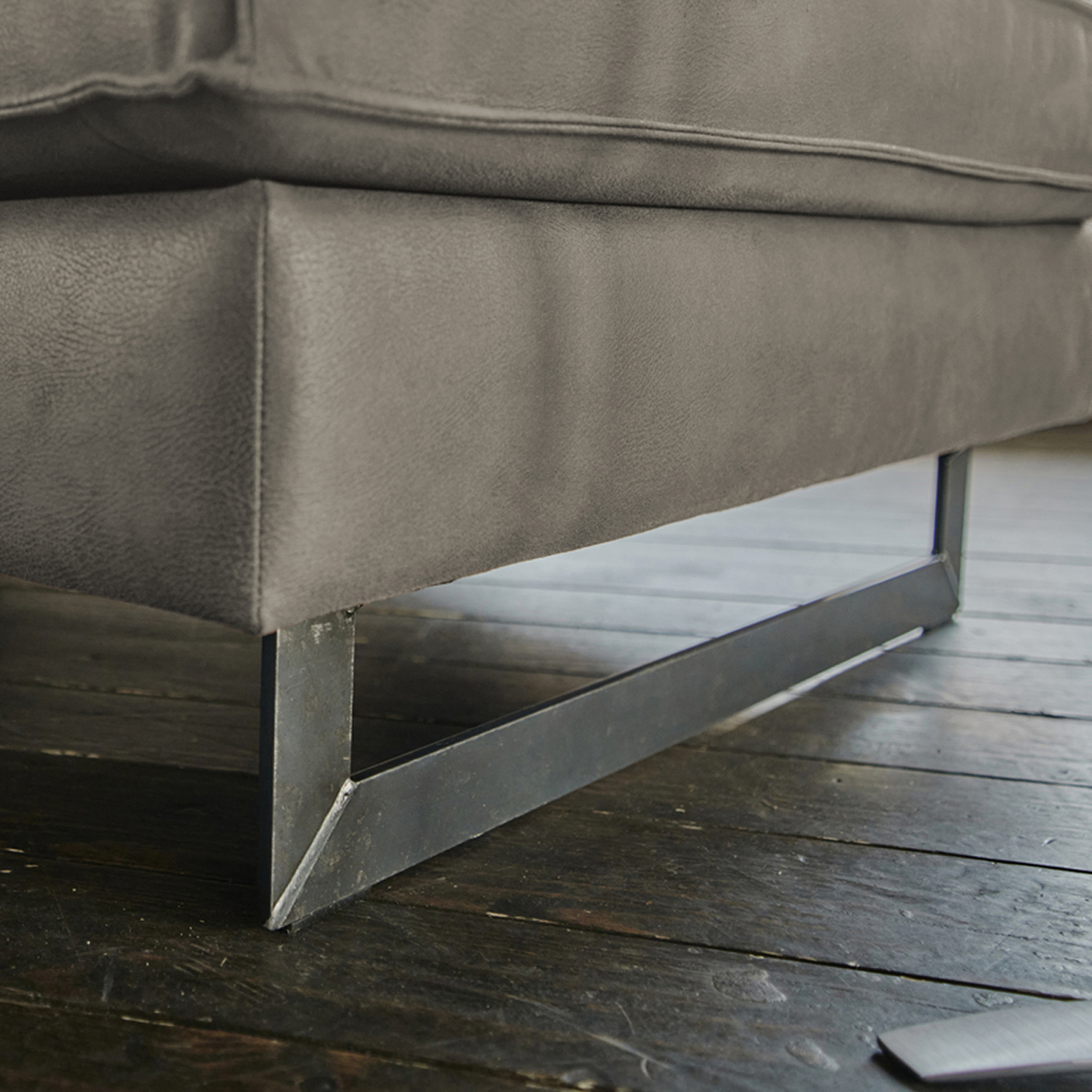 Extreme Robustheit ist durch das massive Holzgestell ebenso gegeben wie eine komfortable und legere Polsterung für ein weiches Sitzvergnügen. Trotz seiner großflächigen Maße lässt sich das Sofa in allen Räumlichkeiten flexibel positionieren und stellt damit jederzeit ein optisches Highlight dar.
