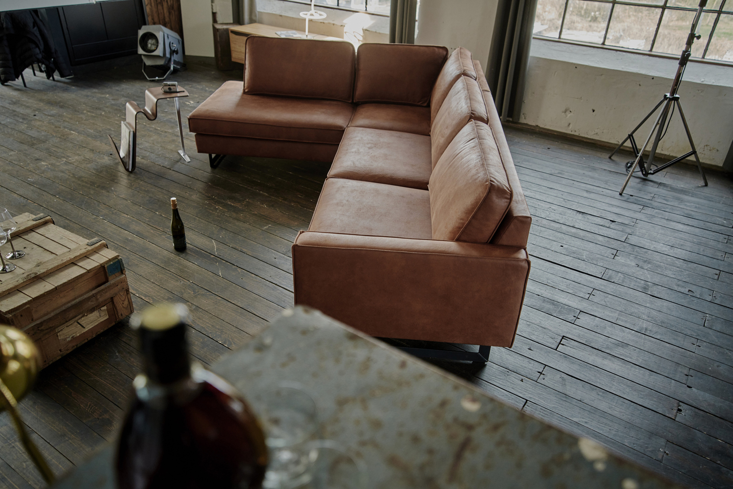 Extreme Robustheit ist durch das massive Holzgestell ebenso gegeben wie eine komfortable und legere Polsterung für ein weiches Sitzvergnügen. Trotz seiner großflächigen Maße lässt sich das Ecksofa in allen Räumlichkeiten flexibel positionieren und stellt damit jederzeit ein optisches Highlight dar.