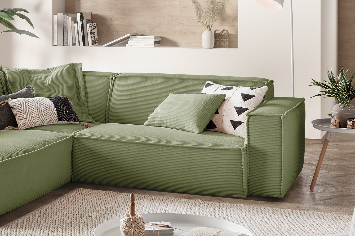 Das KAWOLA Ecksofa SAMU besticht durch seinen hervorragenden Sitzkomfort, der durch den äußerst weichen und legeren Polsteraufbau zustande kommt und zum Verweilen und Entspannen einlädt. Die Polsterung passt sich der Körperform an; Sitzabdrücke sowie Wellenbildung der Bezüge sind warentypisch. Seine moderne und urbane Form verleihen dem Sofa sein unverwechselbares Aussehen und bieten ausreichend Platz, um gemütliche Abende zu verbringen. Mit seinem zeitlosen Design fügt es sich nahtlos in jede Umgebung ein und macht auch frei im Raum stehend eine gute Figur. Wenn Sie Ihrem Wohnzimmer einen außergewöhnlichen Anstrich verleihen wollen, ist das Sofa SAMU definitiv das Richtige für Sie!Produktdetails