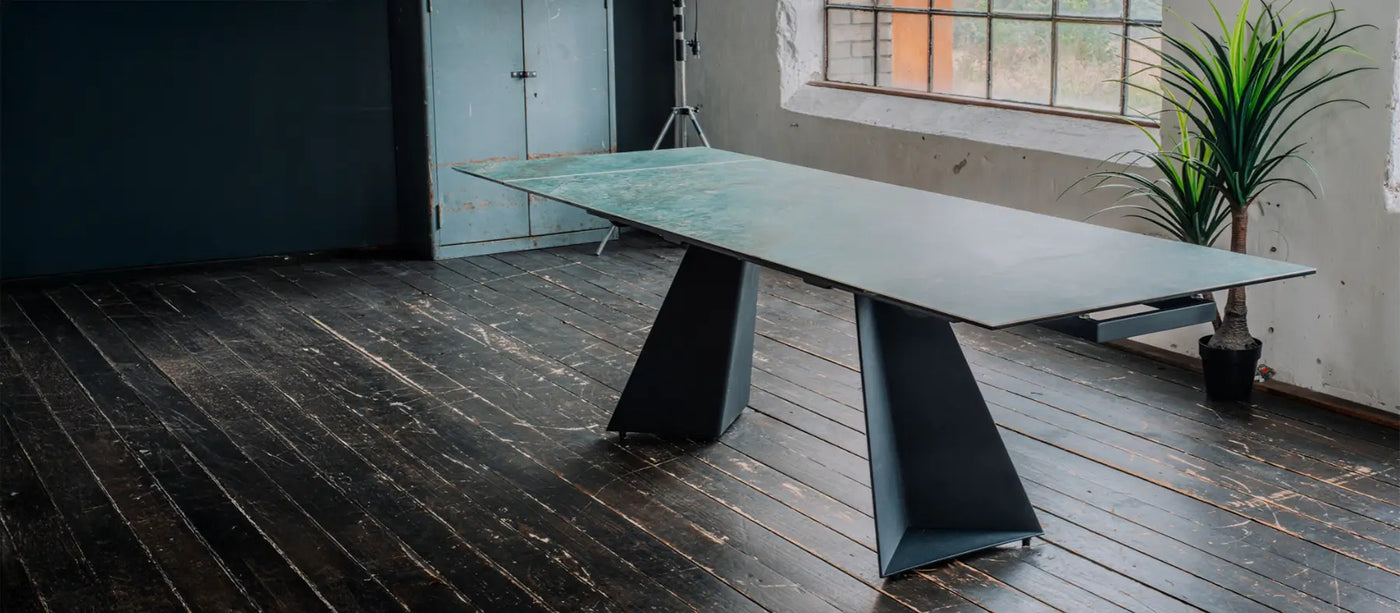 Por fin nos regalamos una fantástica mesa de comedor extensible de vitrocerámica verde LODI (100 x 200-280 cm) con seis sillas blancas a juego, y estamos encantados. La superficie de cerámica verdosa, en particular, contrasta con las sillas de color blanco crema y tiene un aspecto realmente elegante, algo que nos gusta especialmente. La entrega rápida y el excelente servicio también fueron un plus. ¡Sin duda, volveríamos a pedir!