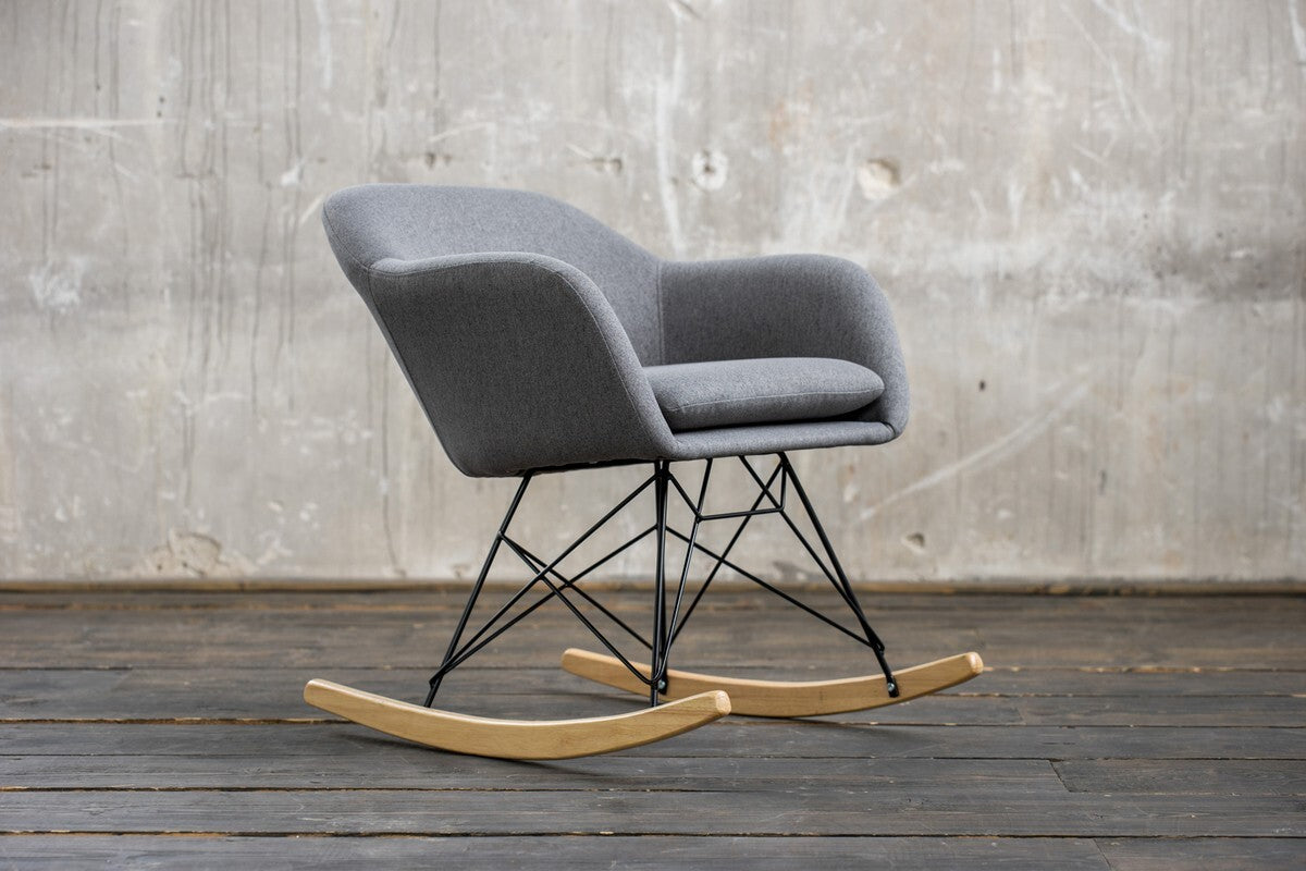Esta silla es 2a oportunidad de una devolución de un cliente, que tiene ciertos defectos de menor importancia y por lo tanto es ofrecido por nosotros a un precio reducido. Los posibles defectos son: Arañazos en el armazón, marcas de presión, ligera suciedad y desviaciones de color en la tapicería, así como desgarros en la tela de los bajos. Por favor, eche un vistazo a las fotos de defectos directamente después de la foto principal. Sólo sirven para ilustrar posibles defectos. Se trata de imágenes de ejemplo generales y no representan el artículo en cuestión. El artículo no tiene por qué presentar todos los defectos indicados. Las telas y colores de las fundas que aparecen en las fotos de defectos tampoco se refieren a este artículo. Durante mucho tiempo no se prestó atención a la mecedora. Sólo recientemente se ha retomado y reinterpretado este tema en el sector del mueble. Se han conservado las características de la mecedora tradicional y se le ha dado un nuevo aspecto exterior, como es el caso de esta fantástica mecedora Stella. La mecedora es acogedora, el balanceo es relajante y uno se siente transportado a los viejos tiempos. Sin embargo, el diseño de la mecedora Stella ha llegado a la era moderna y no deja nada que desear; el respaldo elevado ofrece mucho apoyo al sentarse cómodamente, los reposabrazos contribuyen a la comodidad del asiento y la forma de la mecedora es sencilla y clásica. El agradable tapizado de la mecedora está recubierto de poliéster resistente y duradero. El armazón de la mecedora es de metal, muy robusto y estable. Las correderas de roble complementan a la perfección el tejido gris y el metal oscuro. ¡Toda la familia se sentirá como en casa en esta mecedora!