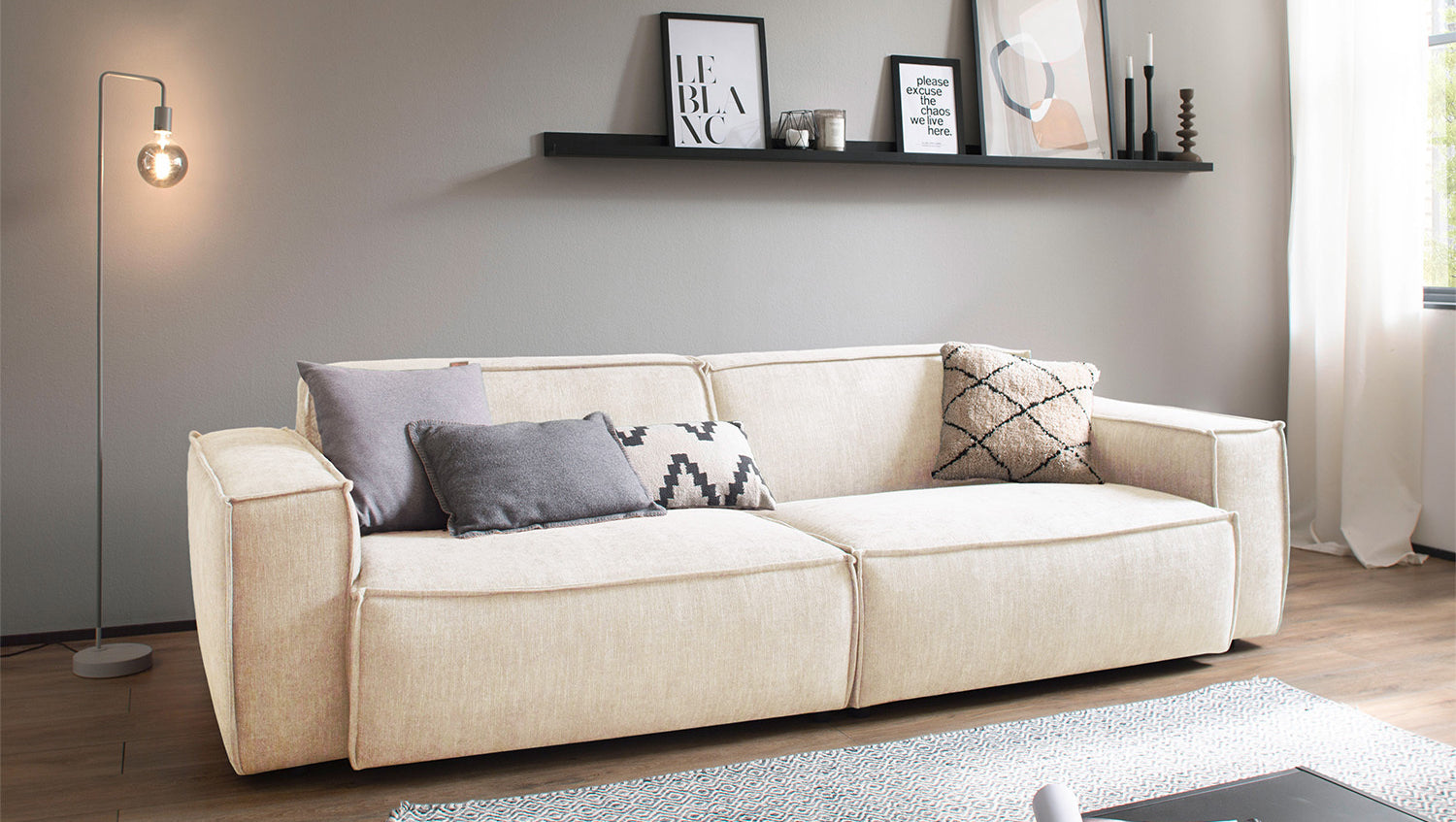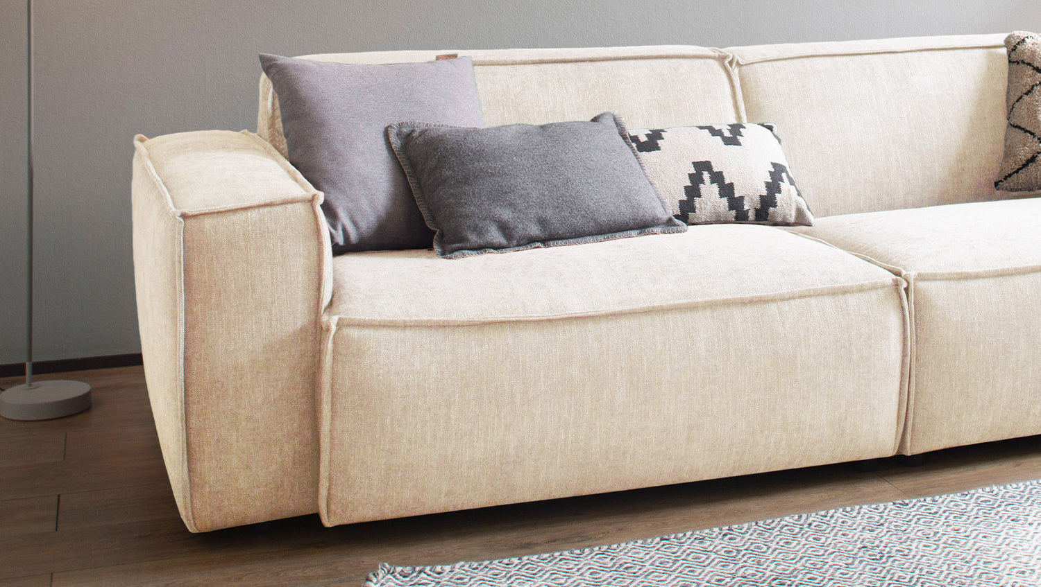 El KAWOLA SAMU impresiona por su extraordinaria comodidad de asiento, que procede de la estructura extremadamente suave y desenfadada de su tapizado e invita a la relajación. La tapicería se adapta a la forma del cuerpo; las huellas del asiento y las ondulaciones de las fundas son típicas del producto. Su forma moderna y urbana confiere al sofá un aspecto inconfundible y ofrece espacio suficiente para pasar veladas acogedoras. Con su diseño atemporal, se integra a la perfección en cualquier ambiente y también destaca de pie en la habitación. Si quiere dar un toque original a su salón, el sofá SAMU es sin duda la elección perfecta.