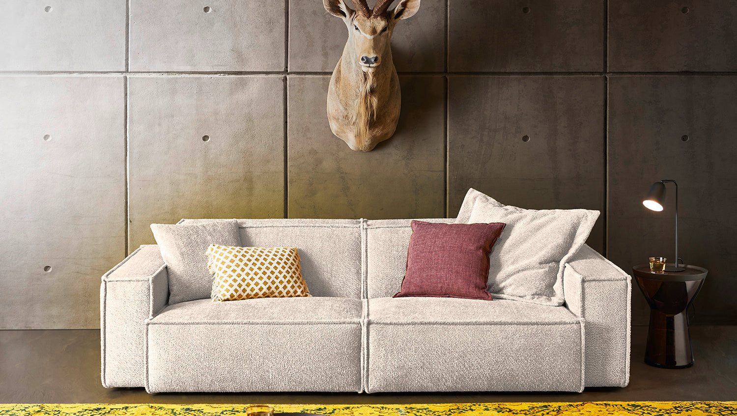 El sofá SAMU de KAWOLA impresiona por su extraordinaria comodidad de asiento, que se consigue gracias a la estructura extremadamente suave y desenfadada del tapizado e invita a quedarse y relajarse. La tapicería se adapta a la forma del cuerpo; las impresiones del asiento y las ondulaciones de las fundas son típicas del producto. La funda, agradablemente suave, recuerda a la lana de oveja, tanto visualmente como al tacto, y proporciona un mullido placer al sentarse. Su forma moderna y urbana confiere al sofá un aspecto inconfundible y ofrece espacio suficiente para pasar veladas acogedoras. Con su diseño atemporal, se integra a la perfección en cualquier ambiente y también destaca de pie en la habitación. Si quiere dar un toque original a su salón, el sofá SAMU es sin duda la elección acertada.