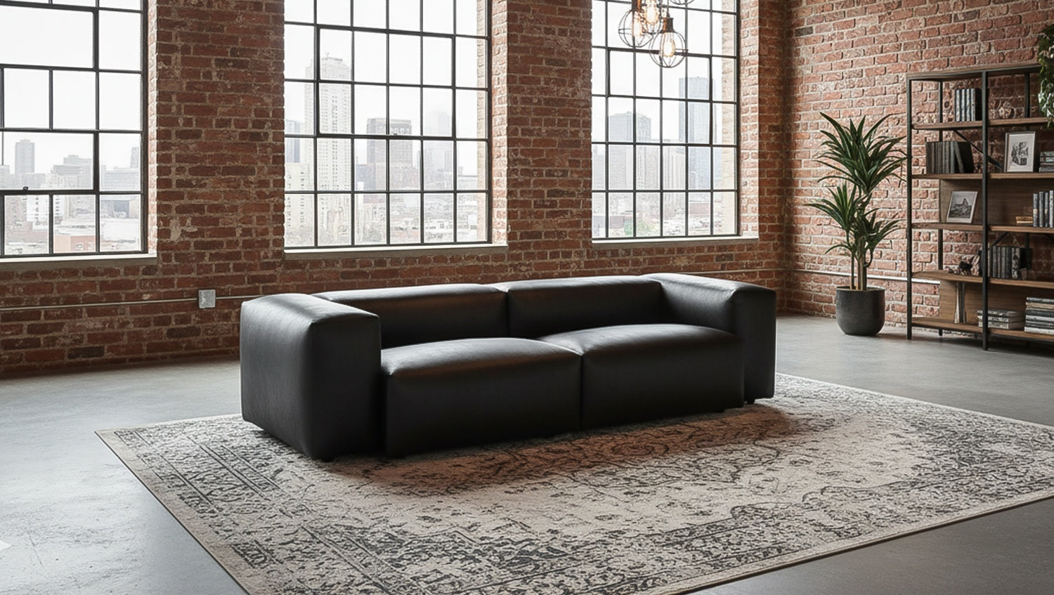 KAWOLA Sofá CELESTE 4 plazas con Puf cuero fibra tejido negro
