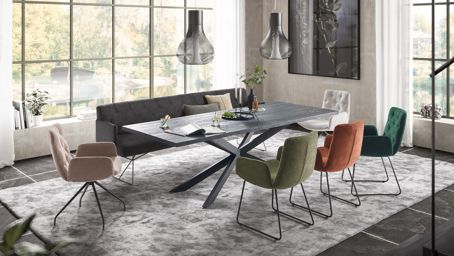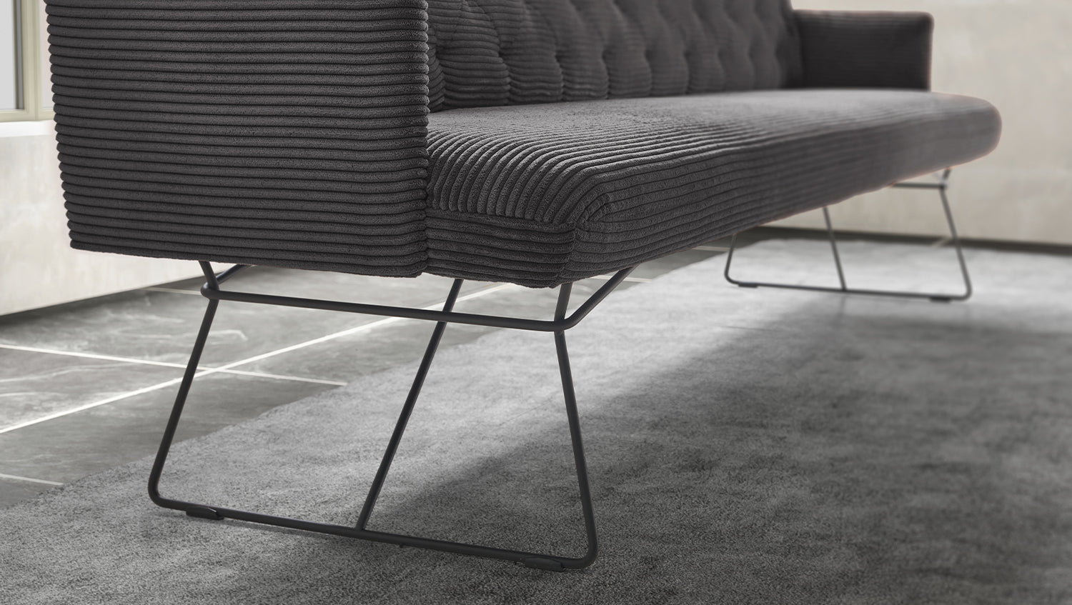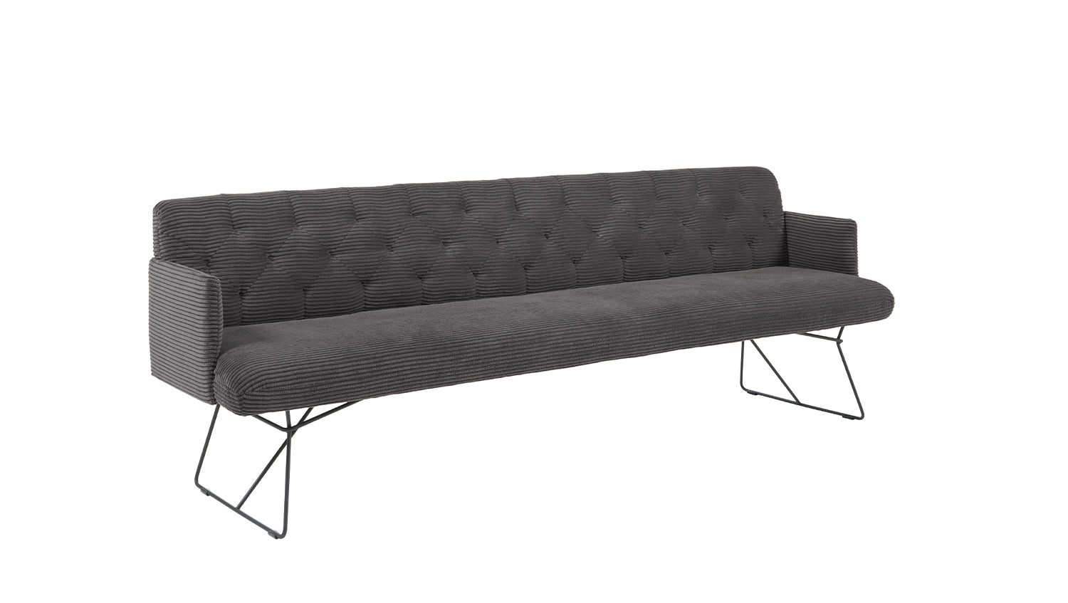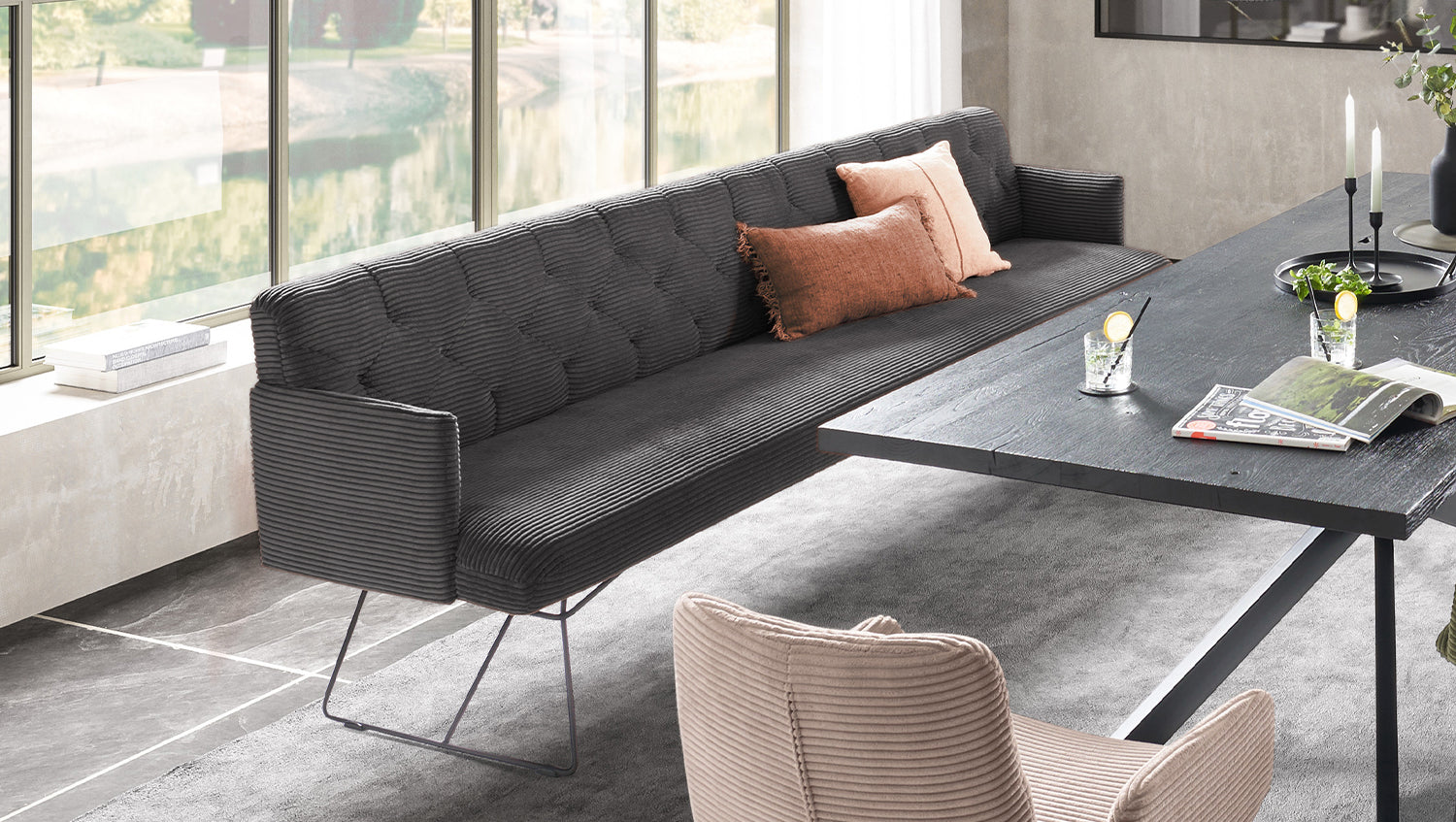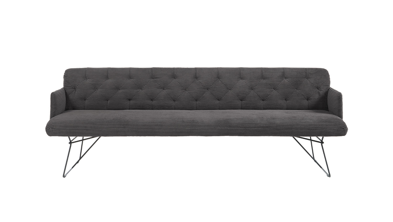 El banco de comedor KAWOLA CHARME aporta un aire vintage a cualquier habitación. Gracias a su diseño minimalista, el cómodo Banco tapizado se adapta a cualquier hogar e invita a pasar las tardes jugando con los amigos o la familia. El banco se caracteriza por su tapizado desenfadado y el elevado confort de asiento que conlleva. La estructura desenfadada del asiento es típica del modelo y el diseño ondulado acentúa el factor acogedor del banco. El acogedor tapizado se acentúa aún más con la suave funda de tela de pana de moda, que hace que la sensación del banco sea acogedora y cómoda. Como el banco de comedor CHARME está revestido totalmente de tela, también se puede colocar en cualquier lugar de la habitación. El Banco tapizado encaja perfectamente en su hogar gracias a sus pies de alambre y a su elegante tapizado de pana. El banco tiene capacidad para cuatro personas que pueden disfrutar de una comodidad de asiento sin restricciones.