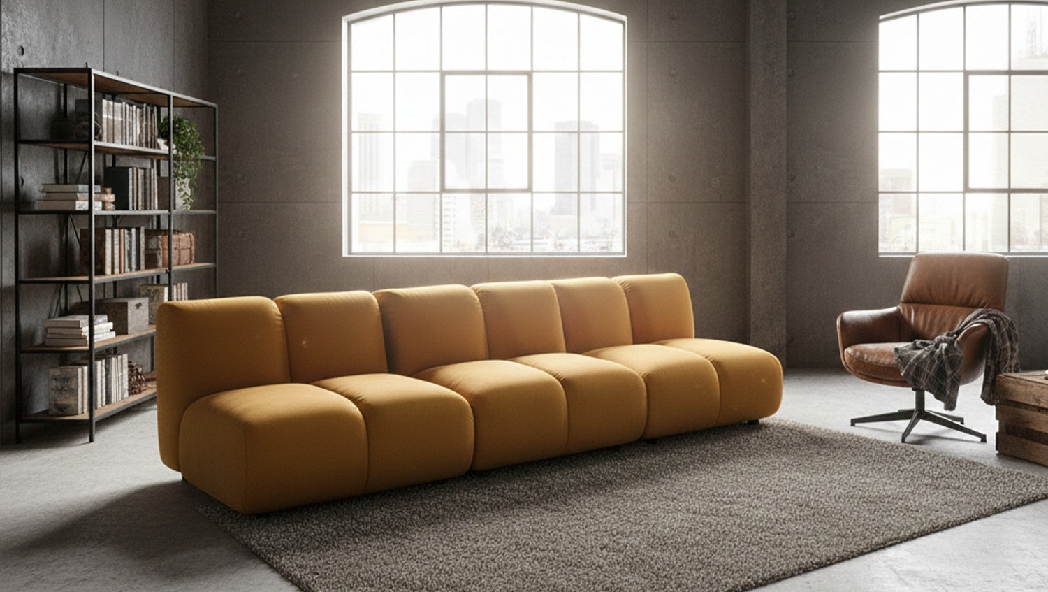 • Sistema de sofás modulares con elementos de asiento combinables libremente para una máxima libertad de diseño.