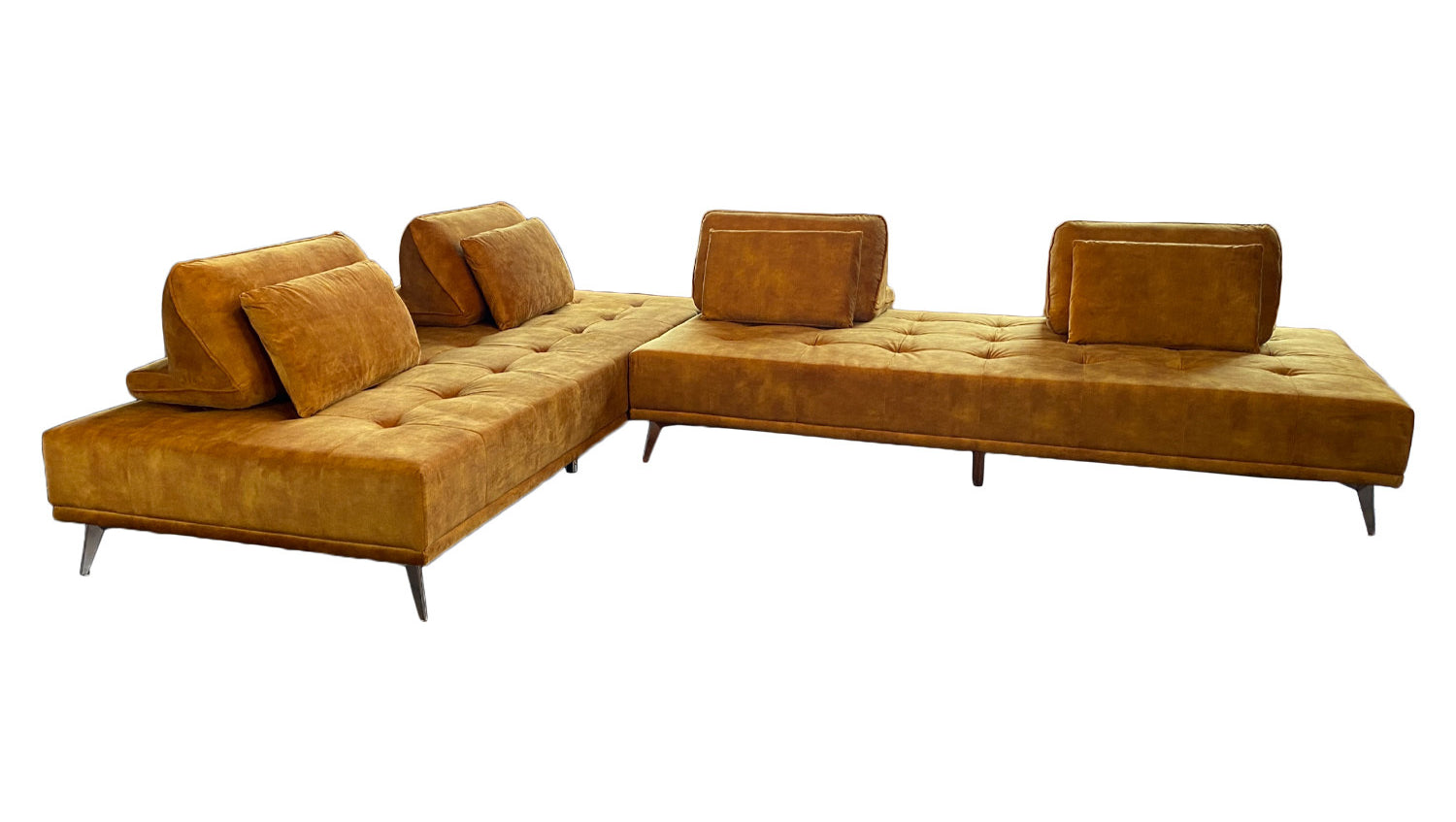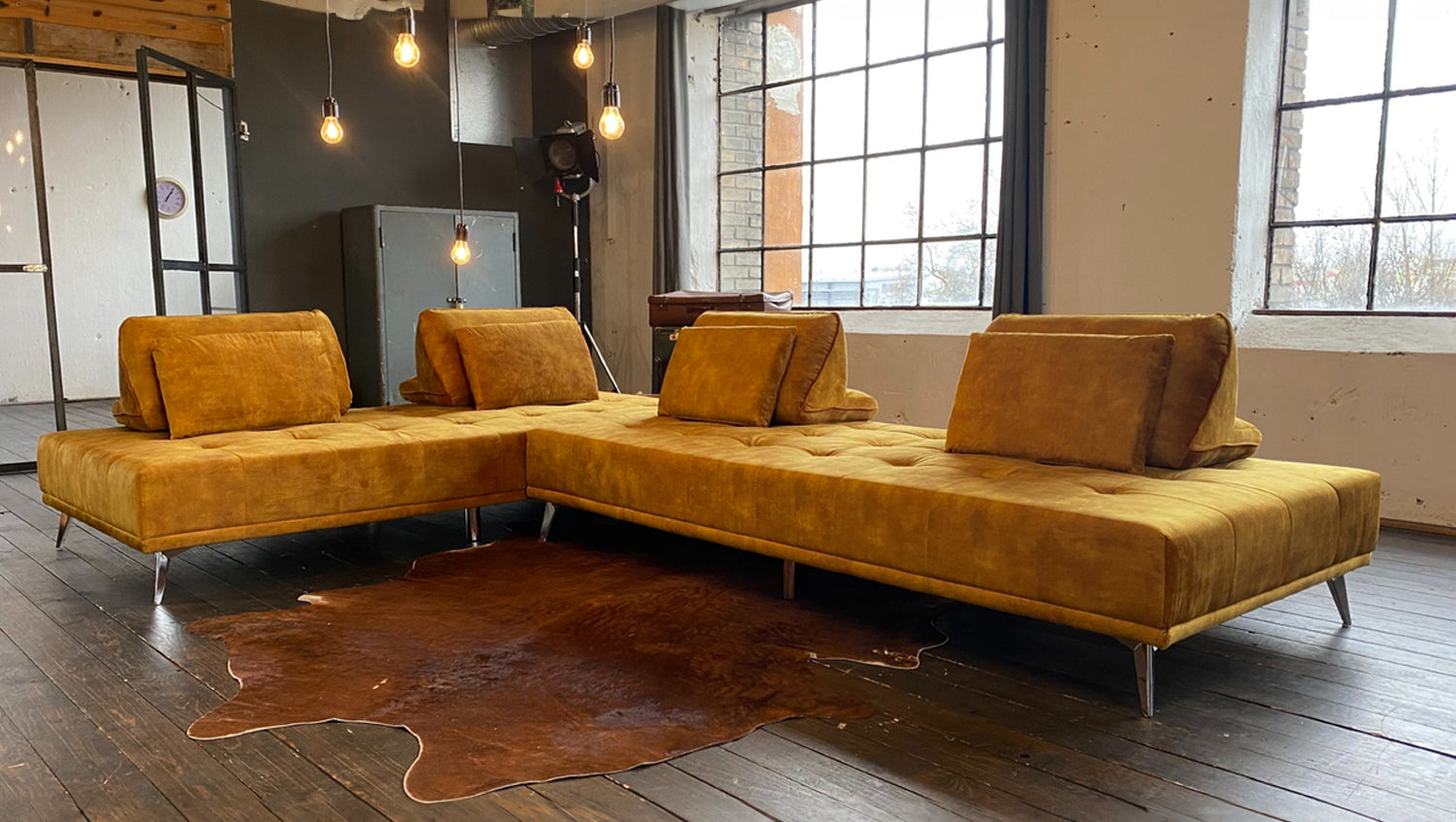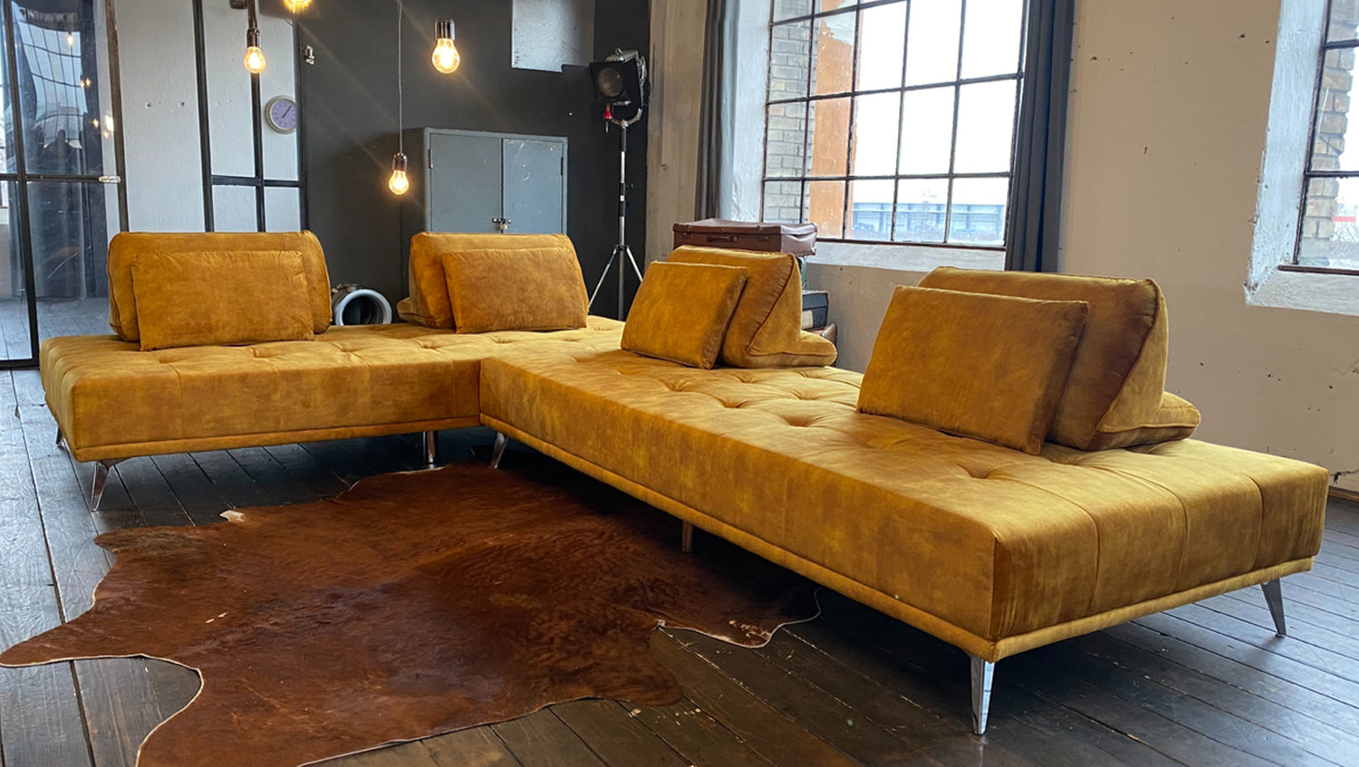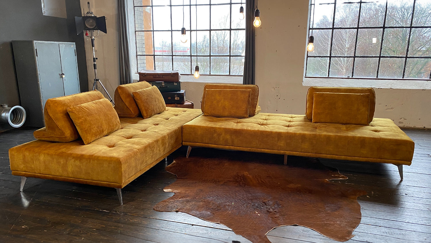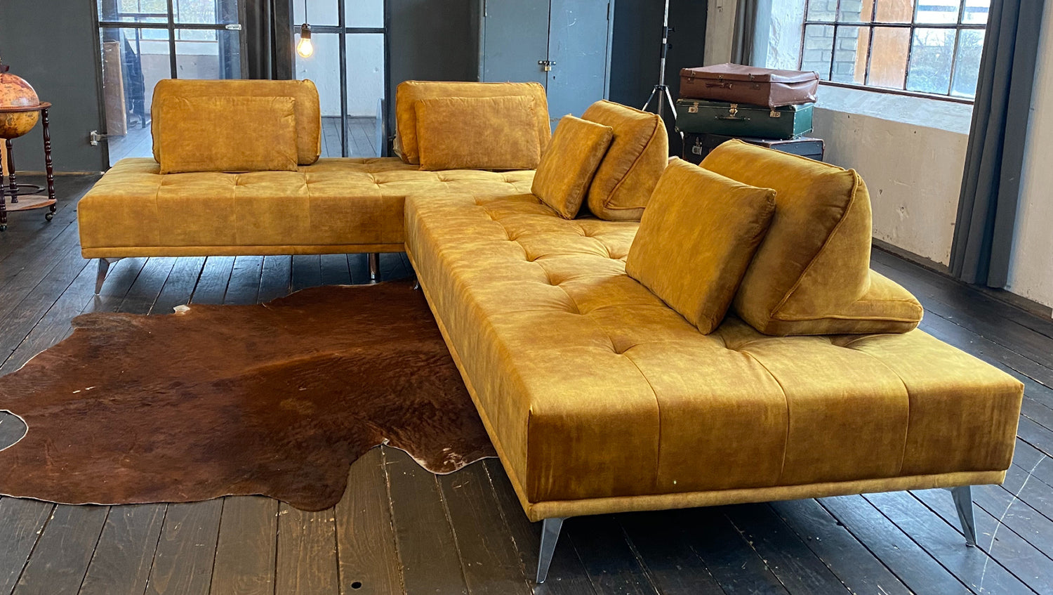 Elegante acolchado en el asiento, agradable tapizado de tela y pies metálicos de filigrana: todo esto caracteriza al sofá WIOLO de KAWOLA. Pero este mueble no sólo es atractivo a la vista. El sofá esquinero WIOLO ofrece varias posibilidades de uso: En primer lugar, puede utilizarse como un elegante sofá esquinero. Lo más destacado en este caso es que los Cojines respaldo se pueden distribuir y desplazar individualmente según se desee. Esto le permite adoptar la posición más cómoda para sentarse o reclinarse. En segundo lugar, quitando los cojines del respaldo y juntando los módulos, el sofá también se puede utilizar como sofá cama grande (L/A: 240x220cm) o, por separado, como dos zonas reclinables más pequeñas (L/A: 240x110cm). No importa dónde ni cómo, el sofá cama WIOLO aporta elegancia y comodidad a cualquier habitación y, además, ¡es increíblemente práctico!