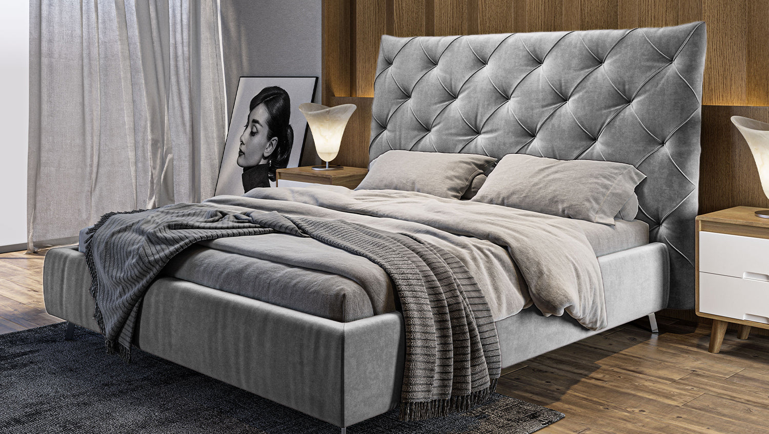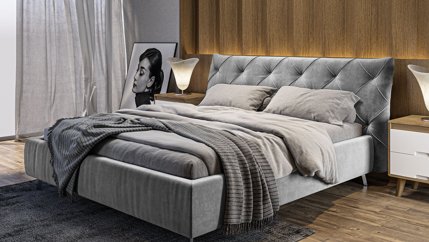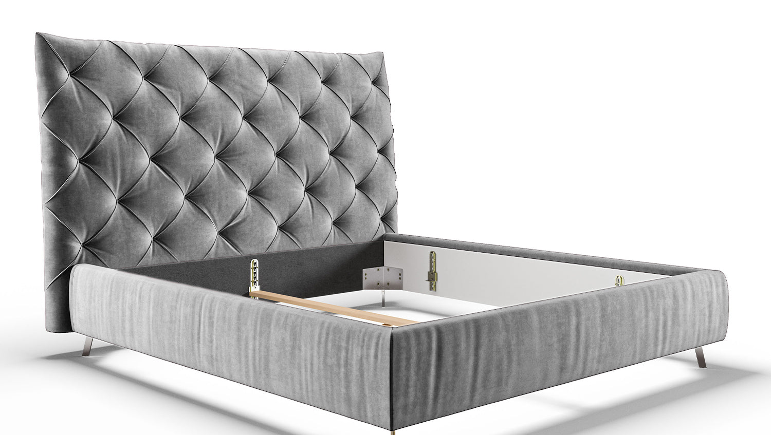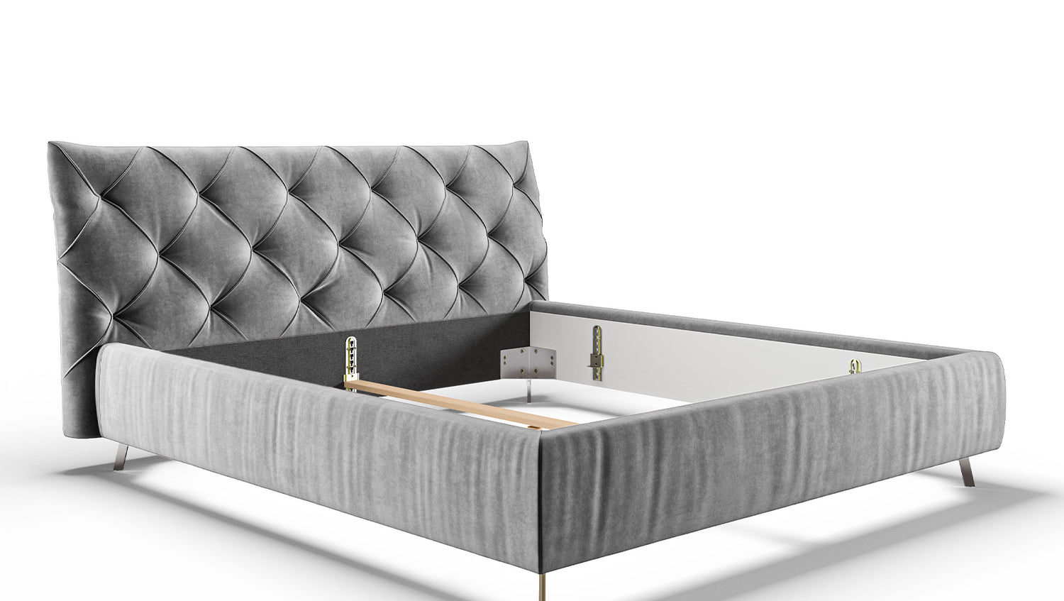KAWOLA cama ANNY cama tapizada Terciopelo plata