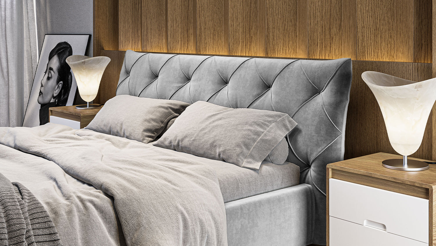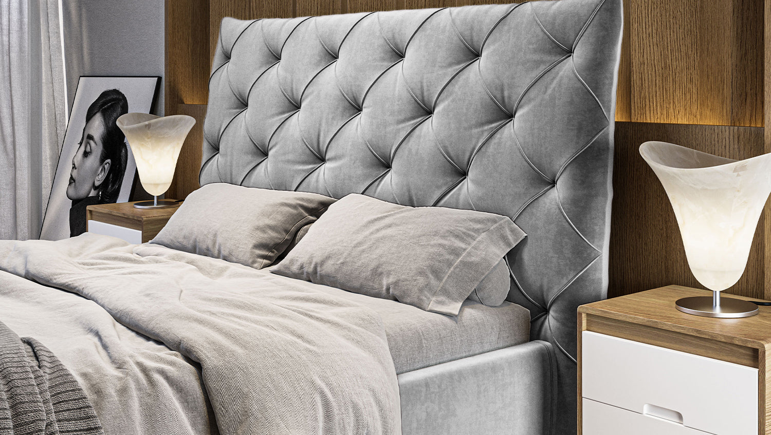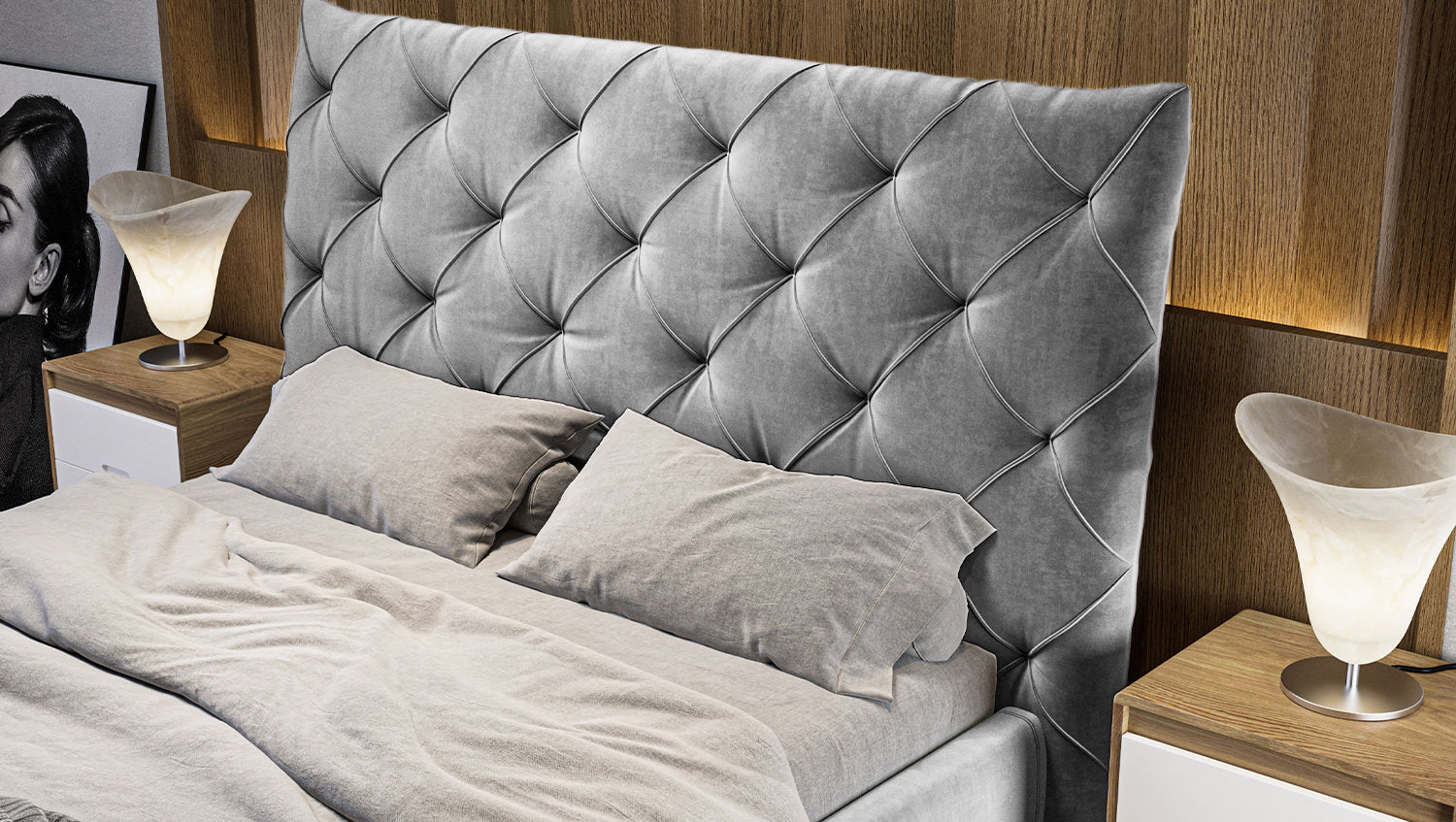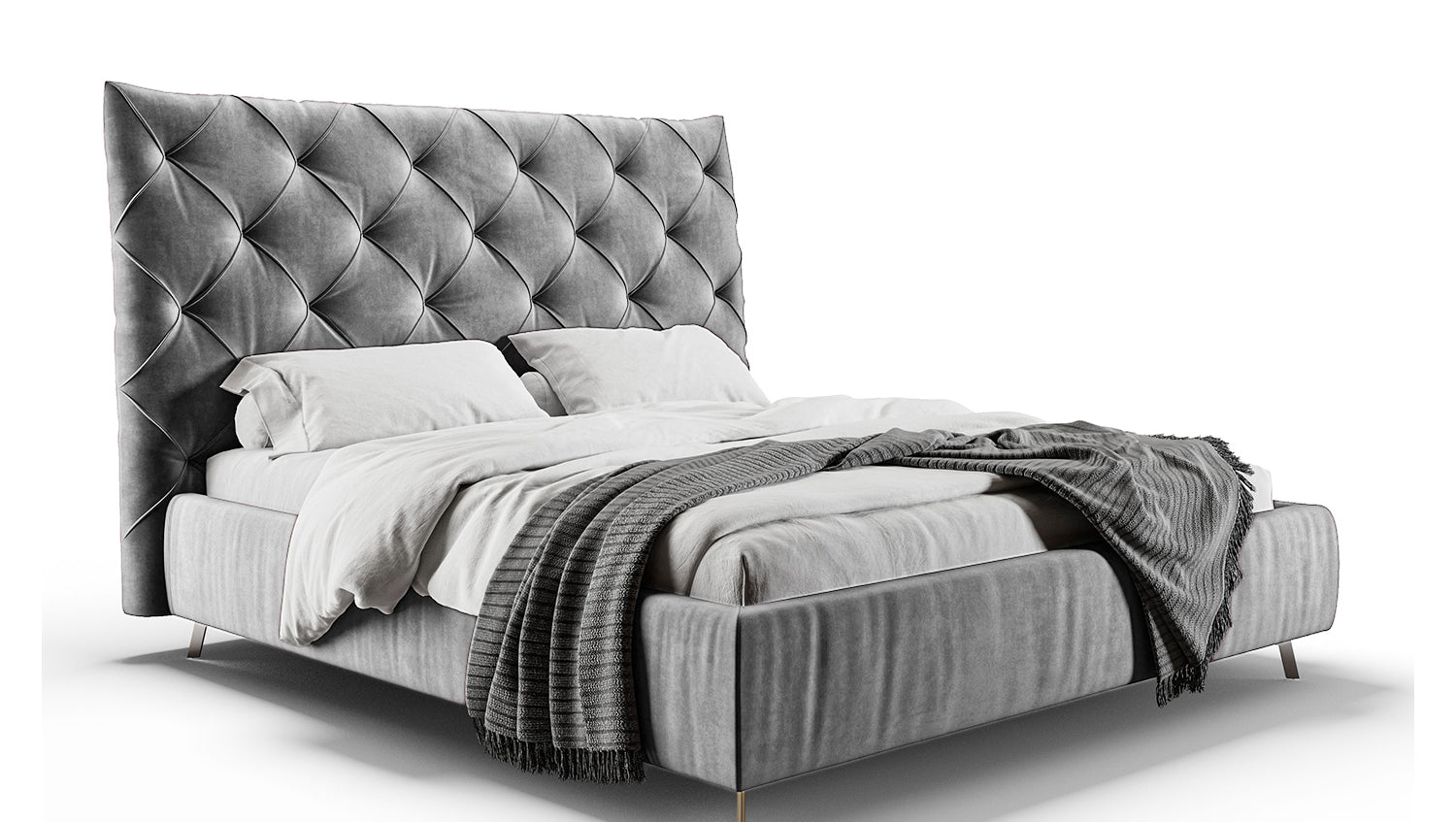 KAWOLA cama ANNY cama tapizada Terciopelo plata