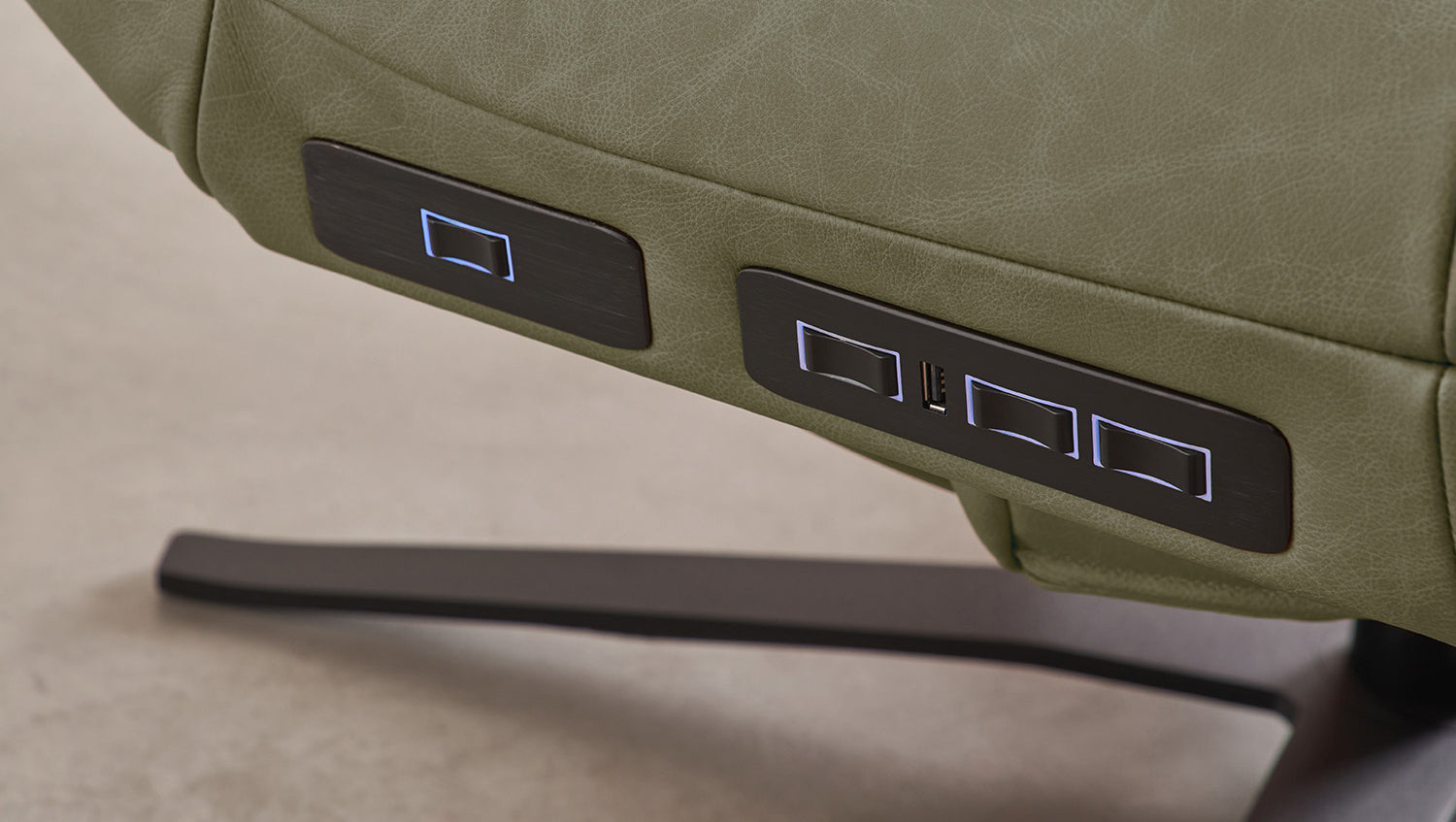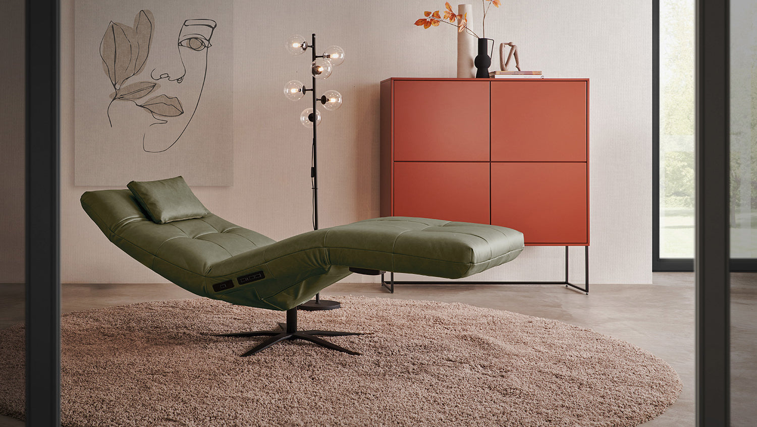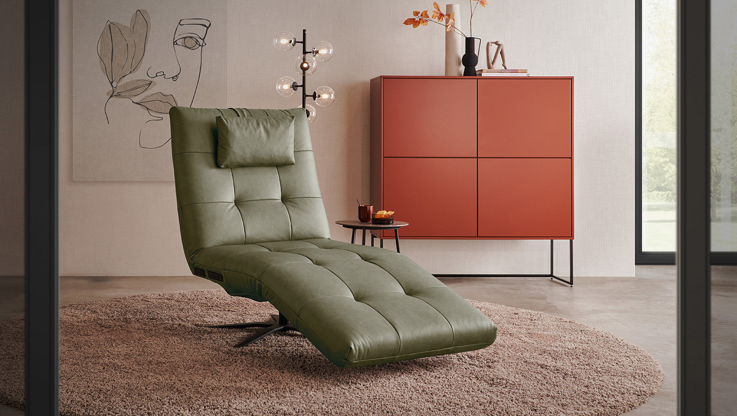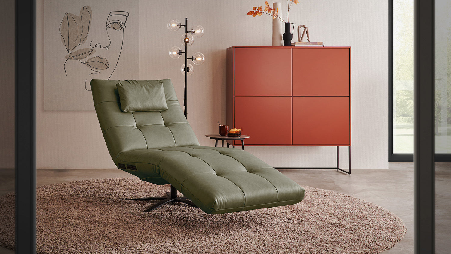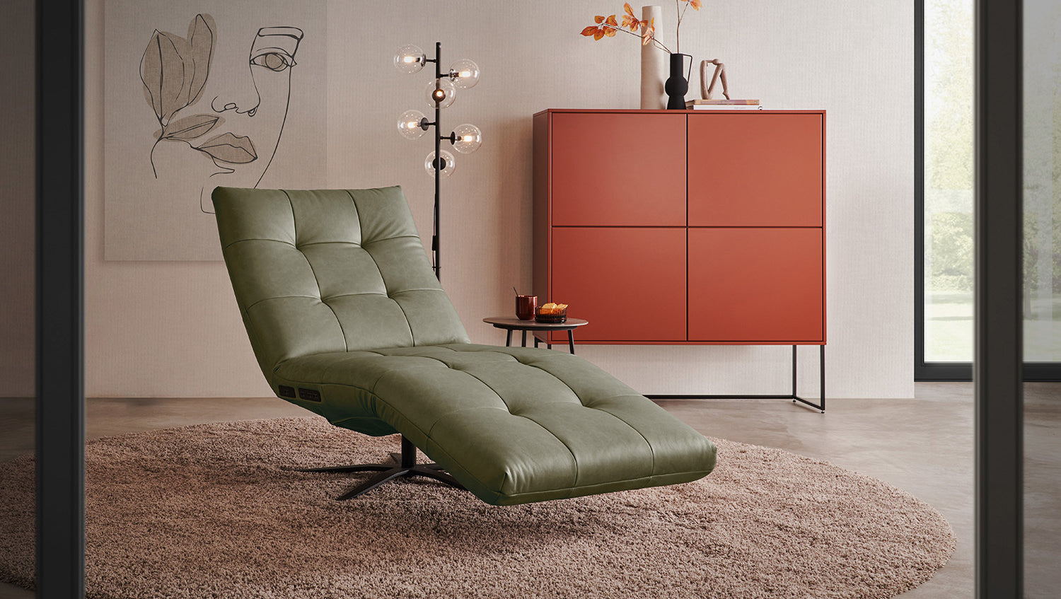 KAWOLA chaise longue LETICIA motorizada cuero verde oliva