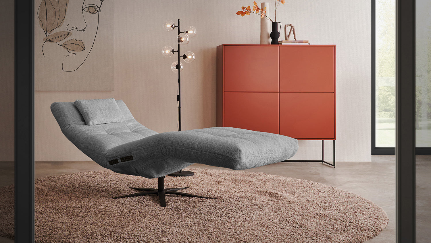 La tumbona LETICIA de KAWOLA combina un diseño elegante con el máximo confort. La elegante funda de tela con acabado integral confiere a la Chaise longue un aspecto de alta calidad y una agradable experiencia de asiento. Destaca especialmente la base giratoria de 360 grados, que permite la máxima flexibilidad. Gracias a la función de reclinación integrada, puede personalizar LETICIA y relajarse por completo. Cuando la función está totalmente extendida, se alcanza la posición de báscula cardíaca, en la que el corazón y los pies se encuentran en la misma posición. Esta posición optimiza la circulación sanguínea, alivia la presión sobre las piernas y es, por tanto, perfecta para relajarse. Ya sea para leer, ver la televisión o simplemente para desconectar, el sillón reclinable LETICIA es la elección perfecta para los amantes del estilo. Tenga en cuenta que el reposapiés y el respaldo no pueden utilizarse como asiento. El límite de carga para el reposapiés y el respaldo es de 30 kg.
