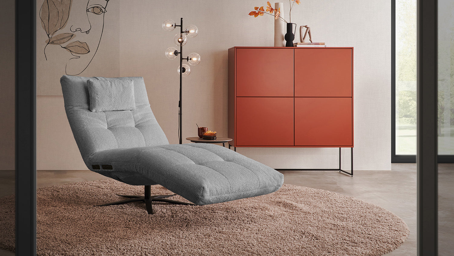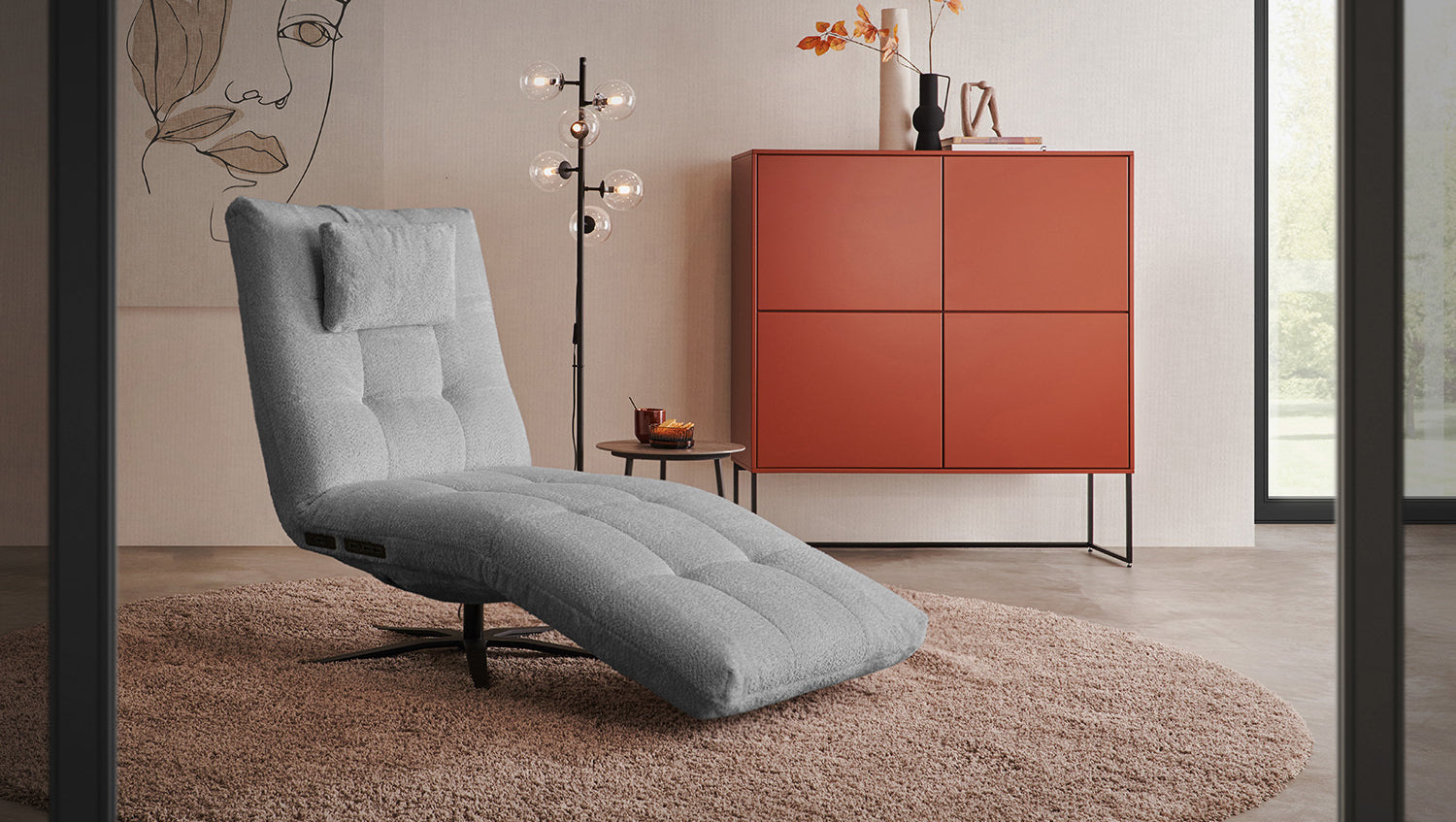 KAWOLA chaise longue LETICIA tela motorizada gris