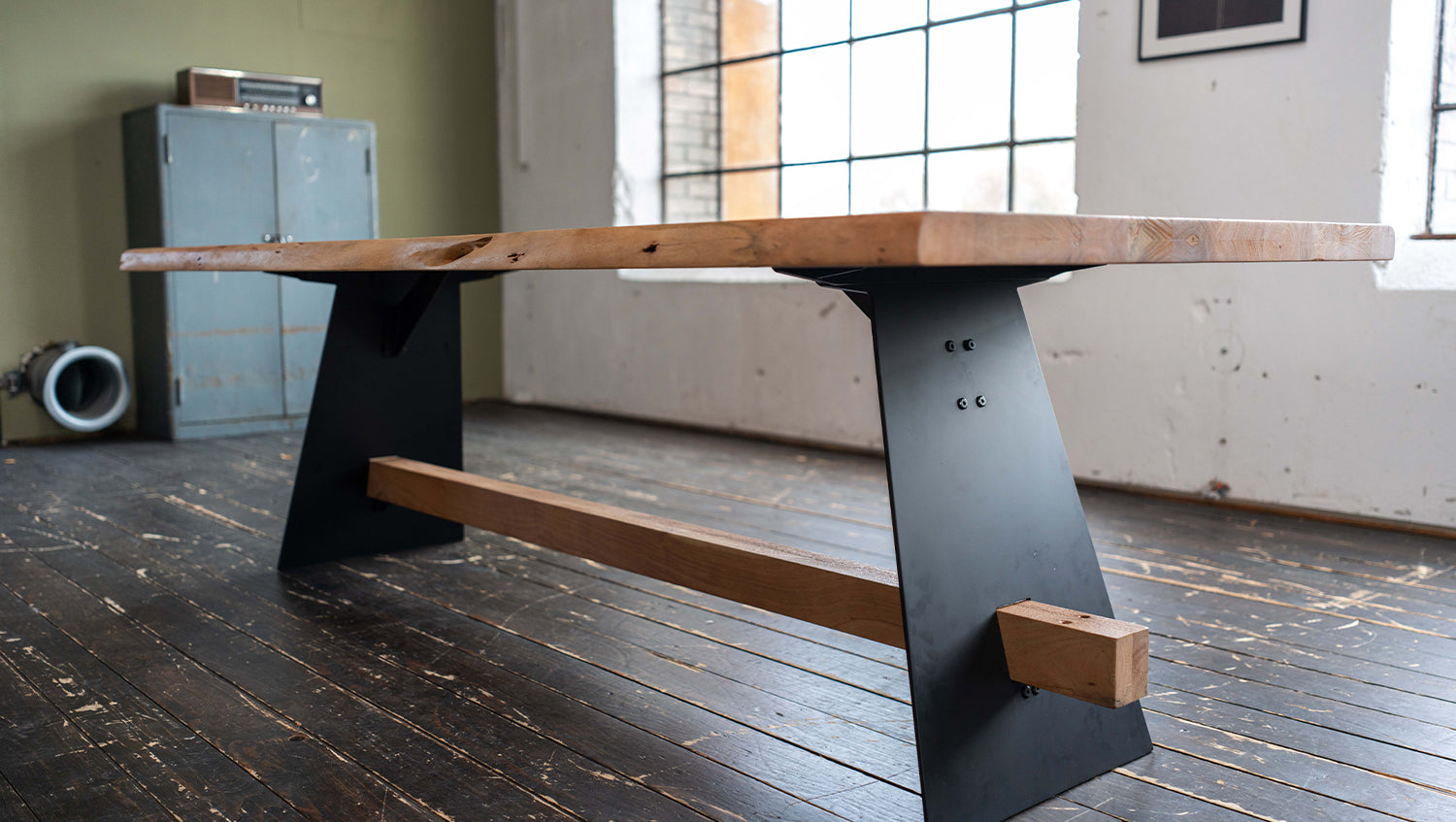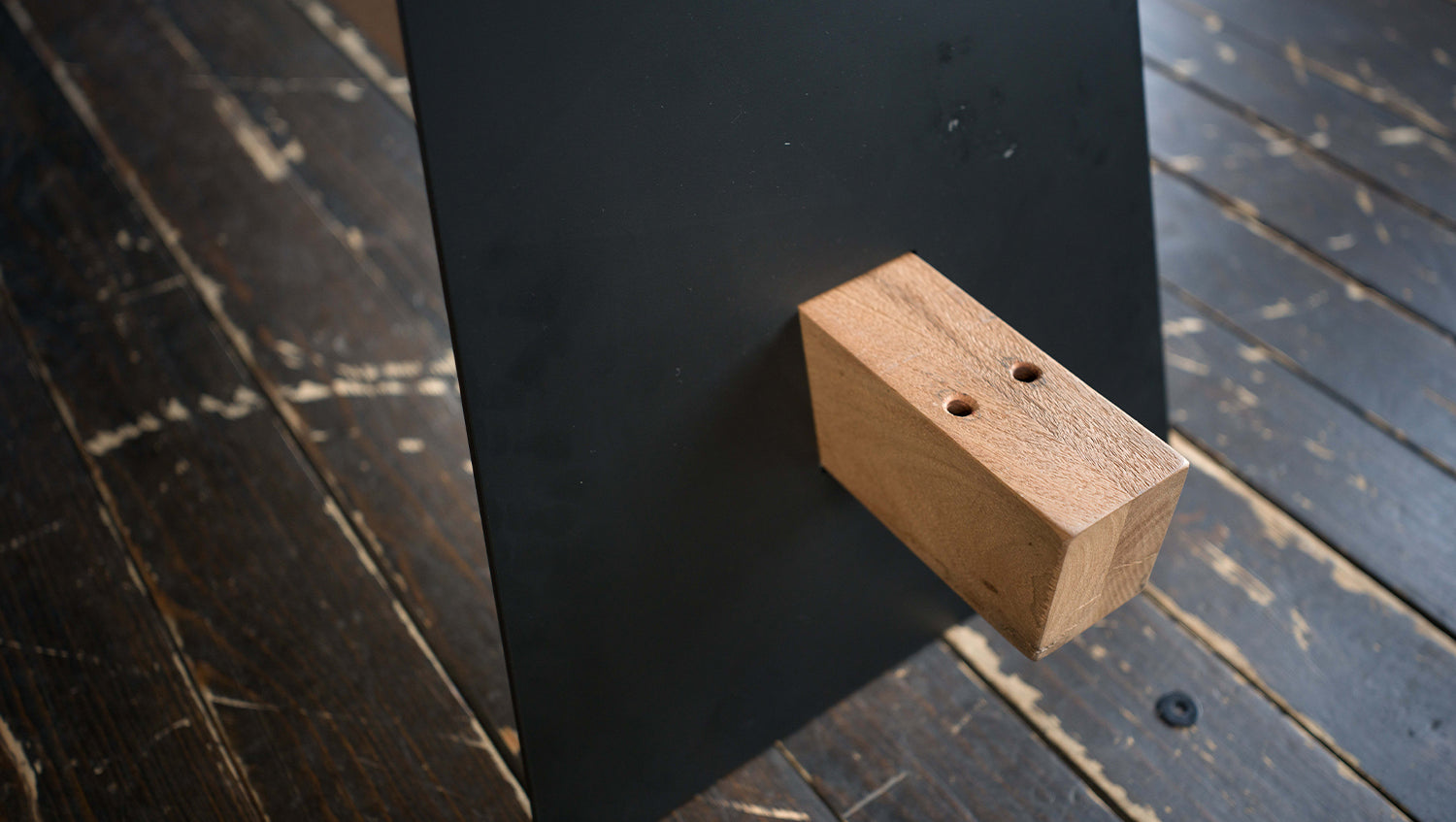 • Armazón de vigas de acacia con patas de acero, lacado en negro