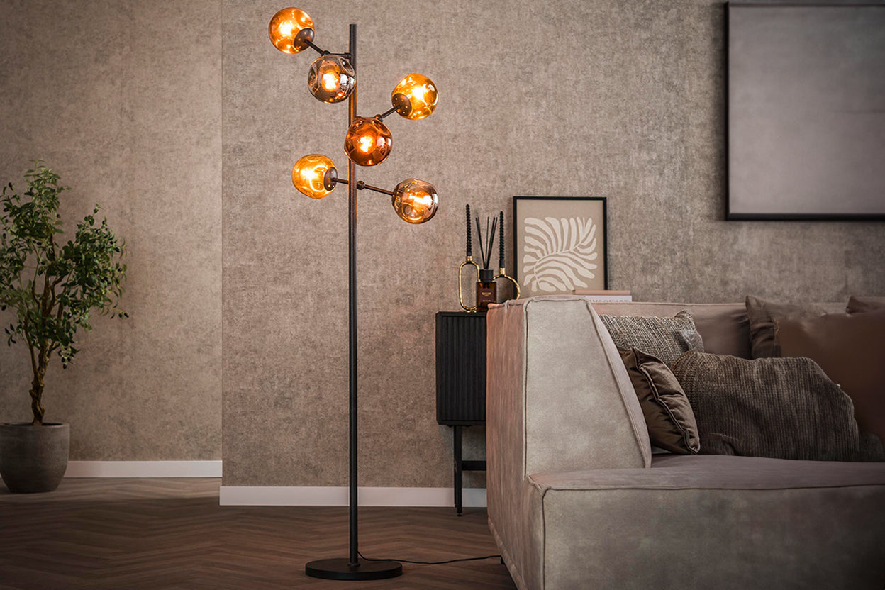 KAWOLA lámpara de pie PELOTA lámpara de pie 6 puntos de luz de cristal negro