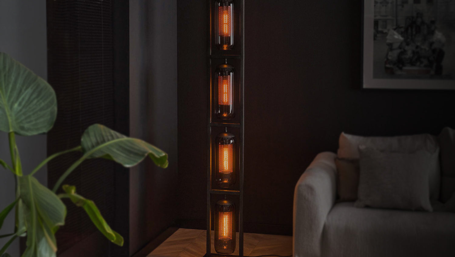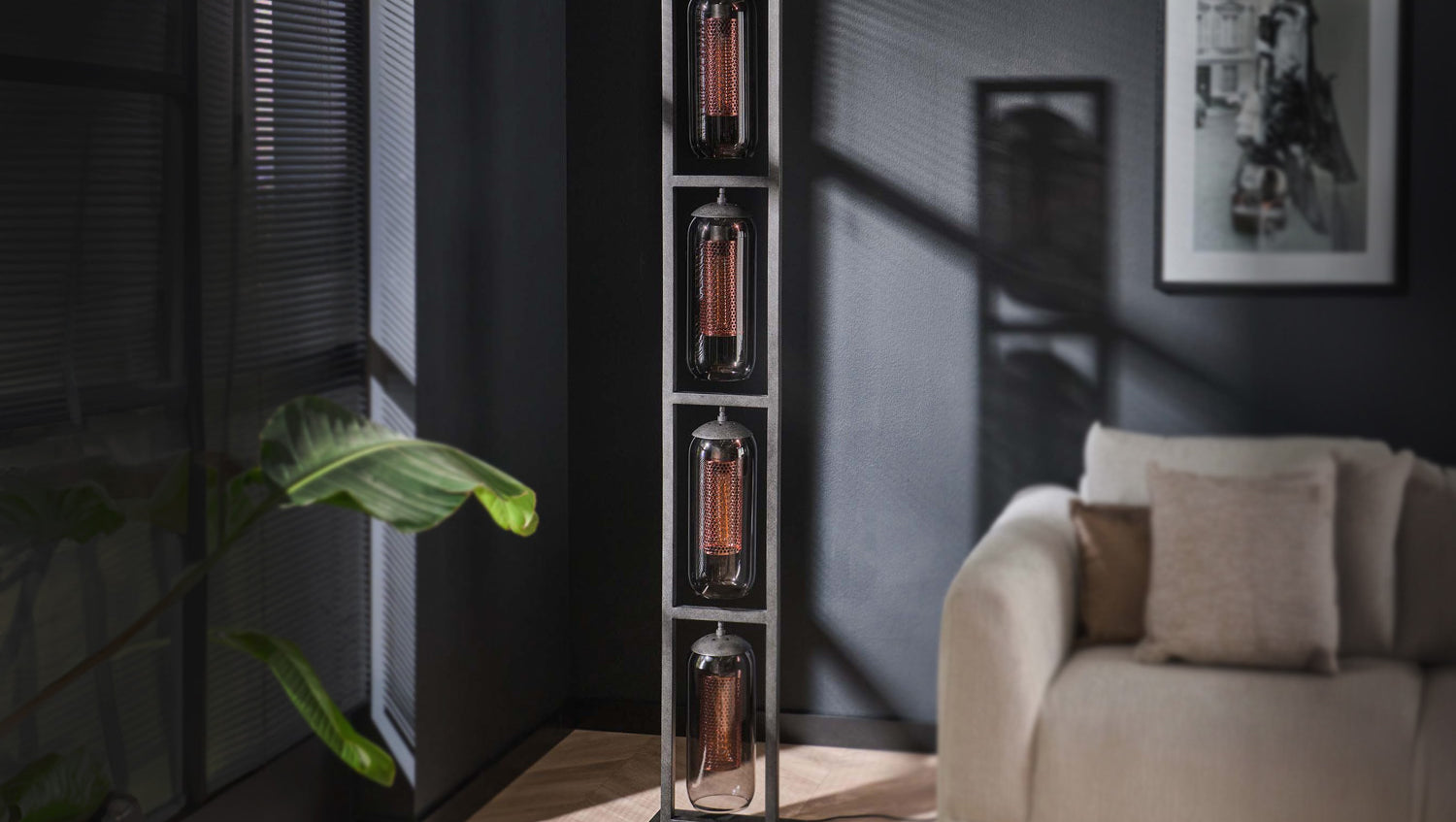 La lámpara de pie KAWOLA TRIEST es una impresionante pieza de diseño que aporta un toque moderno a su hogar. Con cuatro elegantes pantallas de cristal ahumado soplado a mano y cuatro pantallas cilíndricas de rejilla de cobre, combina un aspecto sofisticado con una iluminación funcional. Las pantallas de cristal ahumado aportan un toque elegante y moderno, mientras que las pantallas de rejilla de cobre filtran suavemente la luz y la distribuyen uniformemente por la habitación. Esta sofisticada combinación crea un ambiente agradable y pone acentos de buen gusto en su sala de estar. La lámpara de pie TRIEST de KAWOLA es ideal para salones elegantes, rincones de lectura o pasillos y ofrece tanto elegancia visual como una distribución eficaz de la luz.