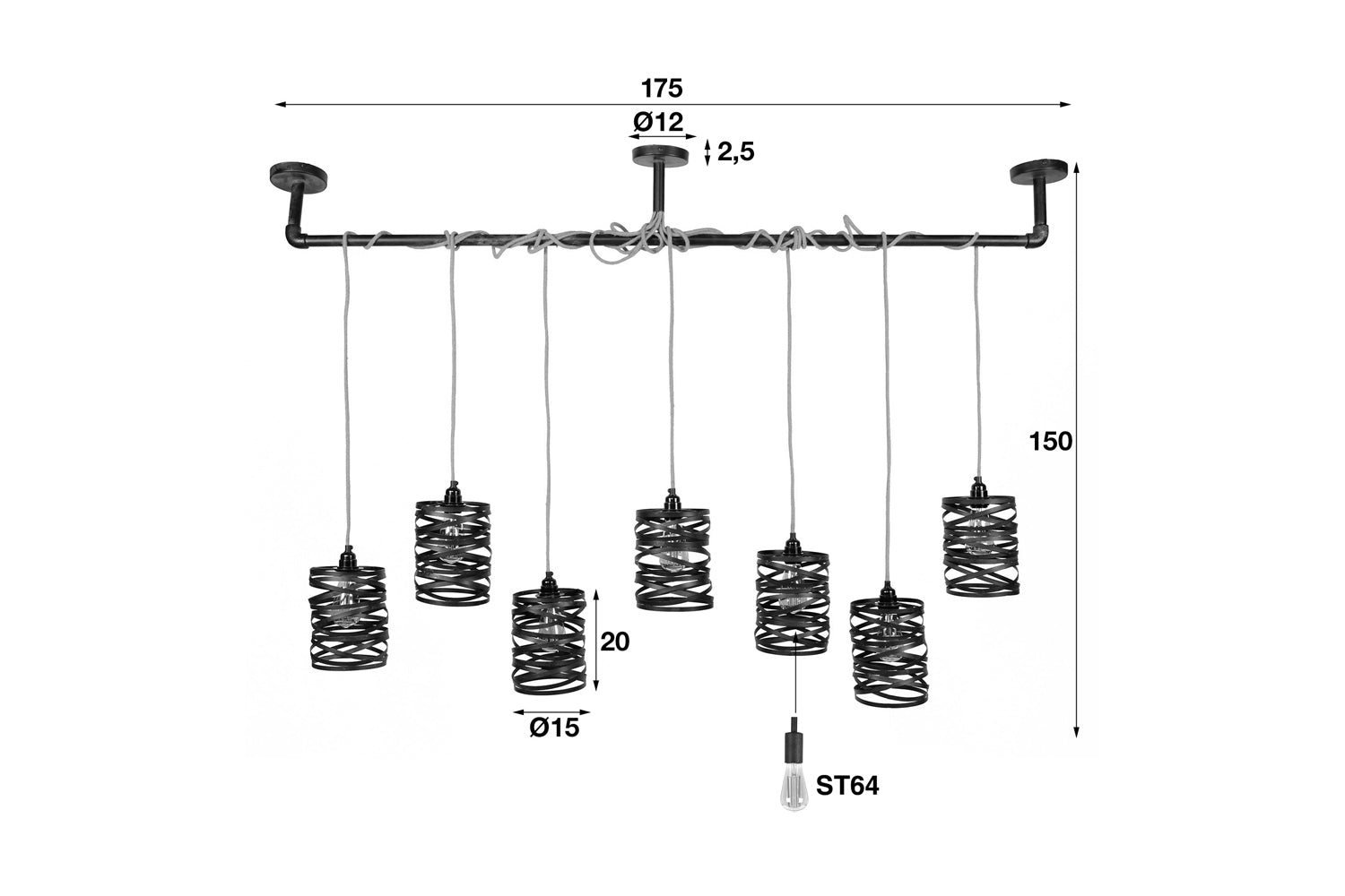 KAWOLA lámpara colgante ALMAS lámpara colgante 7 puntos de luz metal negro