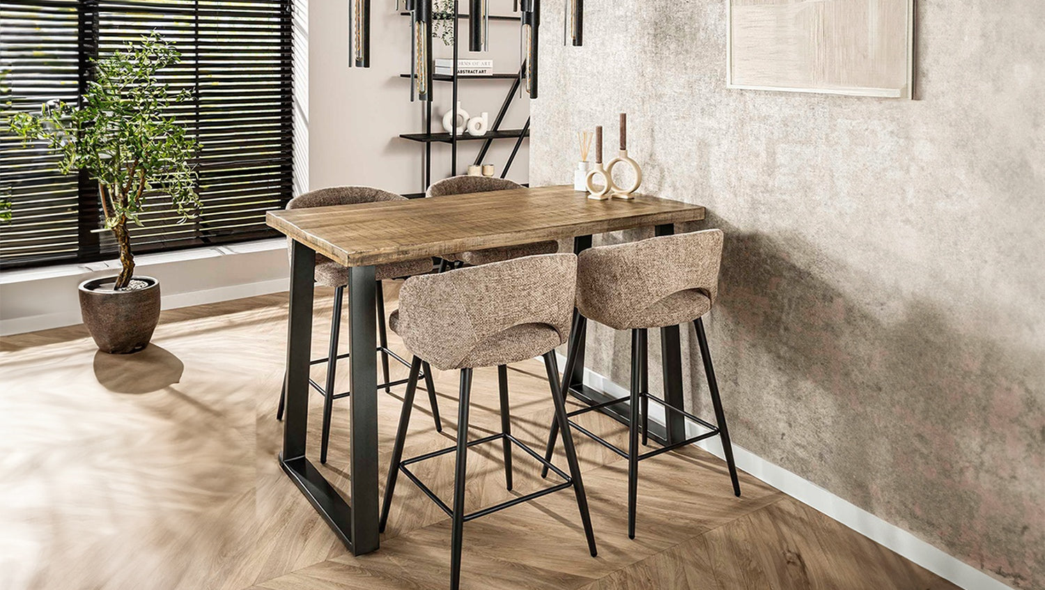 La mesa de bar FINA de KAWOLA convence por su diseño industrial de alta calidad y su encanto natural. El tablero de madera maciza de mango está reforzado hasta 5 cm y sellado con un barniz mate transparente que protege de la humedad y realza su veteado único. Las patas trapezoidales de acero pulido (7,5 cm de grosor) garantizan estabilidad y un aspecto llamativo, confiriendo a la mesa un carácter robusto con aire vintage. Con sus dimensiones de 135 x 70 x 92 cm (LxAxA), la mesa de bar es ideal para cocinas, comedores o conceptos de vida modernos de estilo industrial. FINA es más que un mueble: es una declaración de principios para los amantes de los materiales auténticos, la madera maciza y la artesanía con estilo. La mesa de bar puede combinarse perfectamente con taburetes de bar para reuniones acogedoras o como punto de atracción urbano en un ambiente loft.