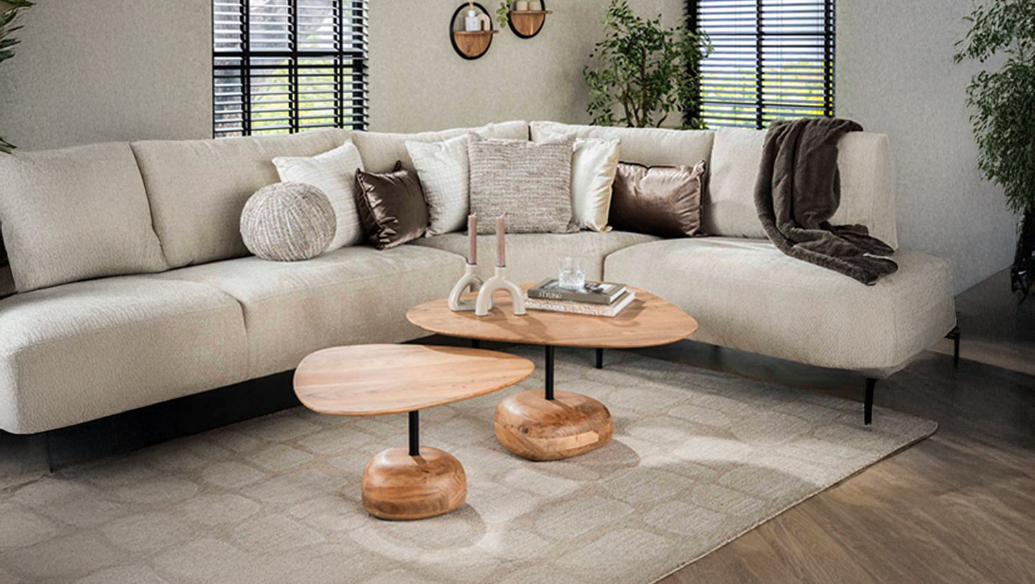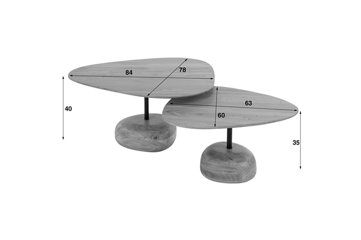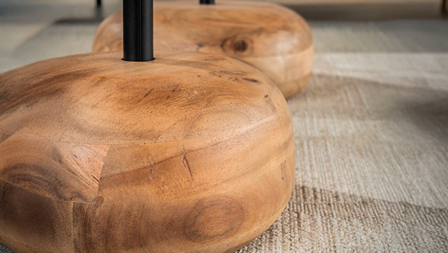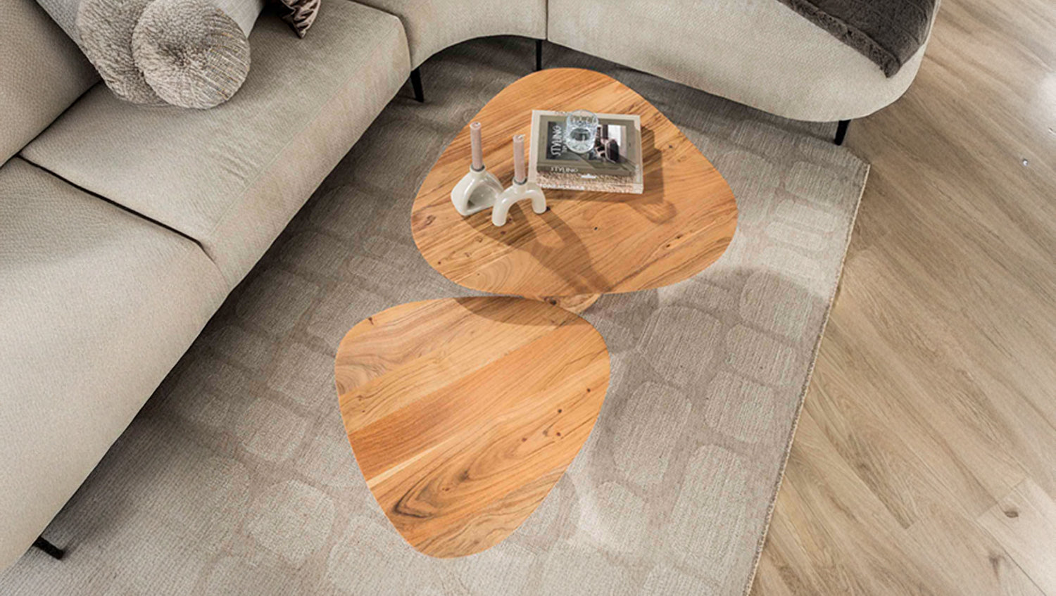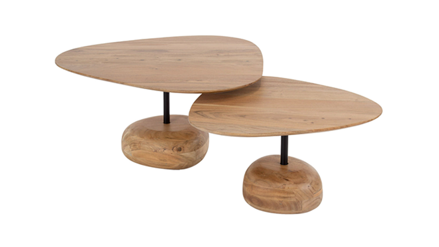 El juego de mesas de centro EVI de KAWOLA aúna naturaleza y diseño moderno en perfecto equilibrio. Las mesas son de madera de acacia maciza. Los tableros son planos y las bases de las mesas tienen un sólido diseño orgánico. Los tableros se fijan a la base mediante una rosca. El conjunto consta de dos mesas que pueden combinarse con flexibilidad. La mesa más grande mide 84 x 78 x 40 cm, mientras que la más pequeña, de 63 x 60 x 35 cm, puede deslizarse perfectamente debajo. Ambas tienen un tablero macizo de 3,8 cm de grosor. Ya sea en el salón, en la sala de estar o como elegante mueble de almacenaje, el juego de mesas de centro EVI encaja en cualquier hogar y es toda una declaración de diseño.