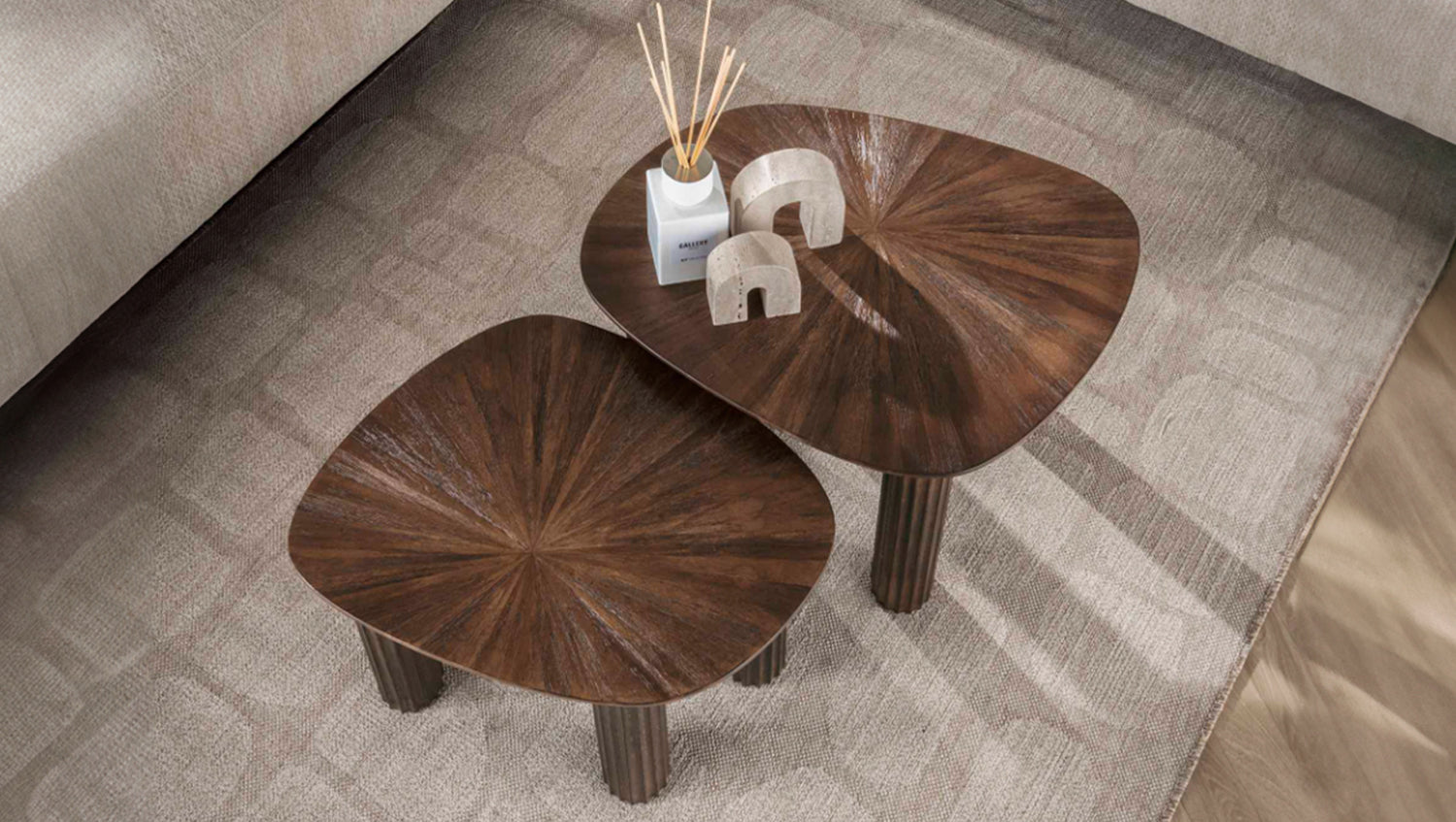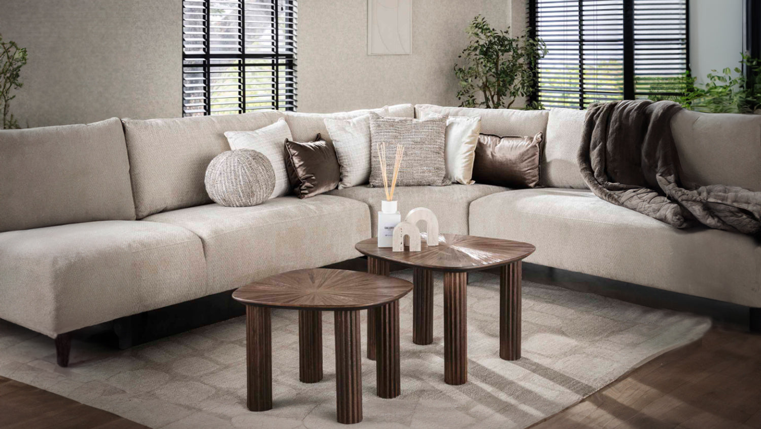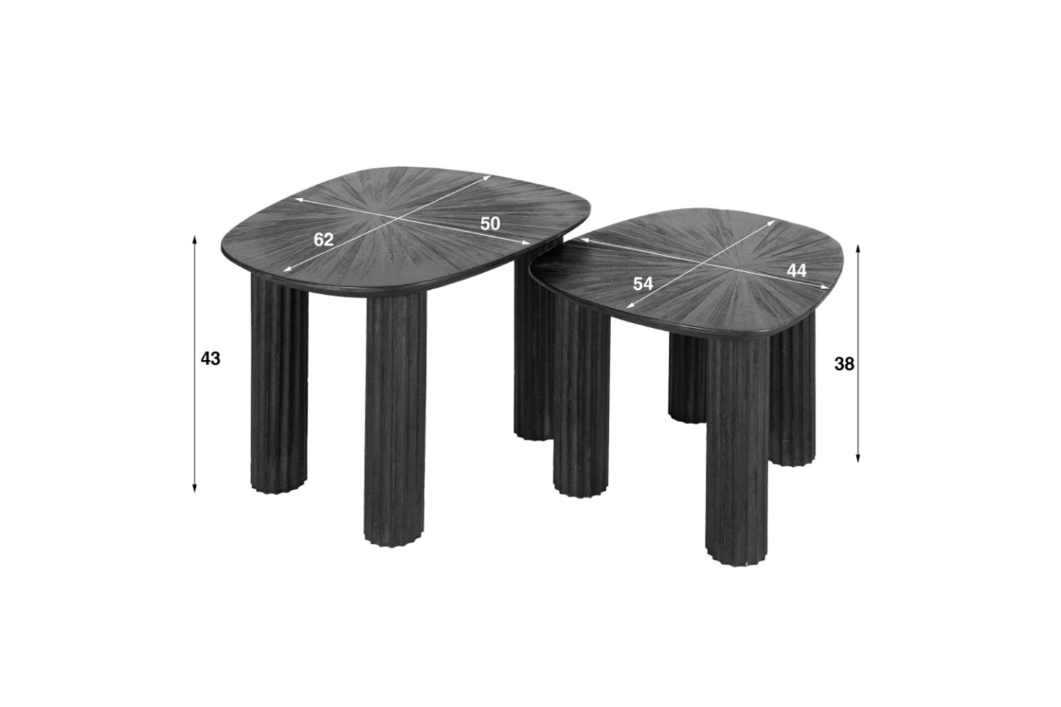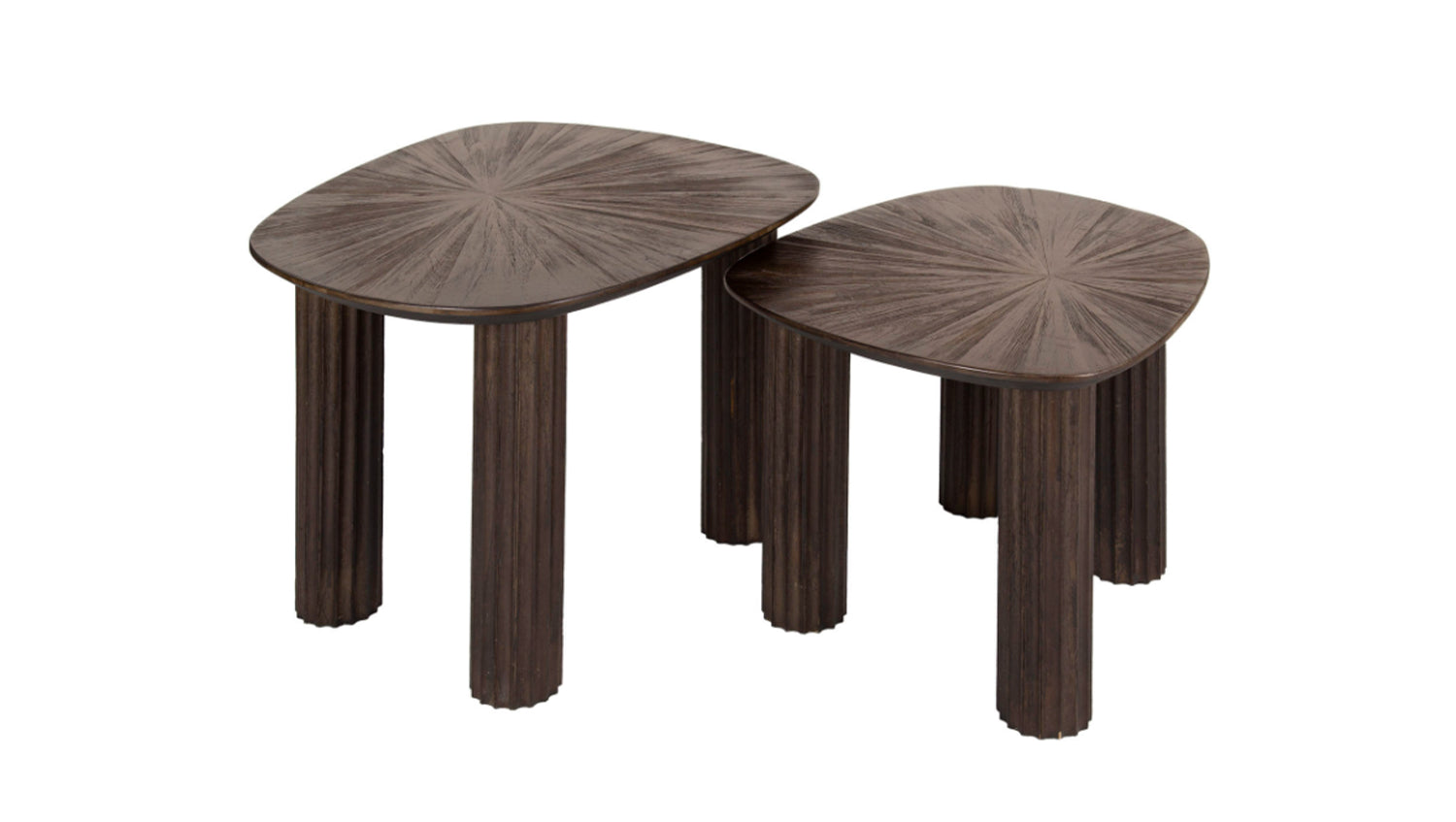 El juego de mesas de centro INKA de KAWOLA aúna naturaleza y diseño moderno en perfecto equilibrio. Las mesas están diseñadas con una forma orgánica y fabricadas en teca de alta calidad en un moderno color marrón oscuro. Esta combinación garantiza que estas mesas desprendan estilo y durabilidad. Las exclusivas patas onduladas y el elegante diseño del tablero crean un aspecto alegre y sofisticado a la vez. El conjunto consta de dos mesas. La mesa superior tiene una superficie de 62 x 50 cm y una altura de 43 cm, la mesa inferior tiene una superficie de 54 x 44 cm y una altura de 38 cm. Ya sea en el salón, en la sala de estar o como un elegante mueble de almacenamiento, el juego de mesa de centro INKA encaja en cualquier hogar y es toda una declaración de diseño.
