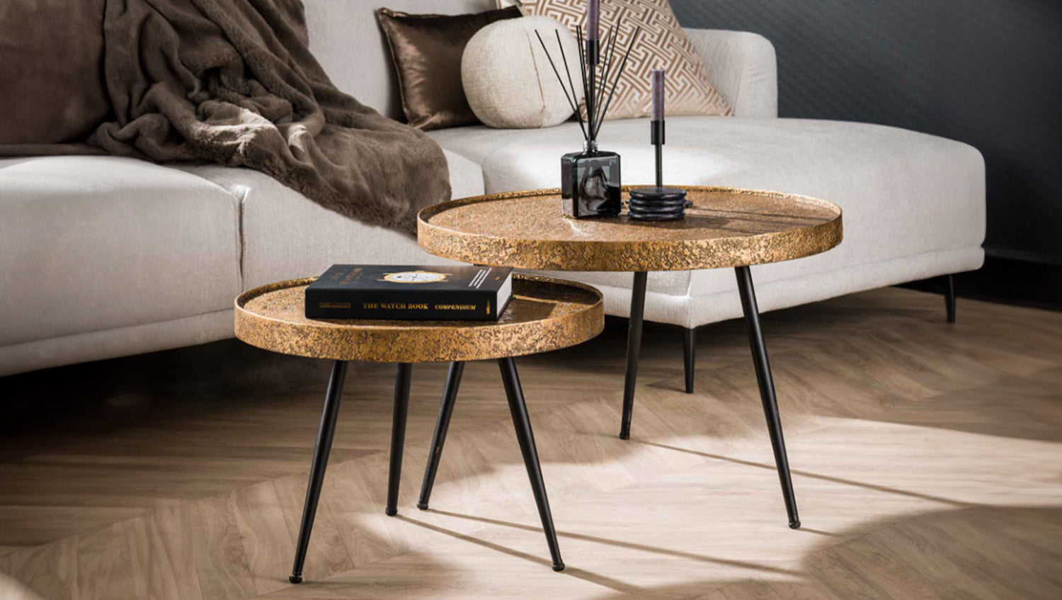 KAWOLA ARINOS juego de mesa de centro 2 piezas metal bronce