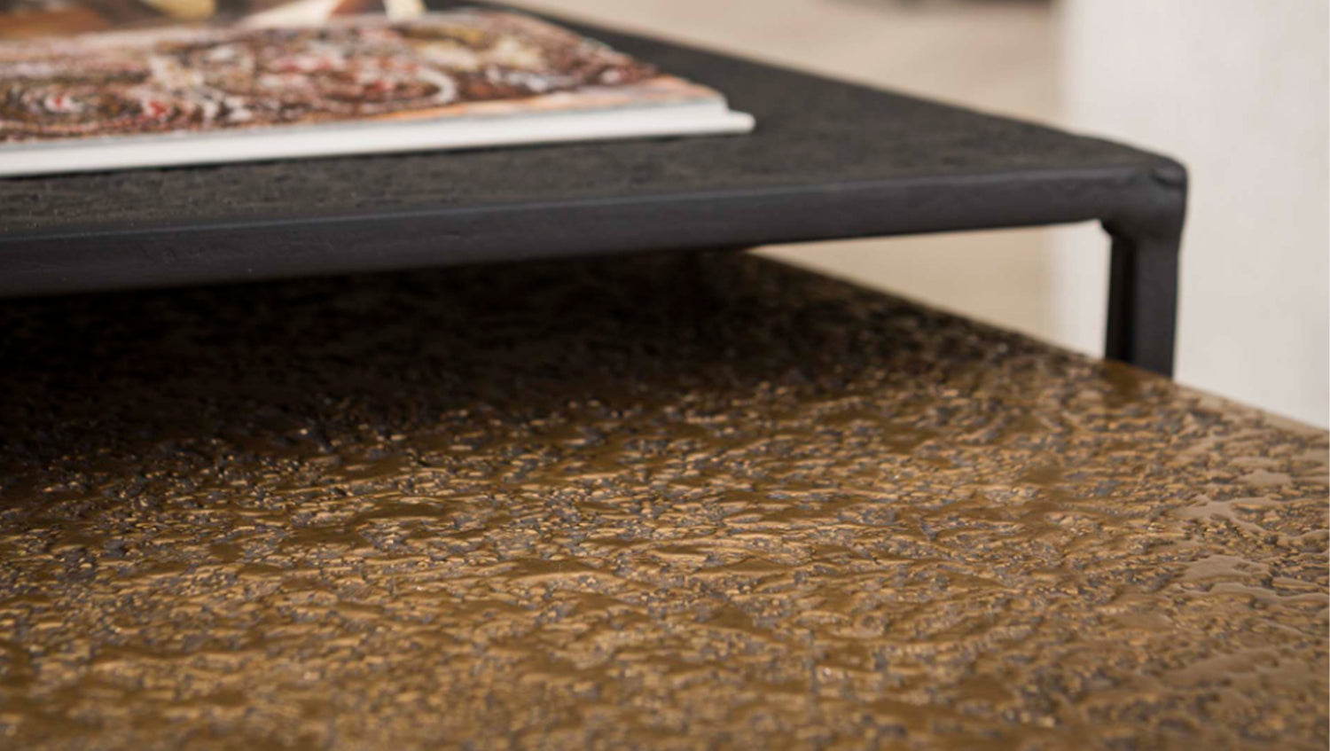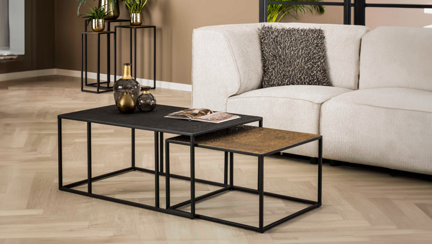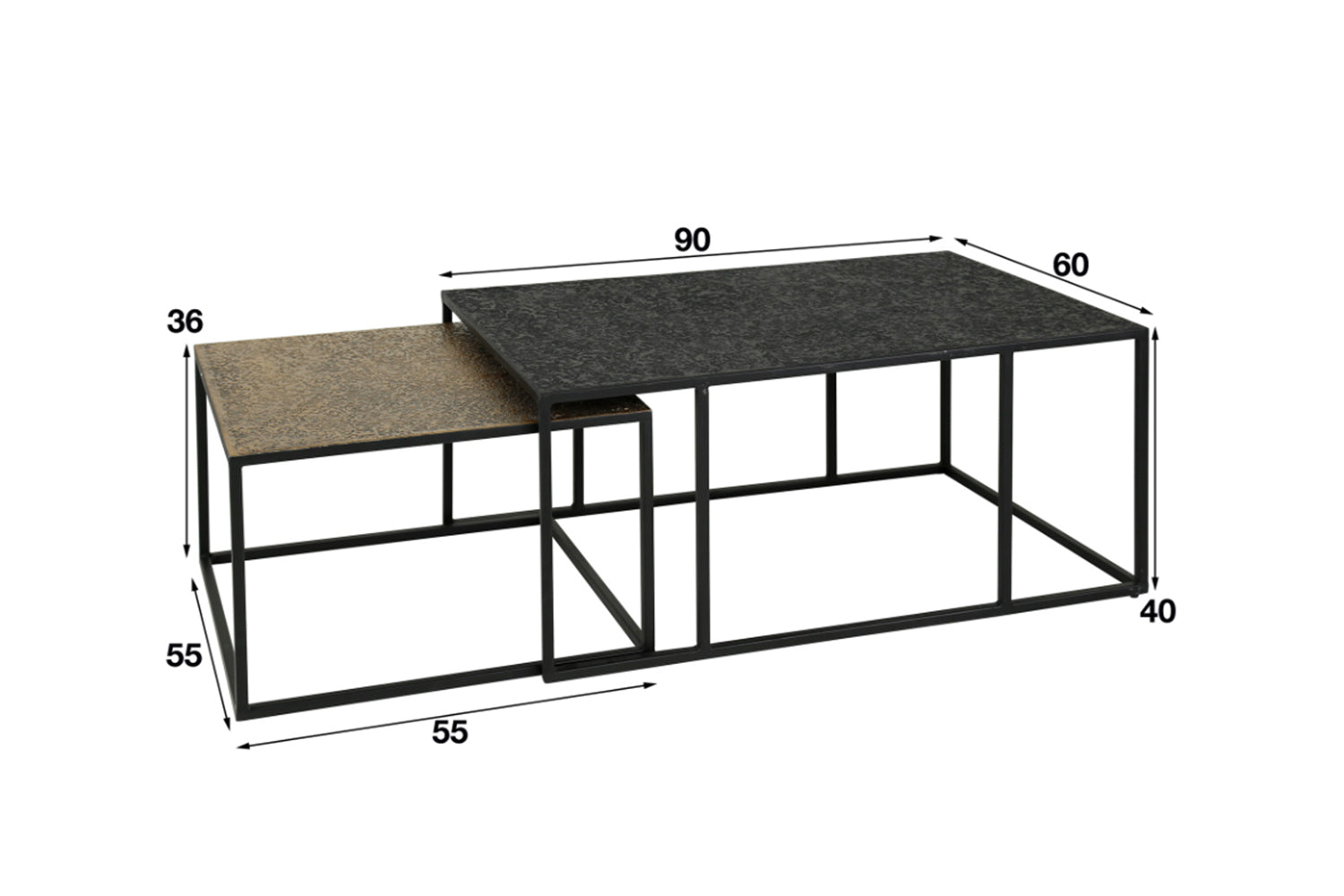 El precioso juego de mesas de centro ABUNA de KAWOLA de forma cuadrada está acabado en bronce antiguo "metalizado" y negro. Un tratamiento muy bonito se puede ver en la parte superior, que da a las mesas un aspecto único. Las mesas se pueden montar como se desee. Este conjunto llama la atención. Consta de dos mesas. La mesa más grande tiene una superficie de 90 x 60 cm y una altura de 40 cm, mientras que la mesa más pequeña tiene una superficie de 55 x 55 cm y una altura de 36 cm. Ya sea en un moderno loft, en un acogedor salón o en una elegante sala de estar, el juego de mesa de centro ABUNA pone acentos de estilo y combina funcionalidad con una estética atemporal.