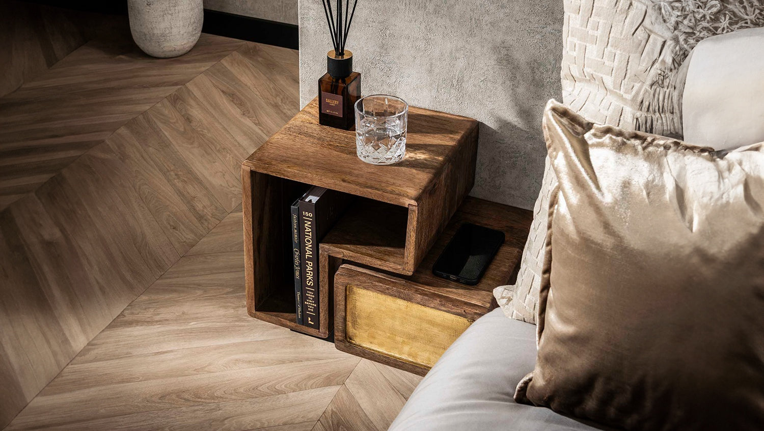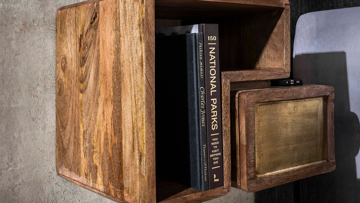 El juego de mesitas de noche KAWOLA BRASY, compuesto por dos mesitas, combina un diseño elegante con materiales sostenibles. Fabricadas en madera de mango maciza, impresionan por su aspecto cálido y su veteado natural. Los herrajes de latón envejecido confieren al Gespan un toque de encanto vintage y crean elegantes acentos. La combinación de cajón y compartimento abierto ofrece un práctico espacio de almacenamiento para libros, accesorios u objetos cotidianos. Gracias al robusto soporte de pared con tres orificios para tornillos, BRASY puede montarse de forma segura y crea un aspecto elegante y flotante. Con unas dimensiones compactas de 41 x 30 x 30 cm, el juego de mesitas de noche de pared es perfecto para dormitorios modernos con poco espacio. BRASY de KAWOLA combina con estilo funcionalidad, diseño y sostenibilidad.