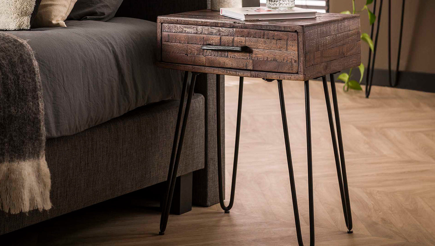 La mesilla de noche MESA de KAWOLA impresiona por su elegante diseño en madera de acacia lavada gris. La estructura de madera con incrustaciones de rayas le confiere un aspecto sofisticado que recuerda a la teca. Equipada con prácticos cajones y robustas patas de metal en acabado oscuro, este mueble combina funcionalidad y encanto moderno. La mesilla de noche MESA será el centro de todas las miradas en su dormitorio y se integrará perfectamente en cualquier interior gracias a su aspecto rústico.