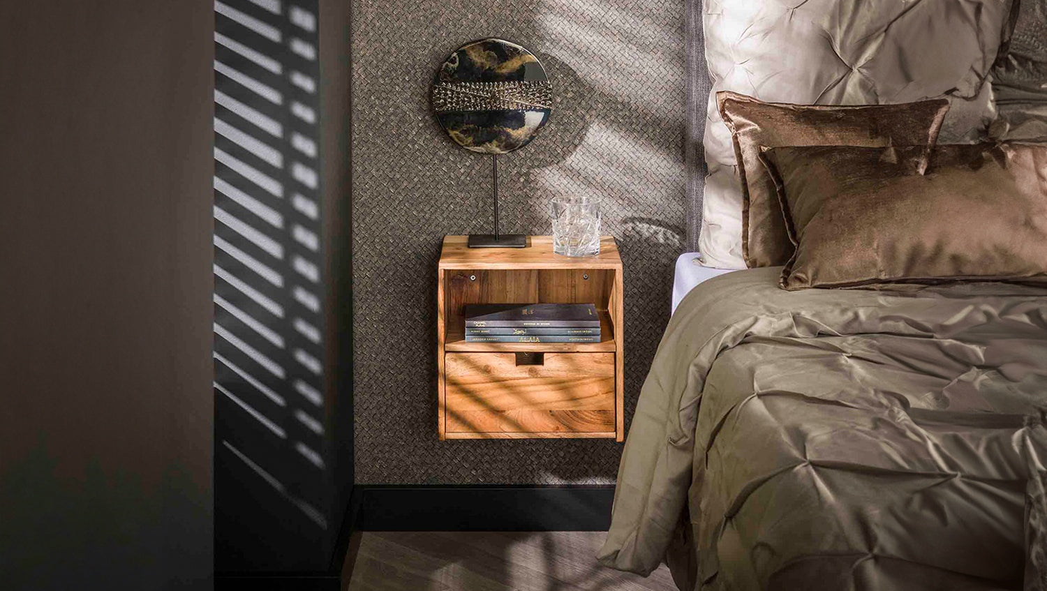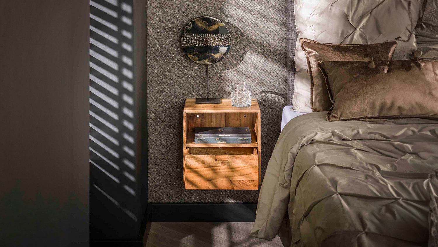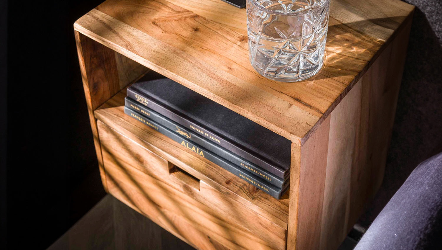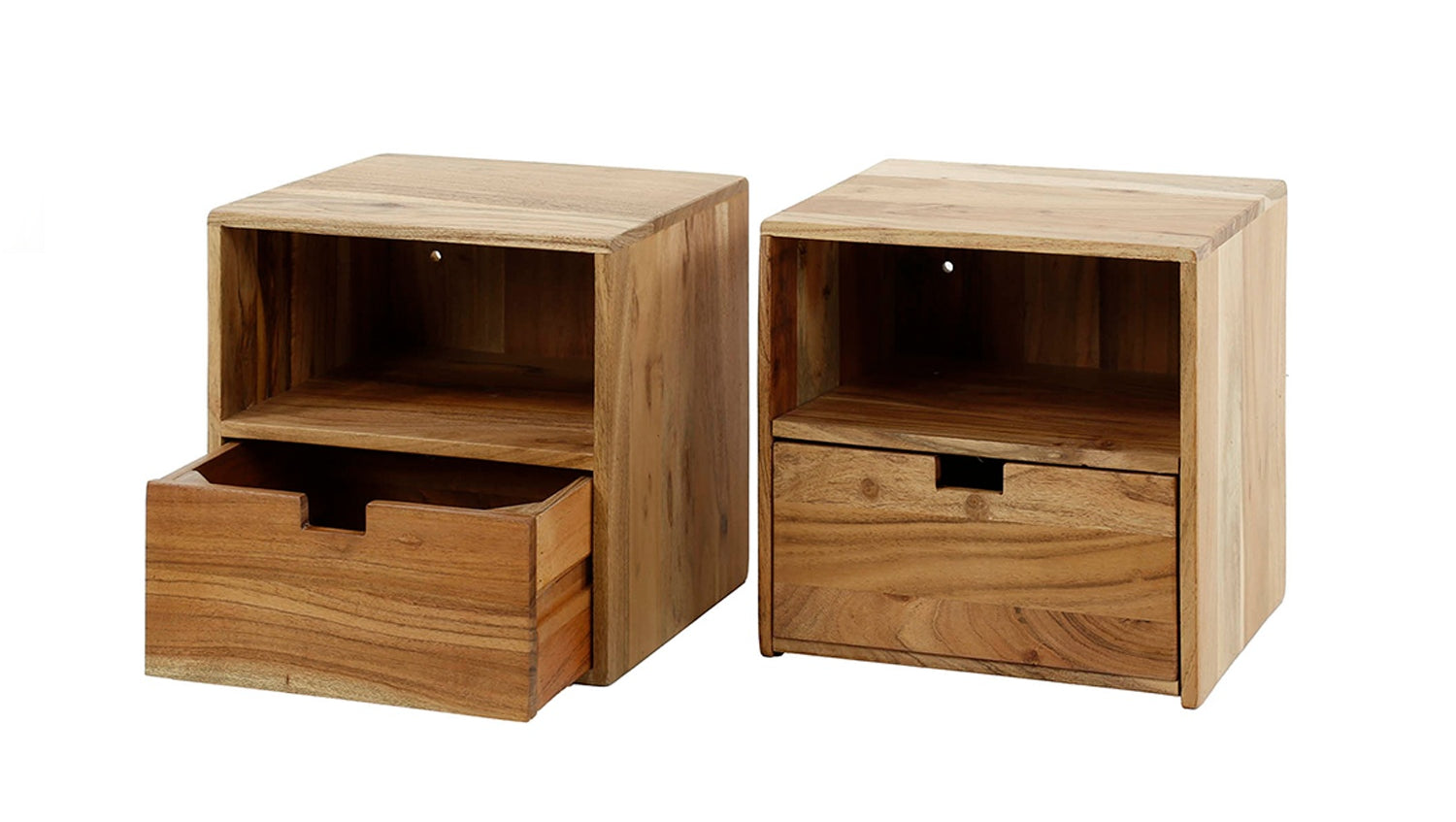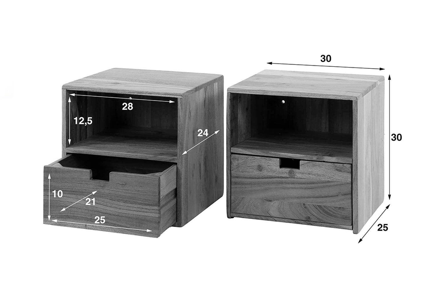 KAWOLA mesita de noche FATY 2 piezas colgante acacia maciza natural 1 cajón