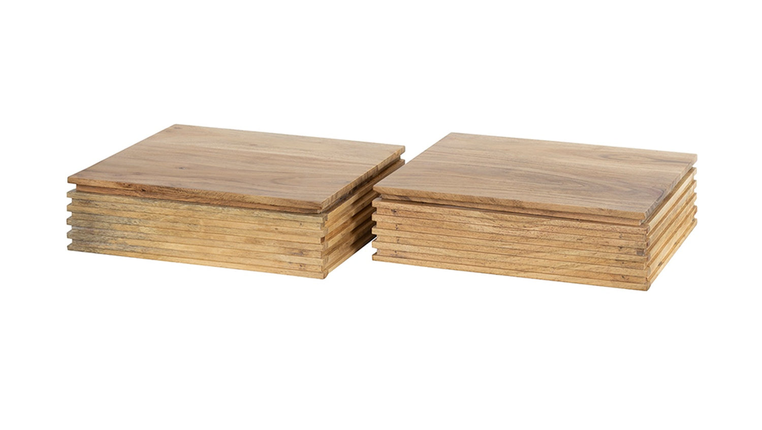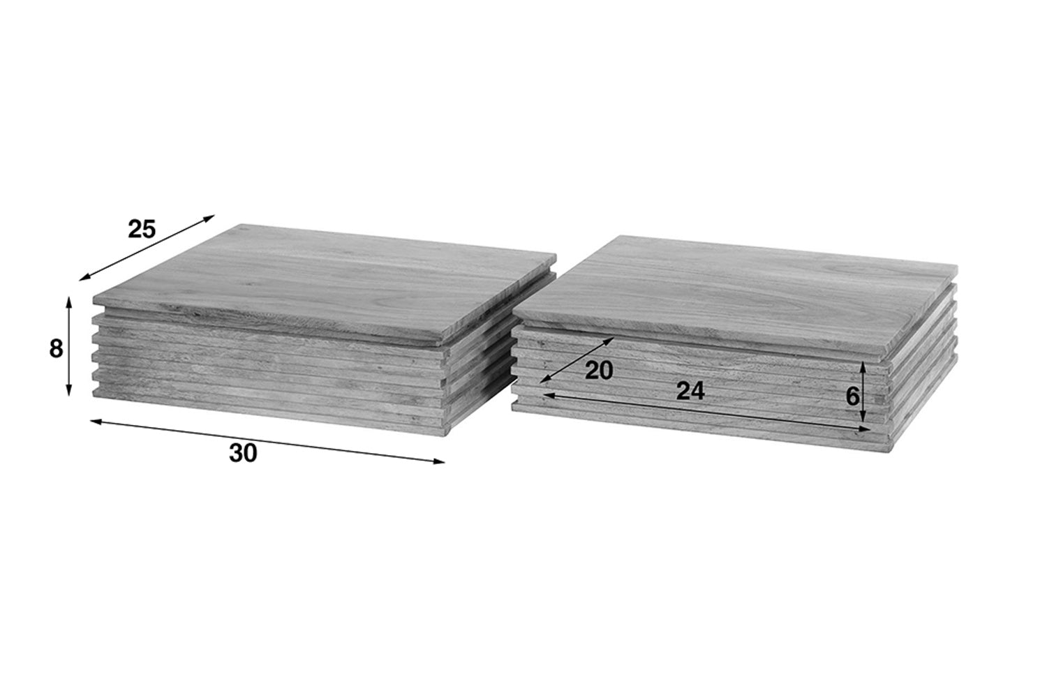 El juego de mesitas de noche FIRU de KAWOLA, compuesto por dos mesitas, impresiona por su elegante diseño y su elaboración de alta calidad. Fabricado en madera de acacia maciza con un llamativo diseño ondulado y lacado mate transparente, este juego de mesitas de noche de pared aporta una elegancia natural a su dormitorio. El aspecto flotante se consigue mediante un sencillo montaje en la pared con sólo dos tornillos, ideal para conceptos de habitación modernos que ahorran espacio. Con unas dimensiones compactas de 30 x 25 x 8 cm, el conjunto es perfecto para guardar libros, teléfonos móviles o adornos. La elegante estructura de madera y el diseño minimalista hacen de la mesita de noche de pared FIRU de KAWOLA un elemento funcional destacado en cualquier dormitorio. Ideal para habitaciones pequeñas, camas con somier o como alternativa elegante a la clásica mesilla de noche.