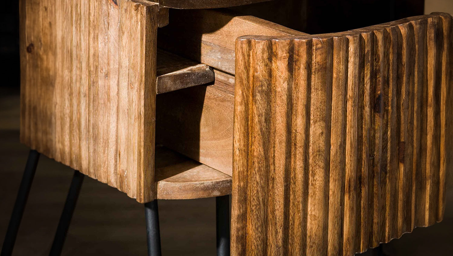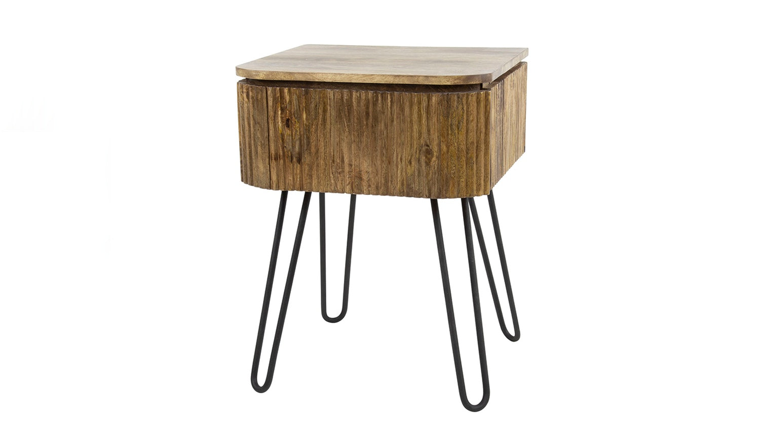 La mesilla de noche HEVE de KAWOLA impresiona por su diseño moderno y sus materiales sostenibles. Fabricada en madera de mango de alta calidad con acabado en color arena, aporta elegancia natural a su dormitorio. El elegante diseño ondulado confiere al mueble un aspecto especial. Un práctico cajón ofrece espacio para objetos personales como libros, gafas o teléfonos móviles. La estructura metálica proporciona estabilidad adicional y convierte a HEVE en la mesa auxiliar perfecta para cualquier habitación. Con sus compactas dimensiones de 45 x 40 x 60 cm, es ideal para dormitorios modernos, habitaciones pequeñas o como alternativa elegante a la clásica mesilla de noche. La mesilla de noche HEVE combina funcionalidad, diseño y sostenibilidad: perfecta para cualquiera que valore la calidad y la estética.