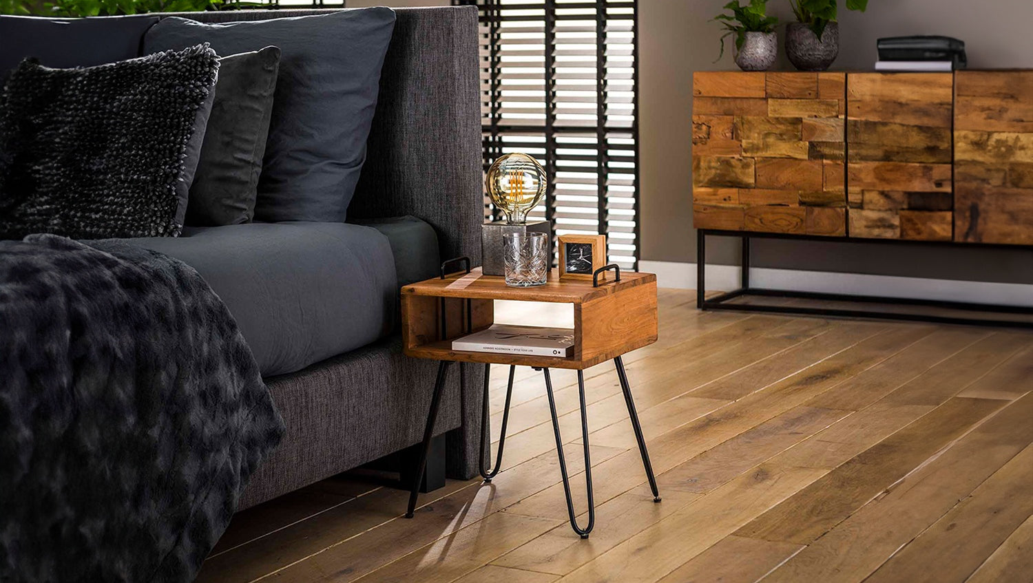 La mesilla de noche QARO de KAWOLA impresiona por su moderno diseño y su práctica función. Fabricada en madera de acacia de alta calidad con un lacado transparente mate, aporta una elegancia natural a su dormitorio o salón. El compartimento abierto ofrece espacio para guardar libros, revistas u objetos cotidianos. El llamativo marco de acero confiere estabilidad a la mesa y se extiende hasta la parte superior, donde dos asas integradas facilitan su elevación y colocación flexible. Con unas medidas de 40 x 34 x 48 cm, QARO es versátil: como elegante mesilla de noche o funcional mesa auxiliar. La combinación de madera robusta y metal convierte a la mesilla de noche QARO en un punto de atracción intemporal en cualquier habitación. Ideal para cualquiera que desee combinar un diseño moderno con un manejo práctico.