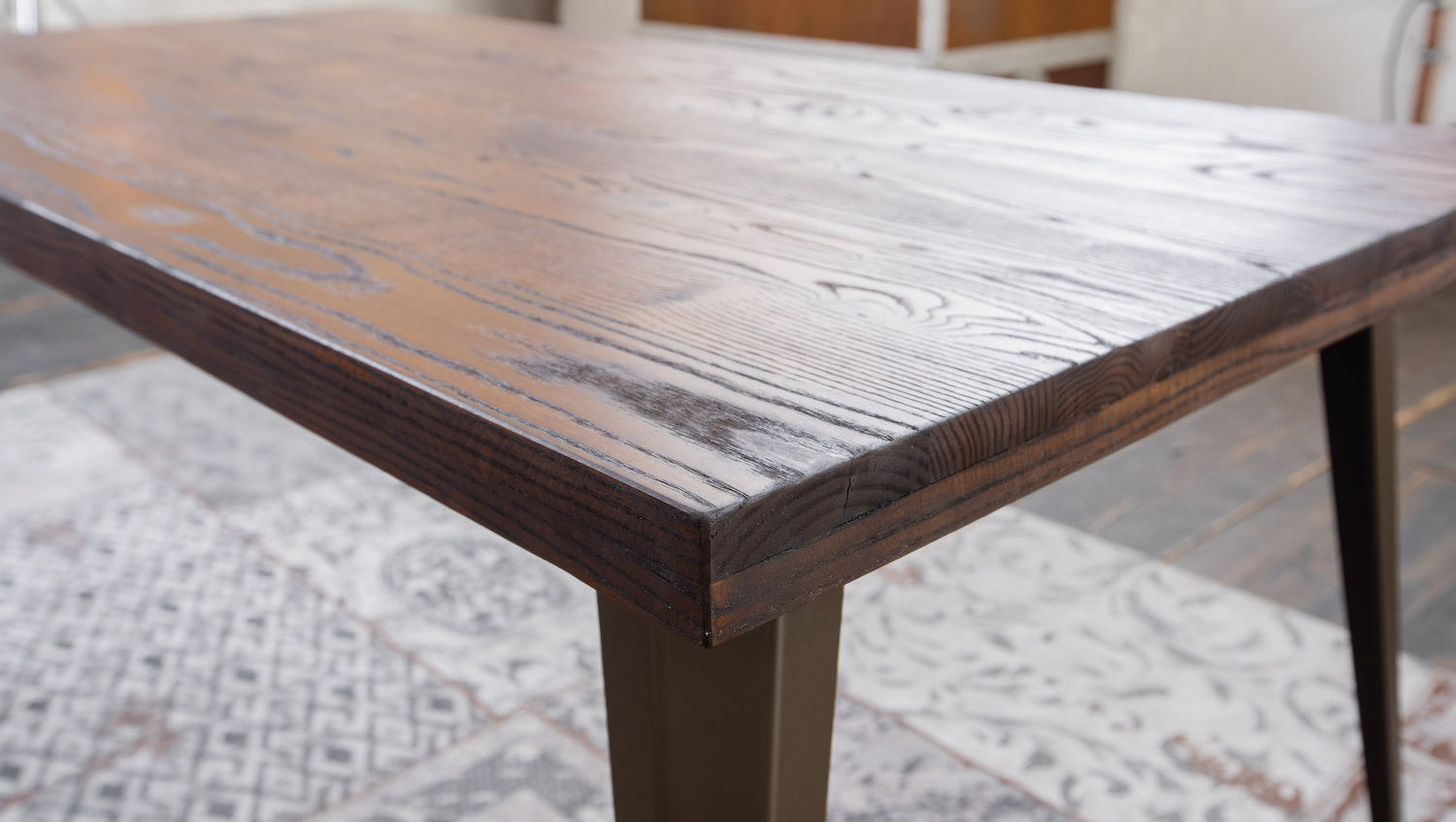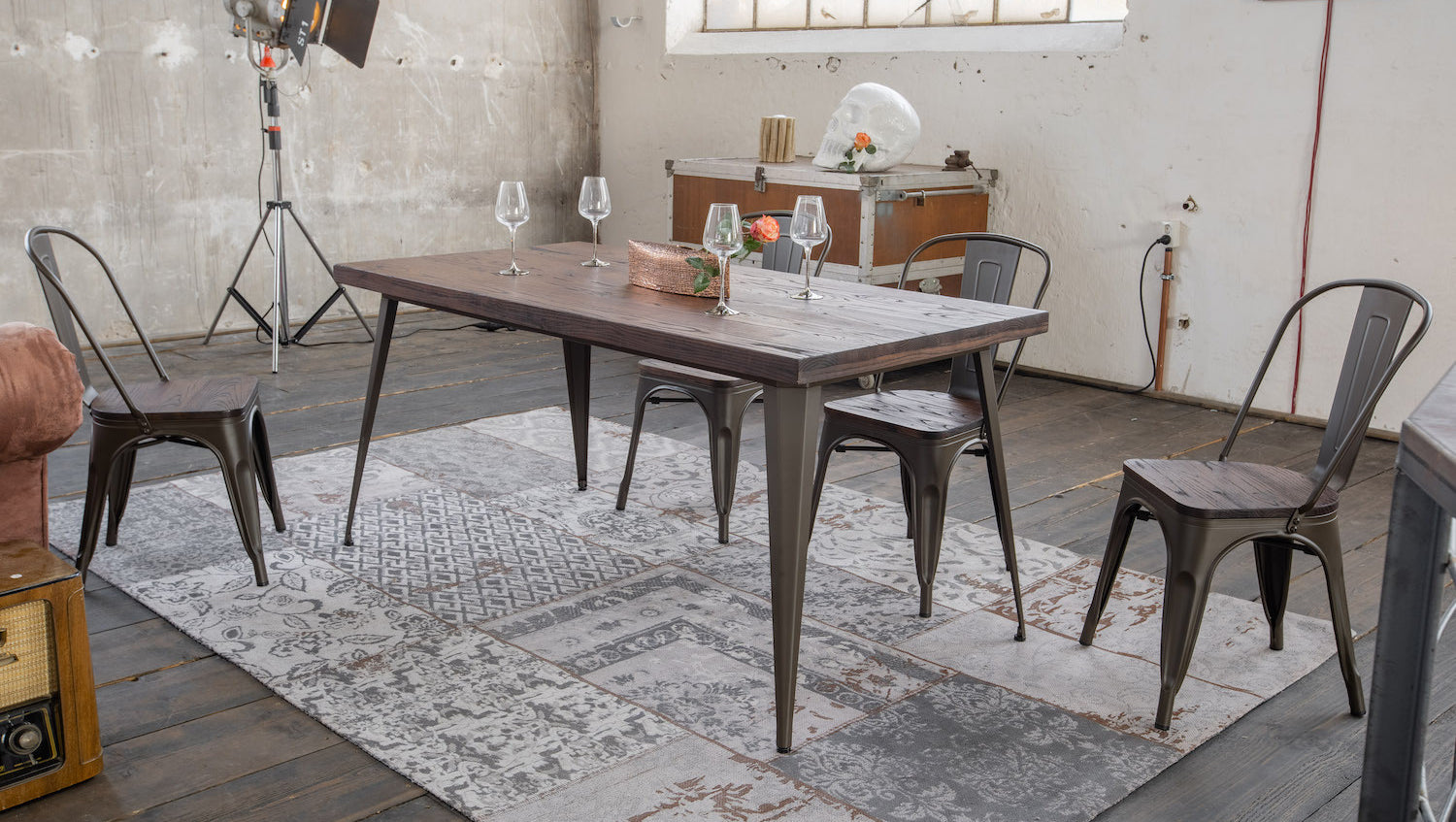 La mesa de comedor KELIO combina diseño industrial y materiales duraderos. Las patas son de metal oscuro y el tablero de alta calidad es de madera de olmo. Las patas de metal pueden parecer delicadas, pero son absolutamente robustas. La mesa es muy versátil y puede combinarse con varios estilos de mobiliario. Esta mesa aportará un nuevo estilo de vida a su comedor.