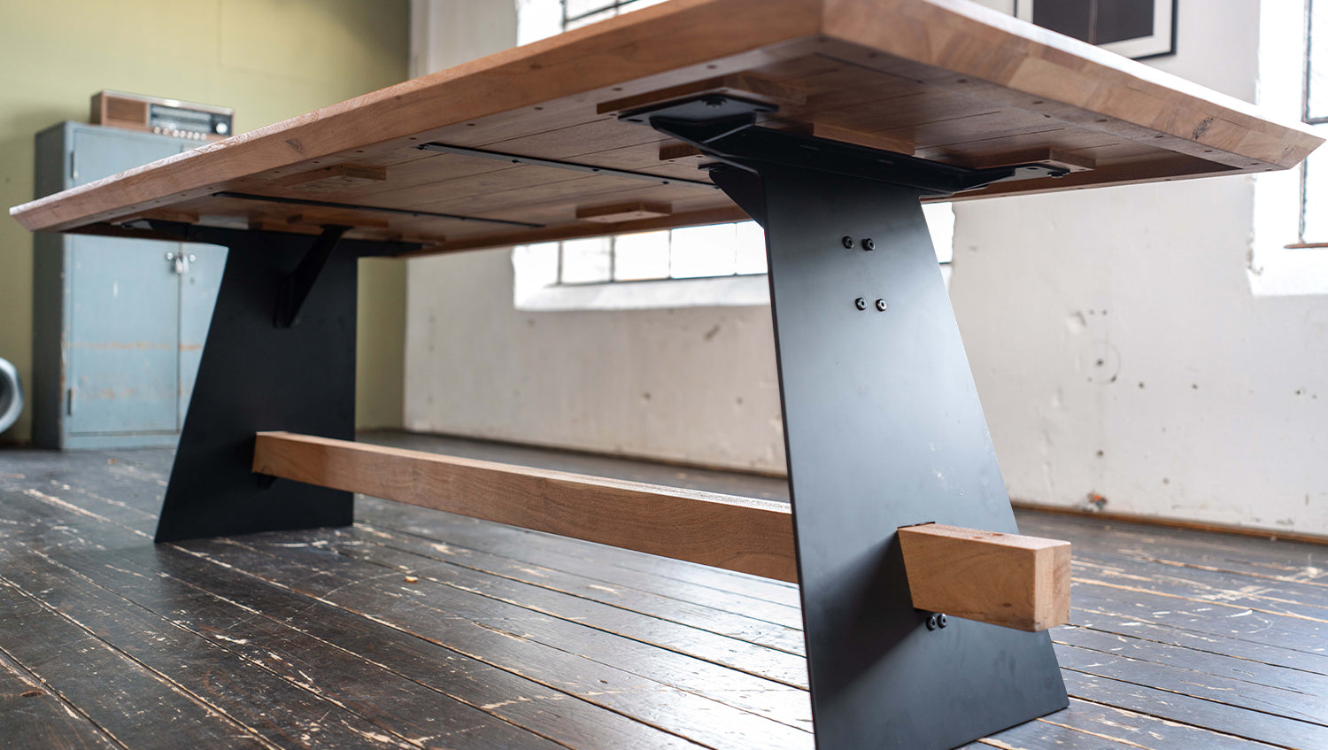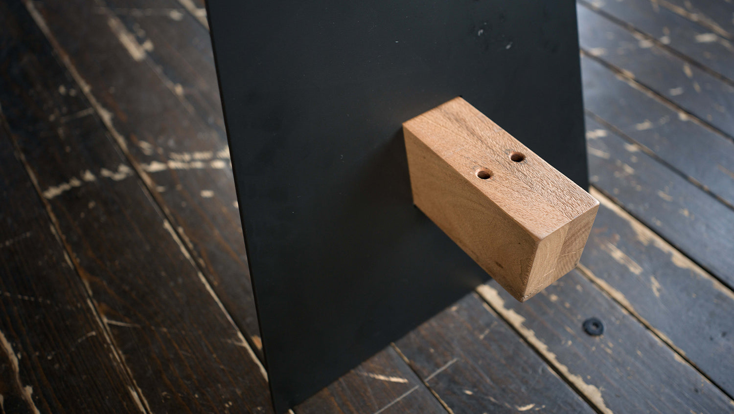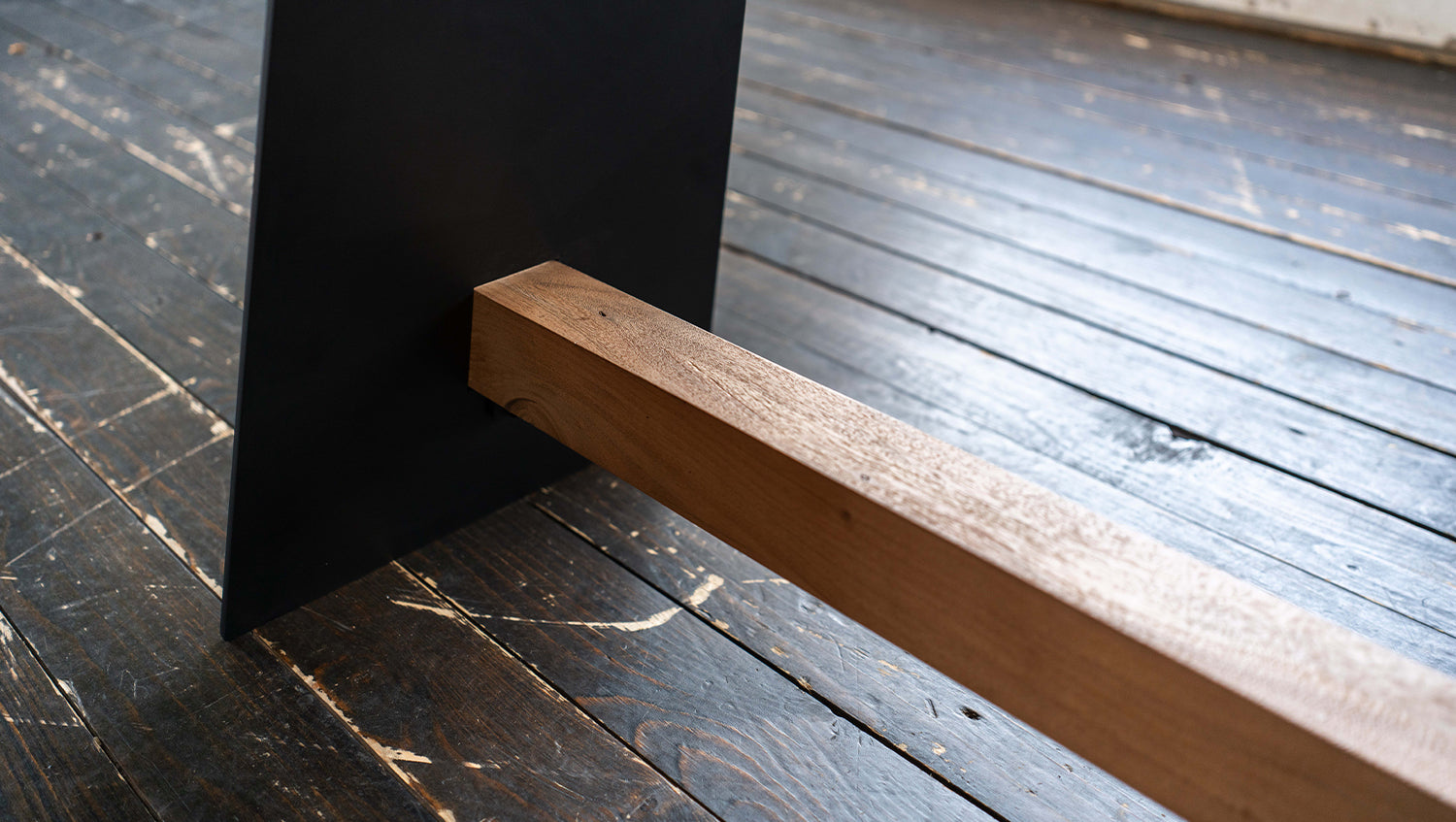 • Armazón de vigas de acacia con patas de acero, lacado en negro