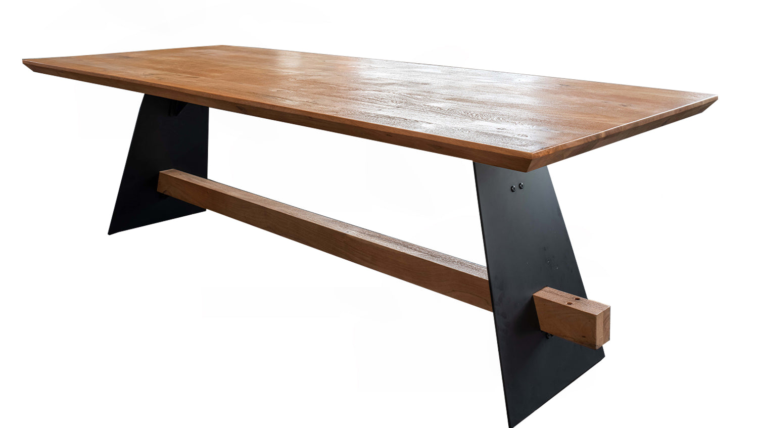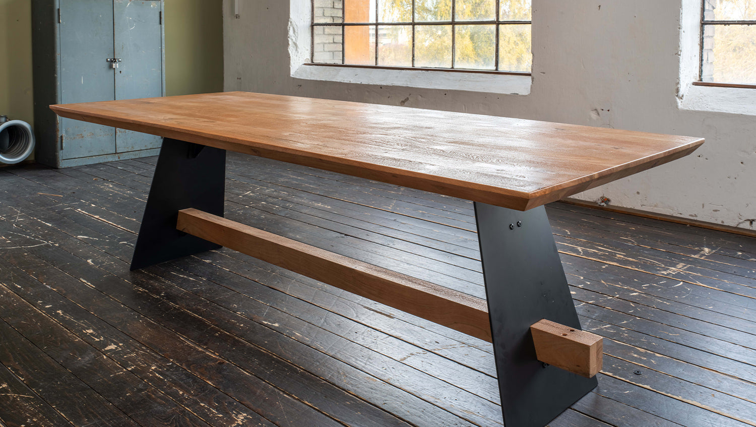La mesa de madera maciza ARBORIO de KAWOLA convence por su elegante diseño y sus materiales de alta calidad. La superficie del tablero de madera maciza de acacia está cepillada y es de color roble, lo que acentúa a la perfección el veteado natural de la madera. Destaca especialmente el canto suizo, cuya forma biselada confiere al tablero un efecto ligero, casi flotante, que llama la atención de forma sutil pero eficaz. Disponible en longitudes de 200 cm, 220 cm, 240 cm, 260 cm, 280 cm y 300 cm, la mesa ofrece el espacio ideal para cenas elegantes o veladas de convivencia. El bastidor de base rústico soldado y lacado en negro en diseño industrial confiere a la mesa un toque moderno e industrial. La mesa de comedor ARBORIO combina funcionalidad y sofisticación estética. Ya sea como centro de mesa en el comedor o como elemento destacado en espacios abiertos, esta mesa es toda una declaración de diseño moderno y acabado de alta calidad.
